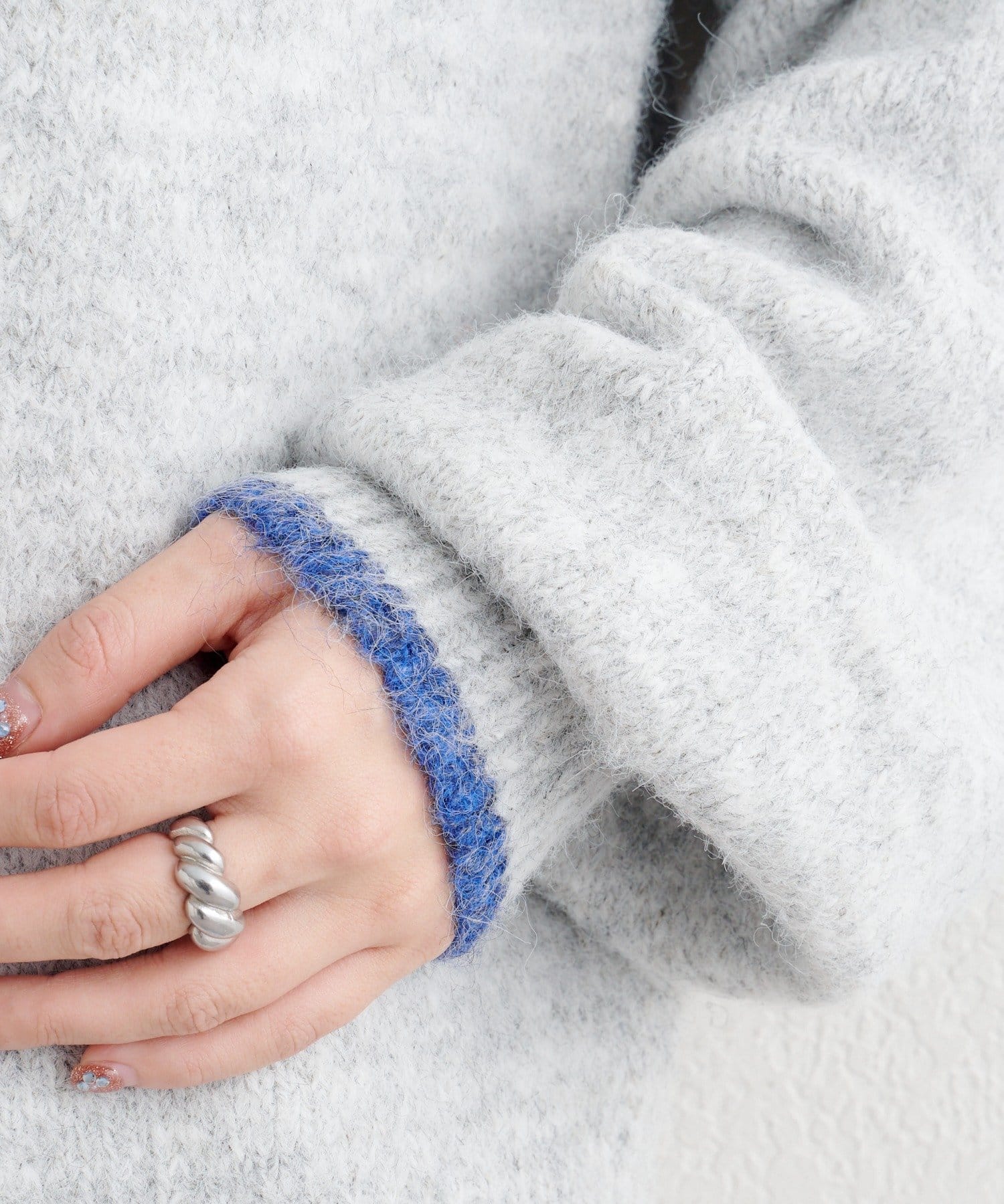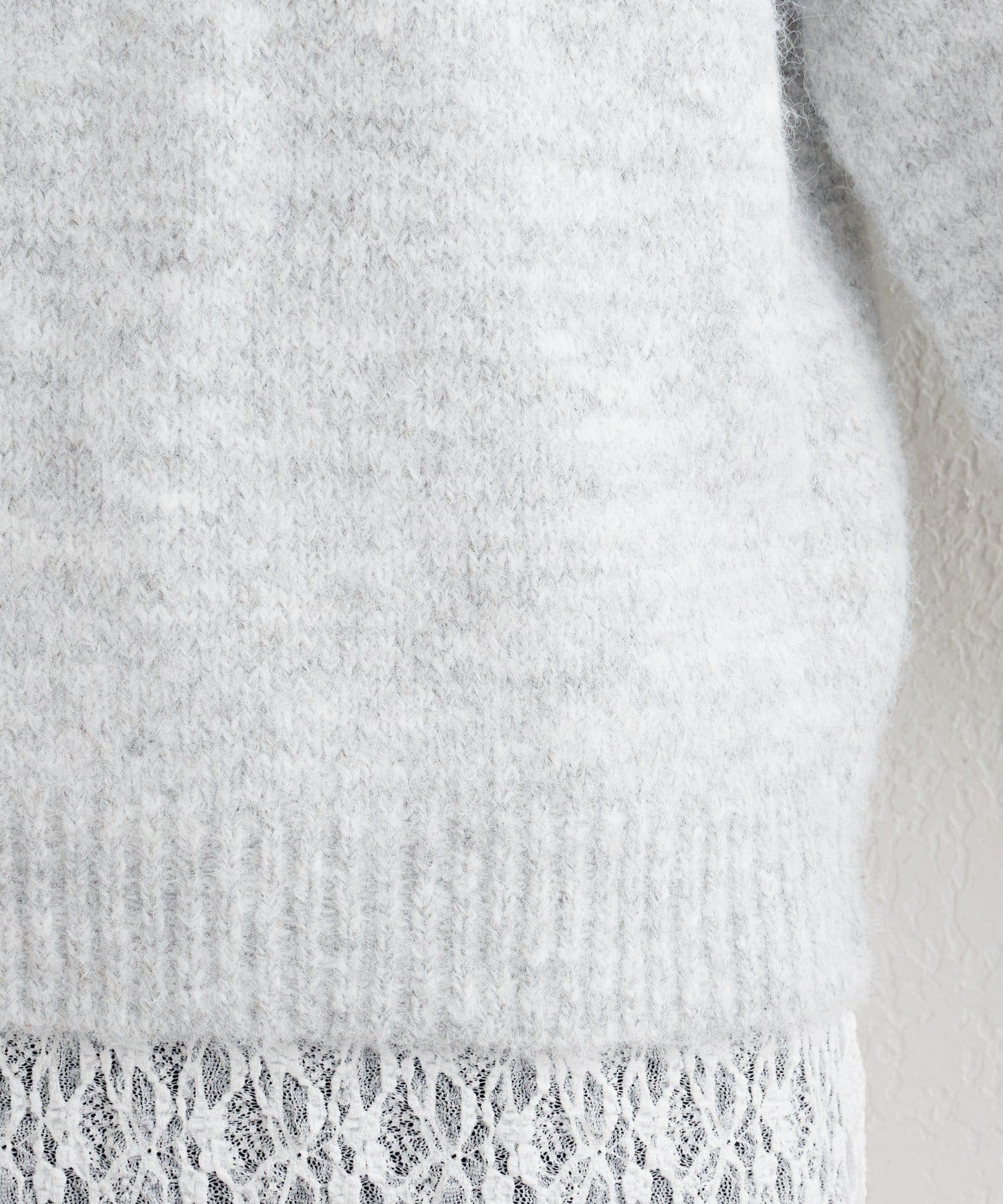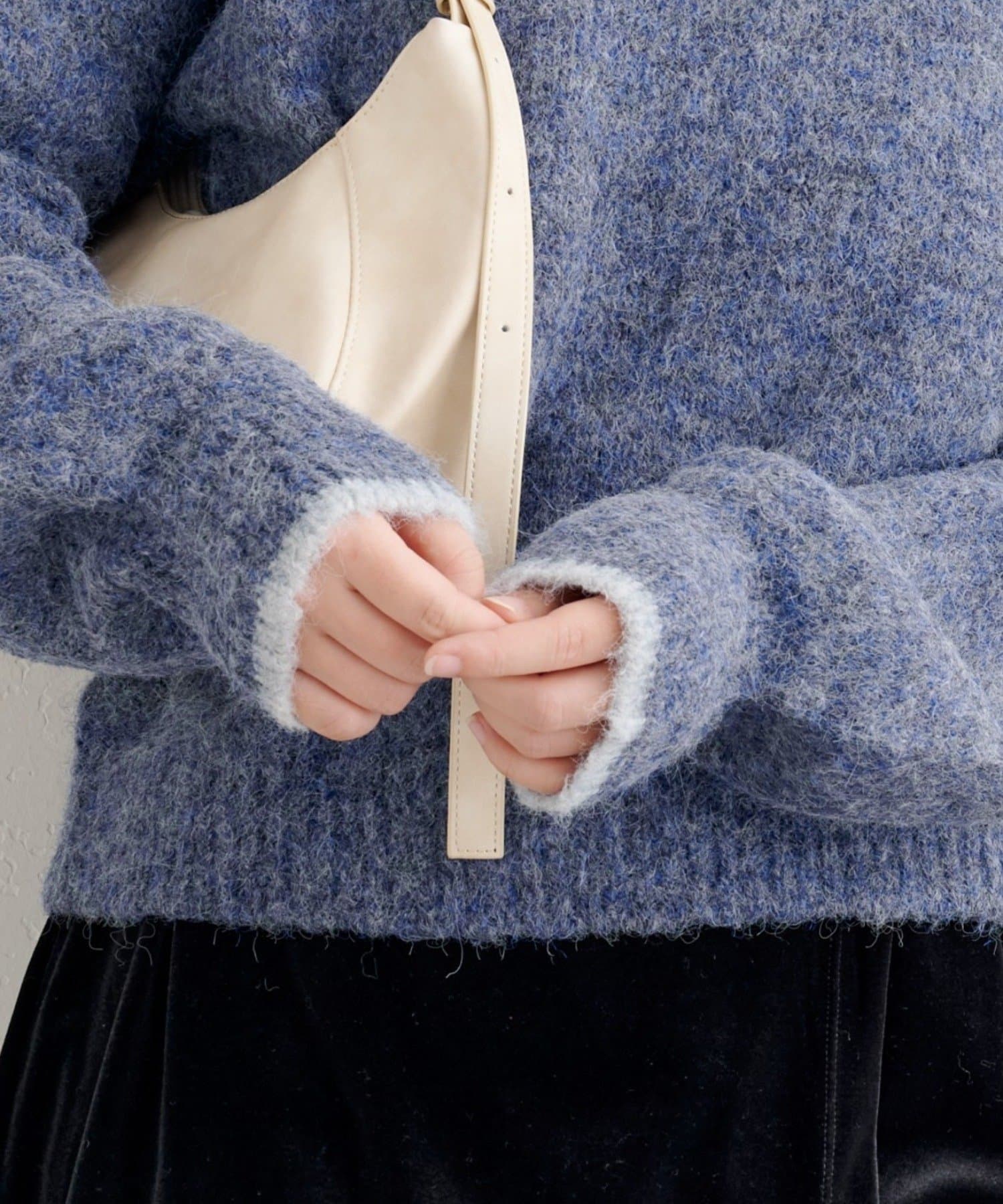 起毛感がほどよく、女性らしいニュアンスを引き立てながらもチクチクしにくいのが魅力。