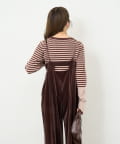上品な光沢感が魅力のベロア素材を使用したサロペット。