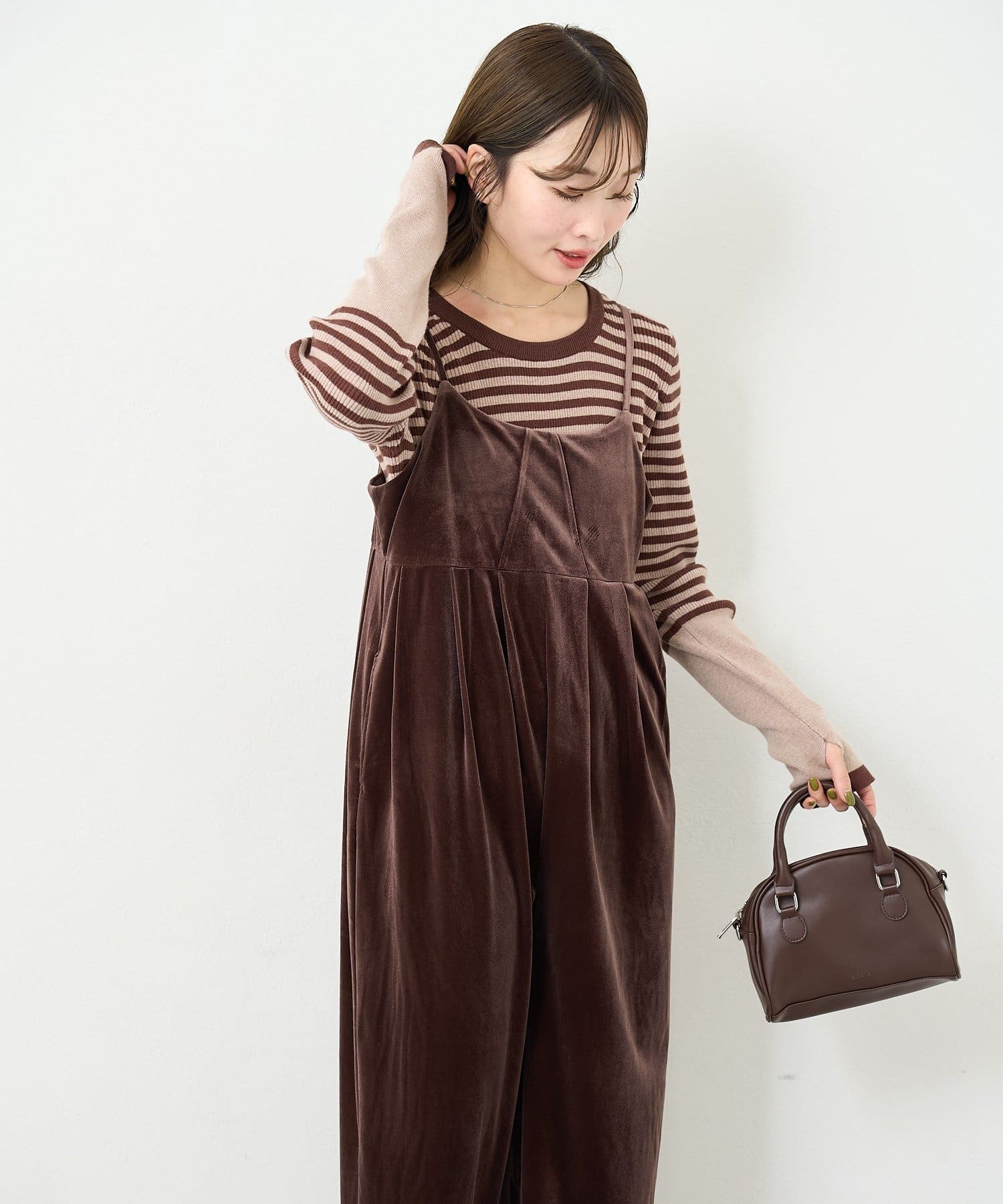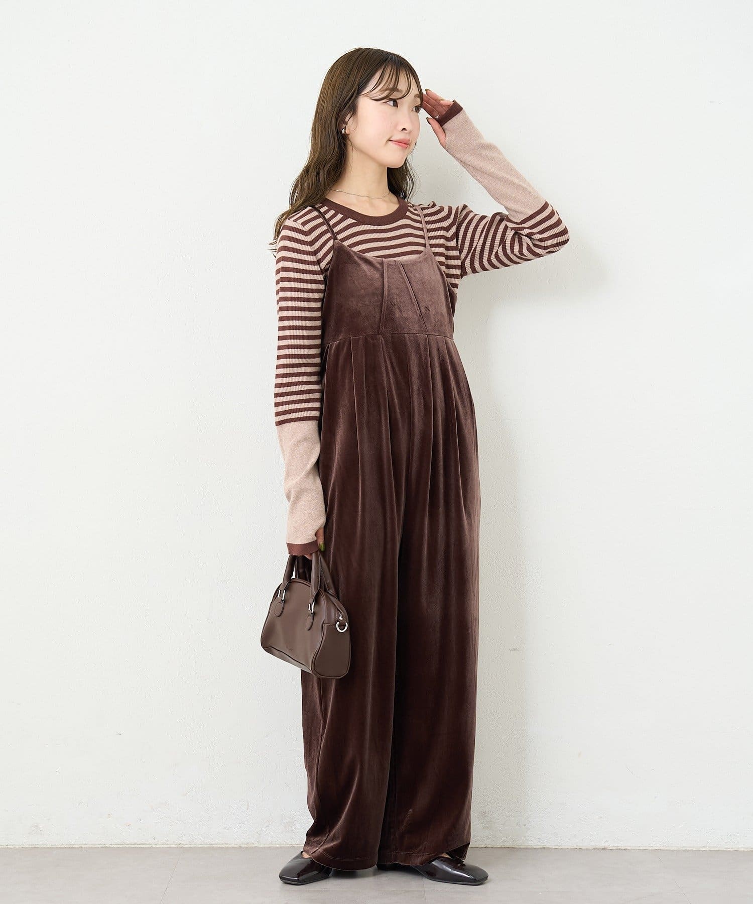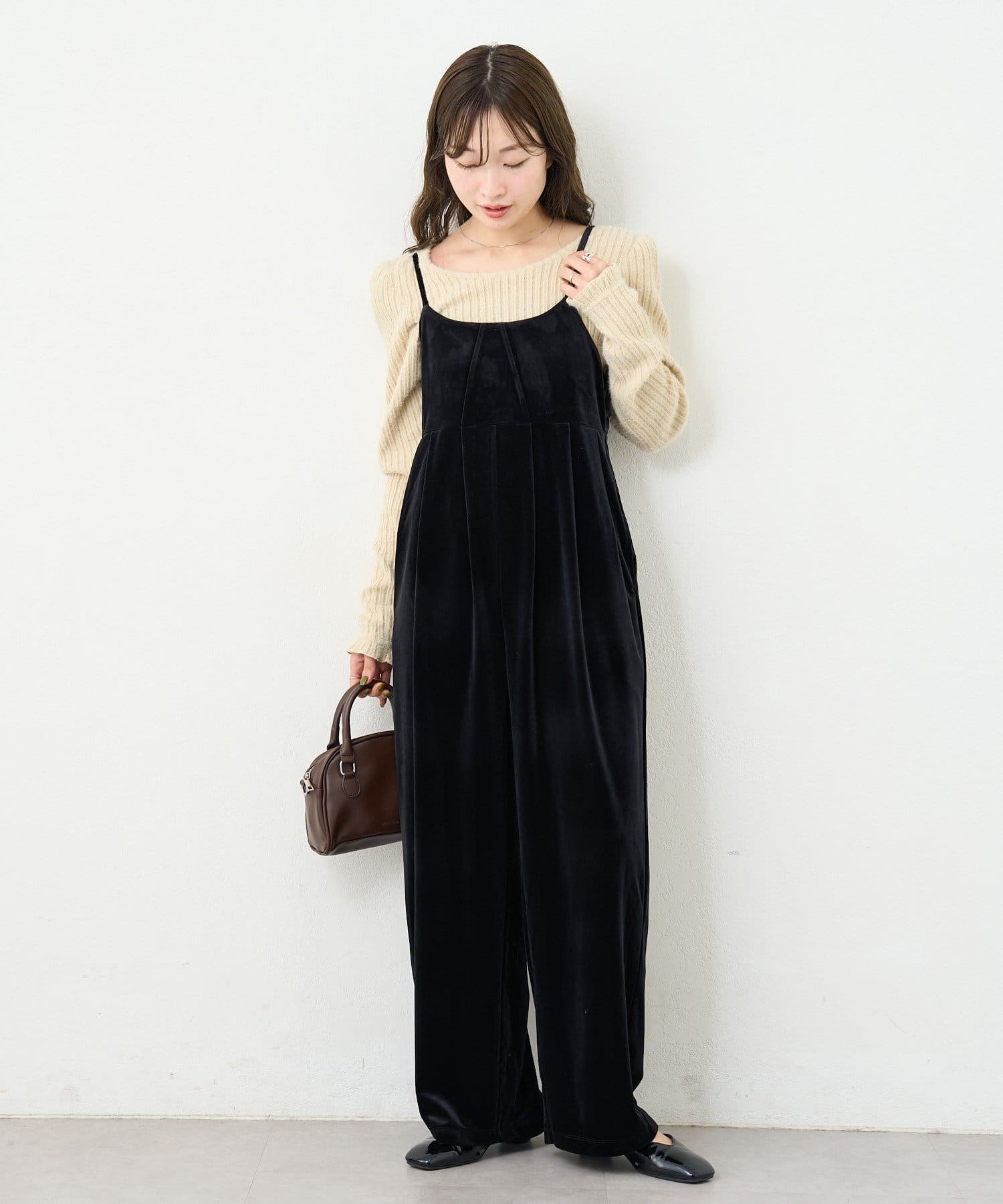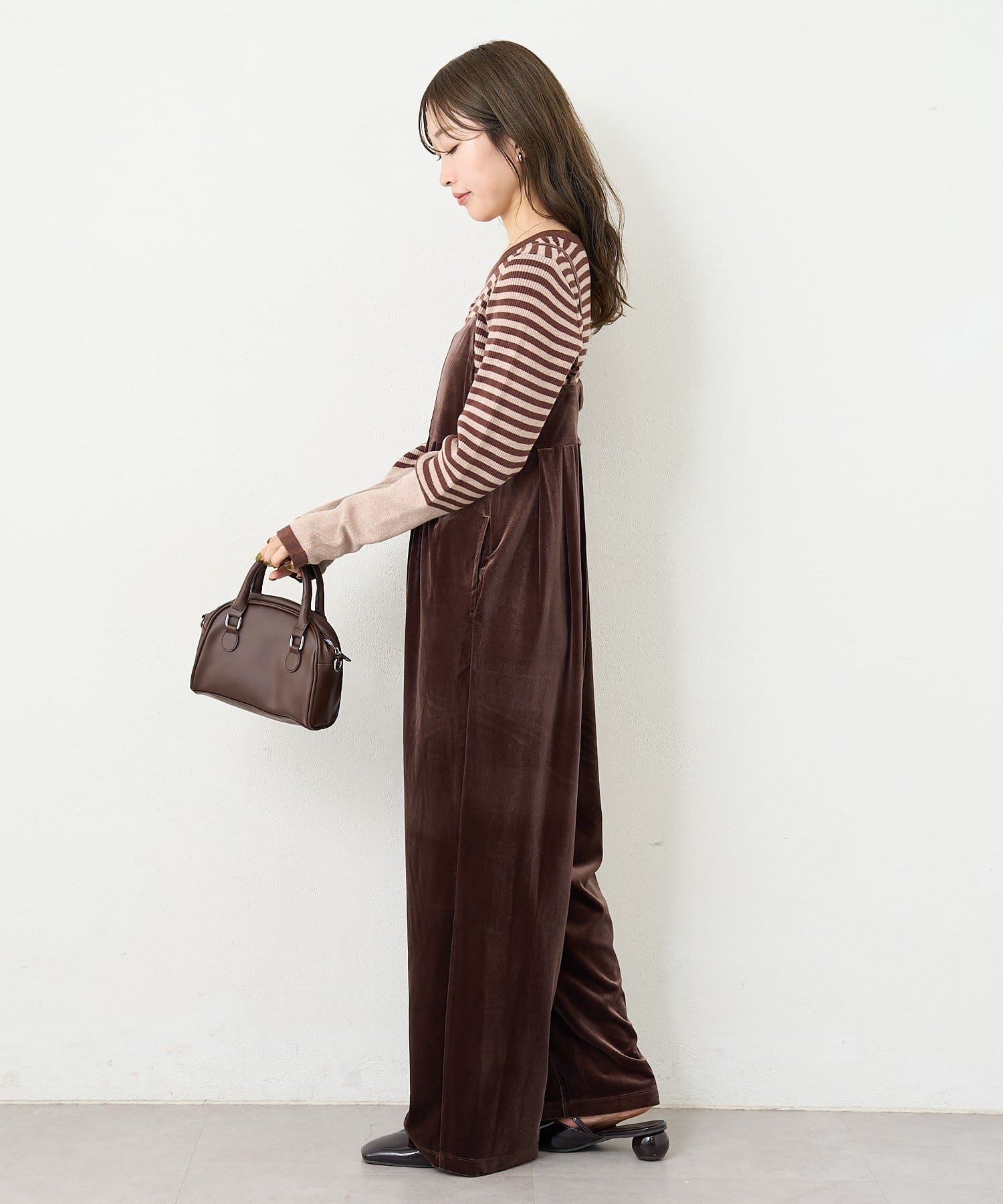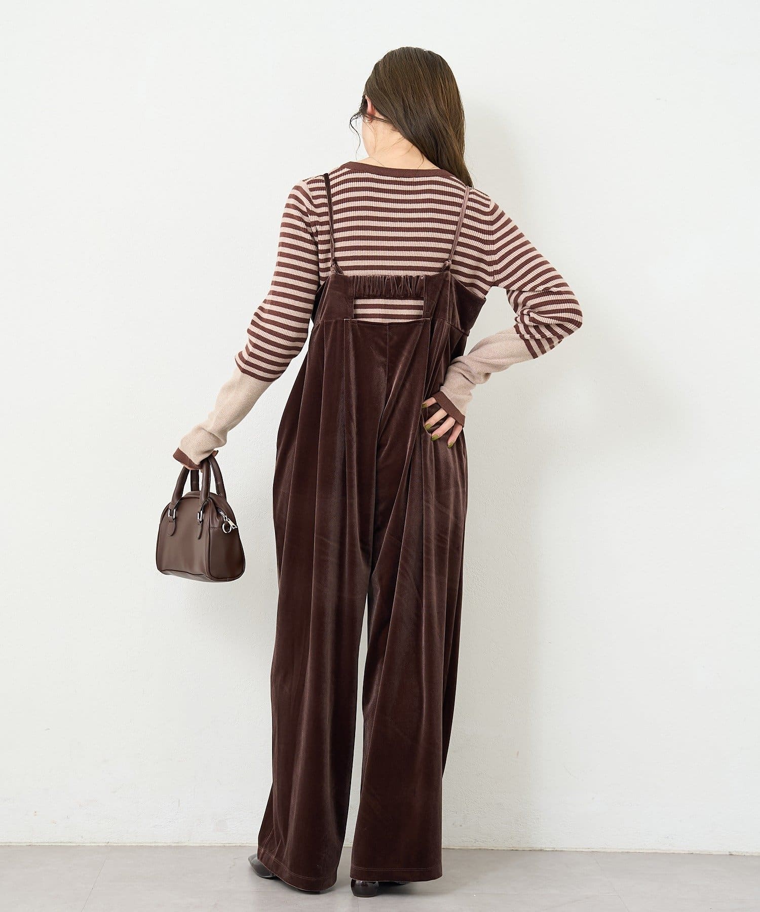 上品さとリラックス感を両立する、大人のベロアサロペット