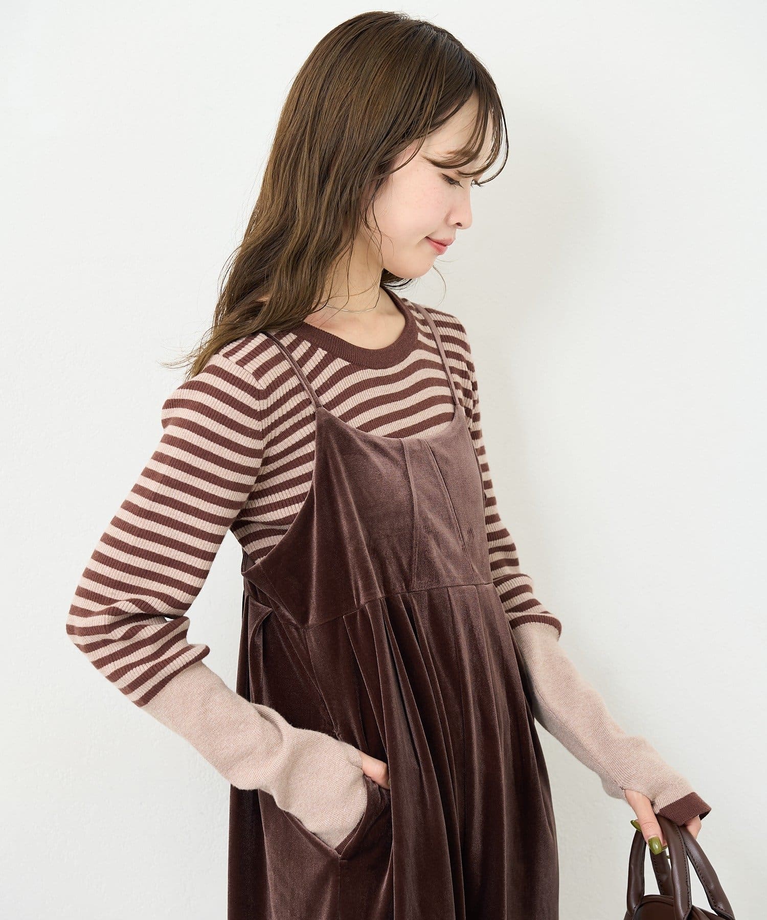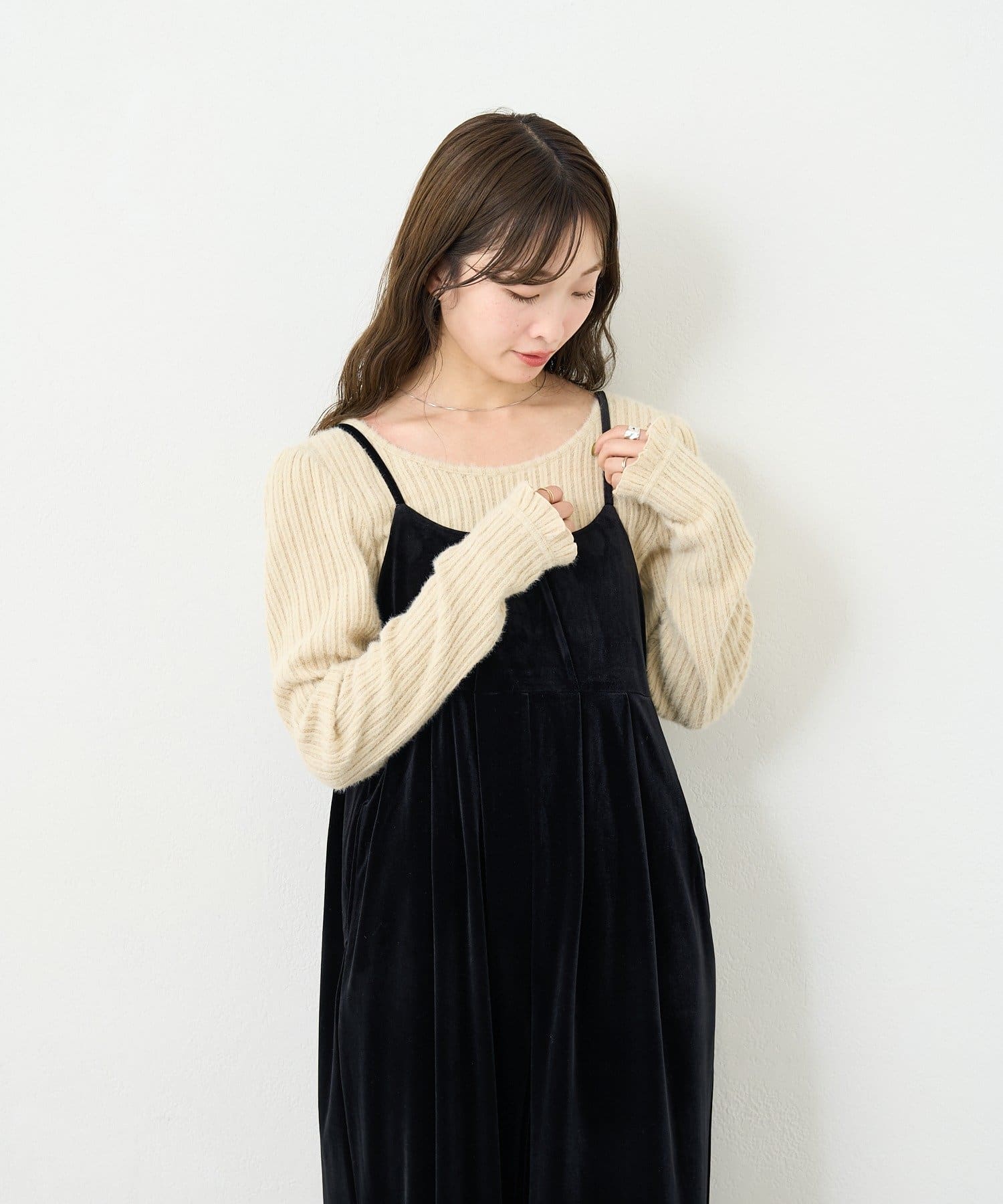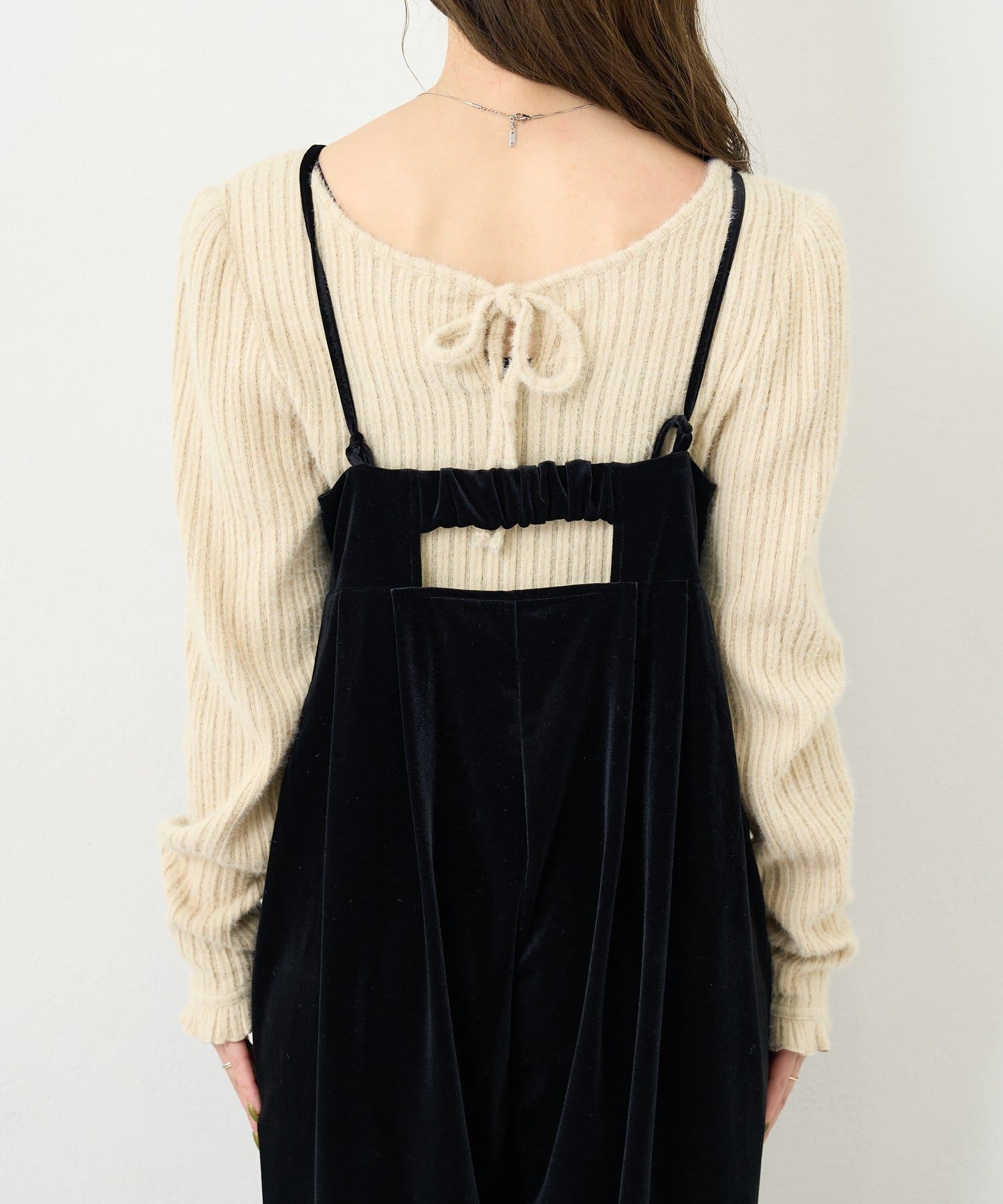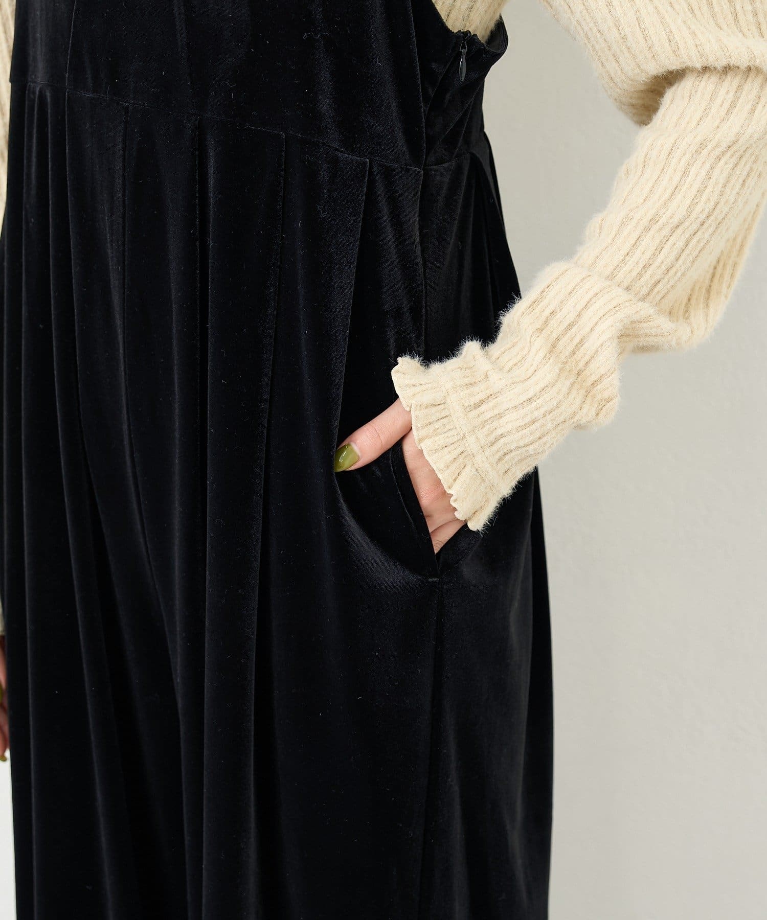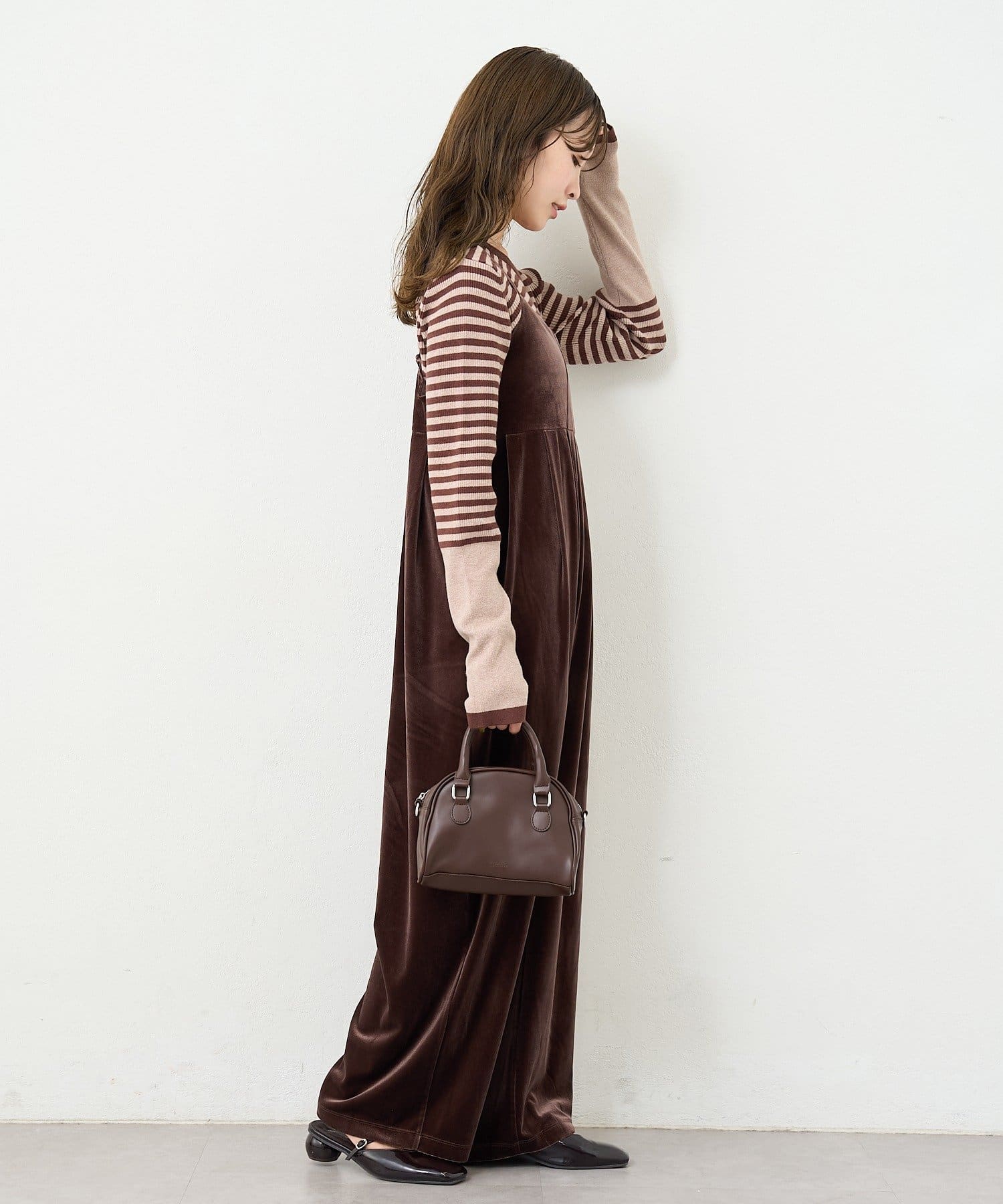 上品さとリラックス感を両立する、大人のベロアサロペット