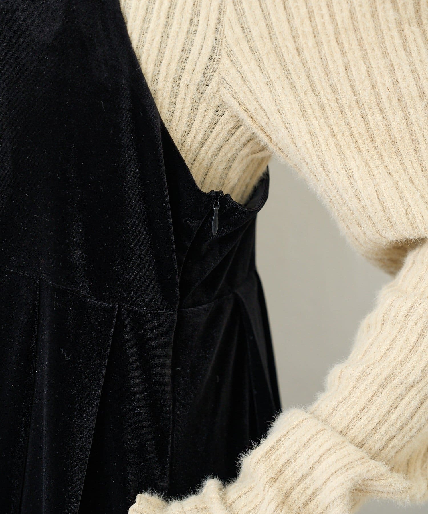 なめらかで伸縮性のあるベロア生地。程よい厚みがあり、秋冬シーズンにぴったり。