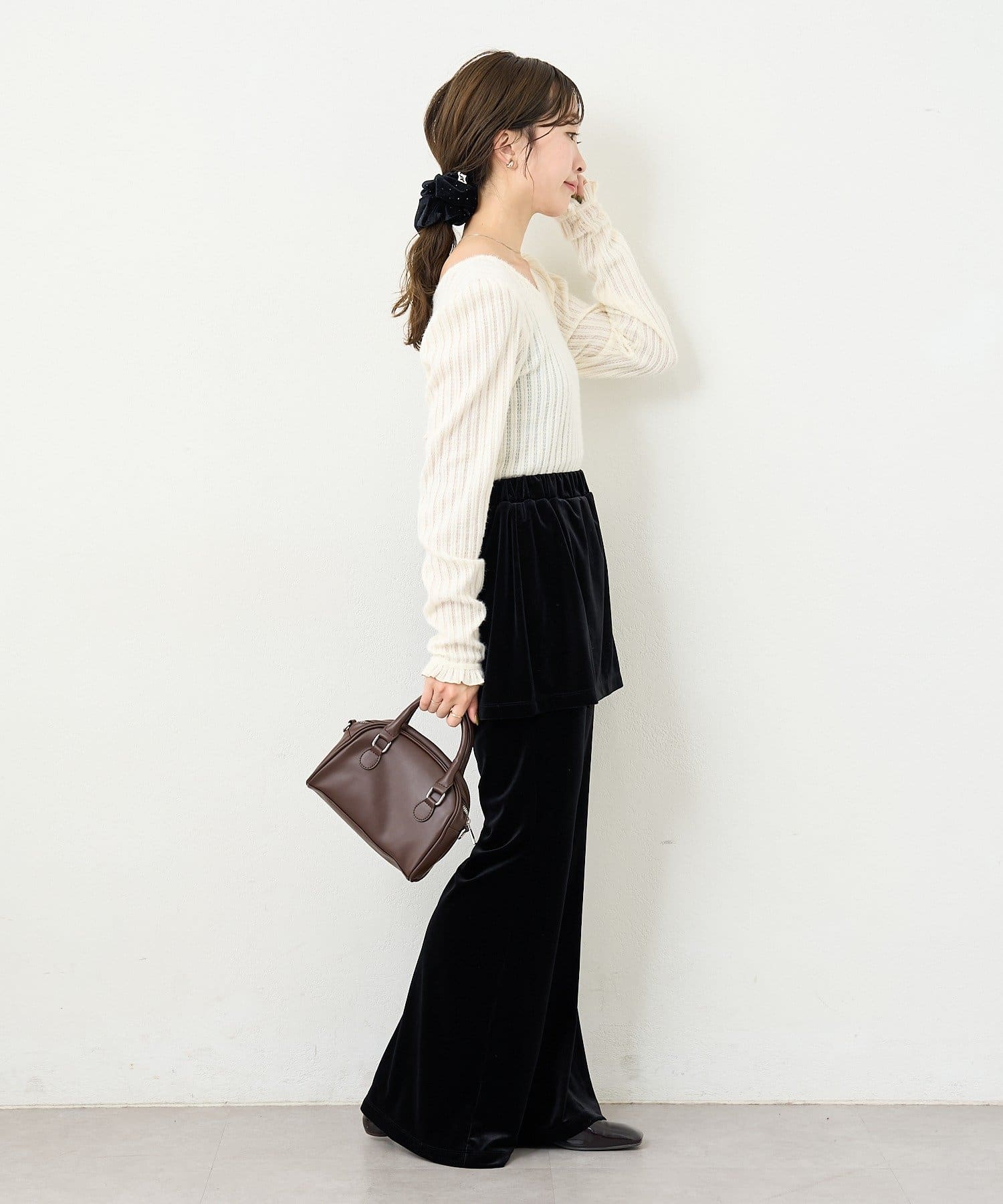 秋冬らしい光沢感が魅力のベロア素材を使用したスカパン。