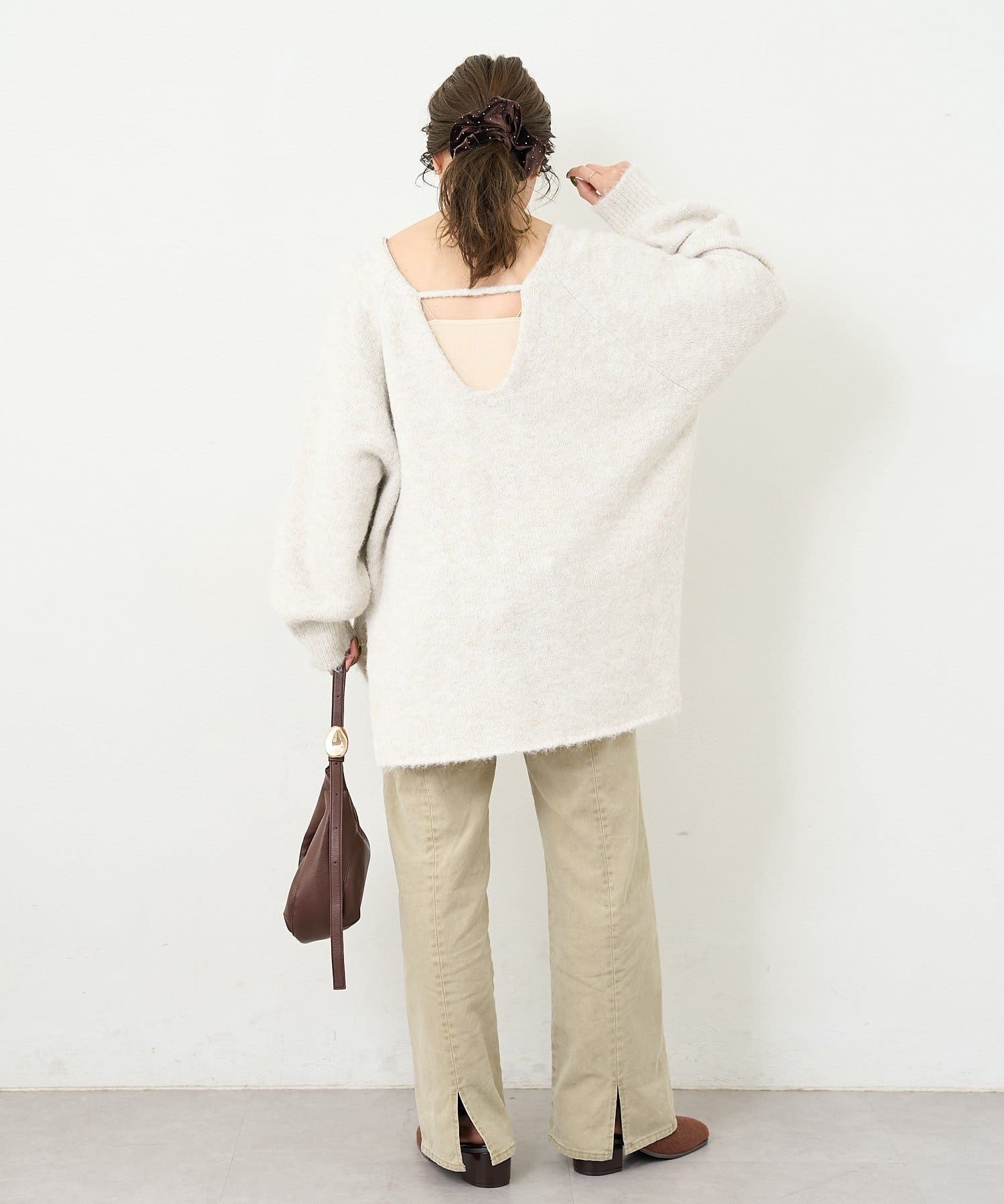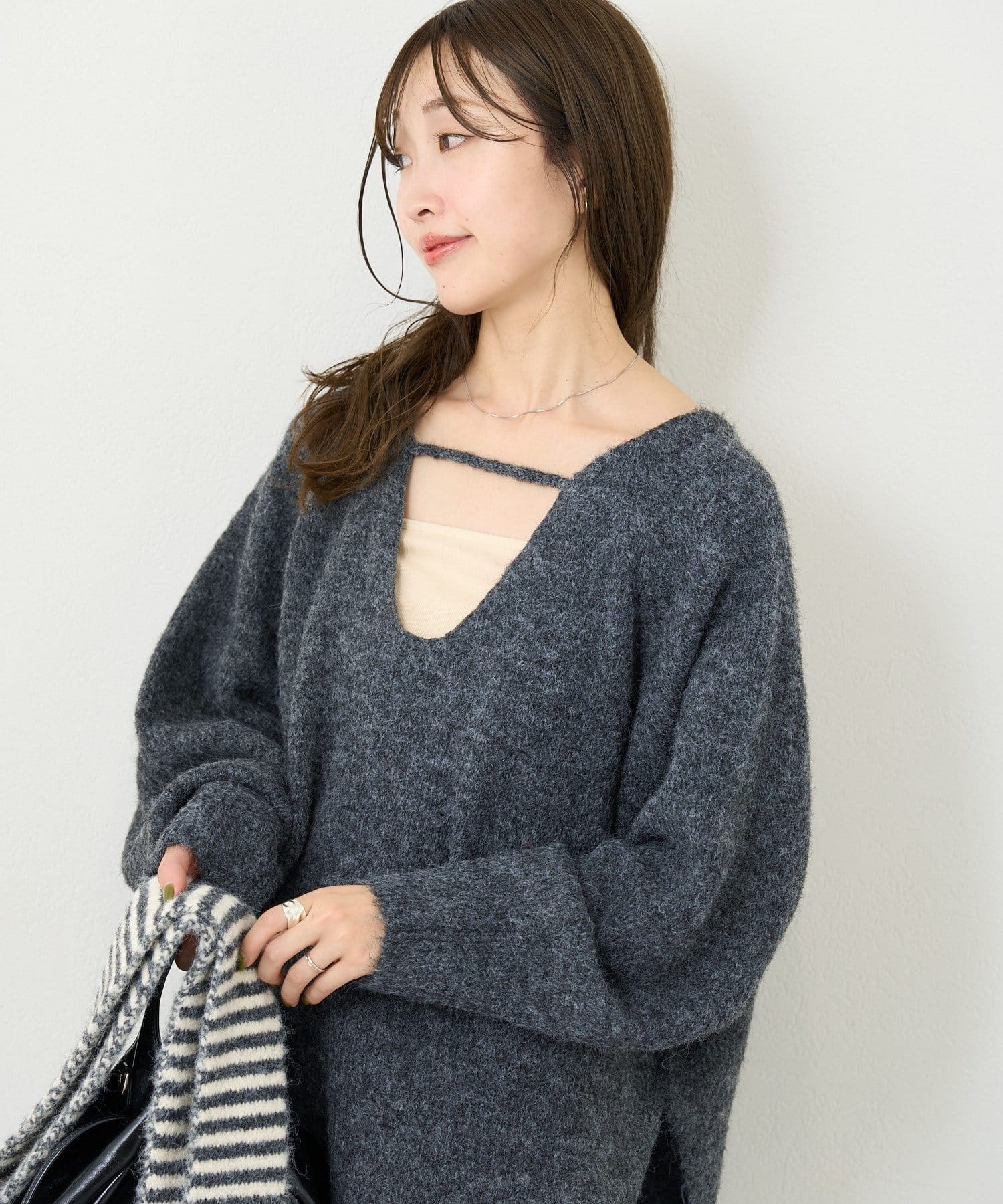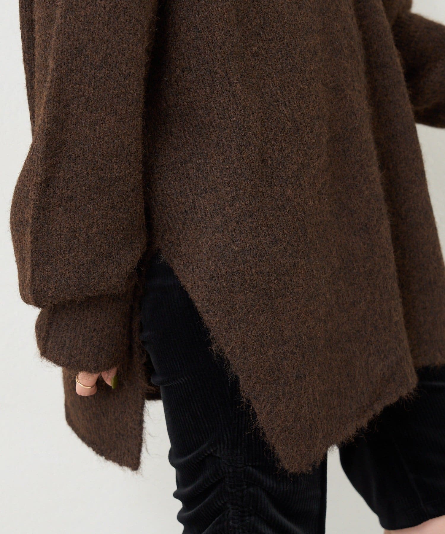 ホック開きのデザインで、カーディガンとして羽織っても、トップス風にも着られる万能アイテム。
