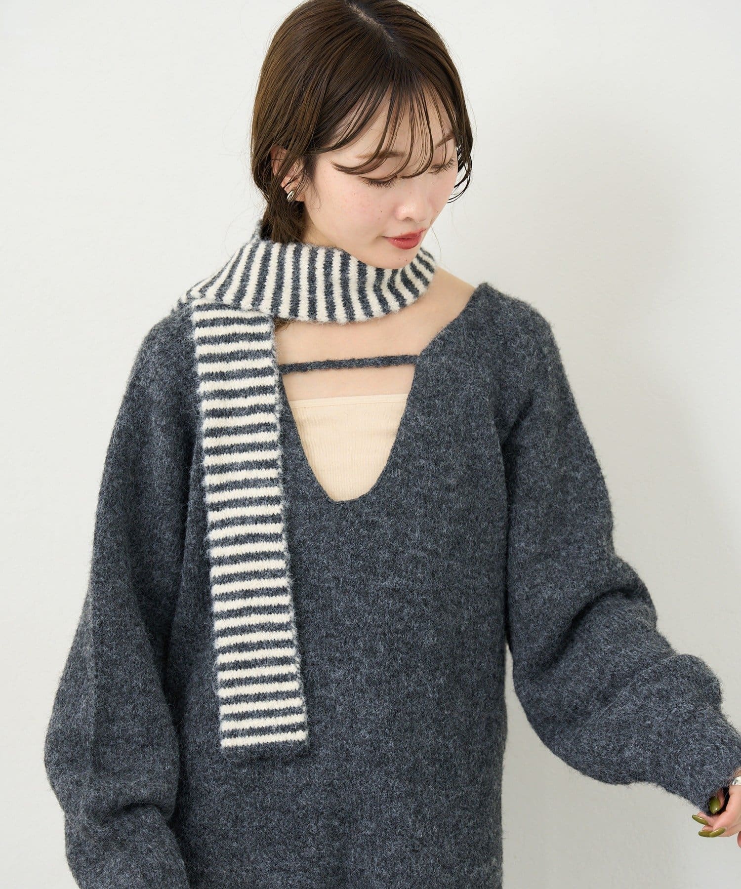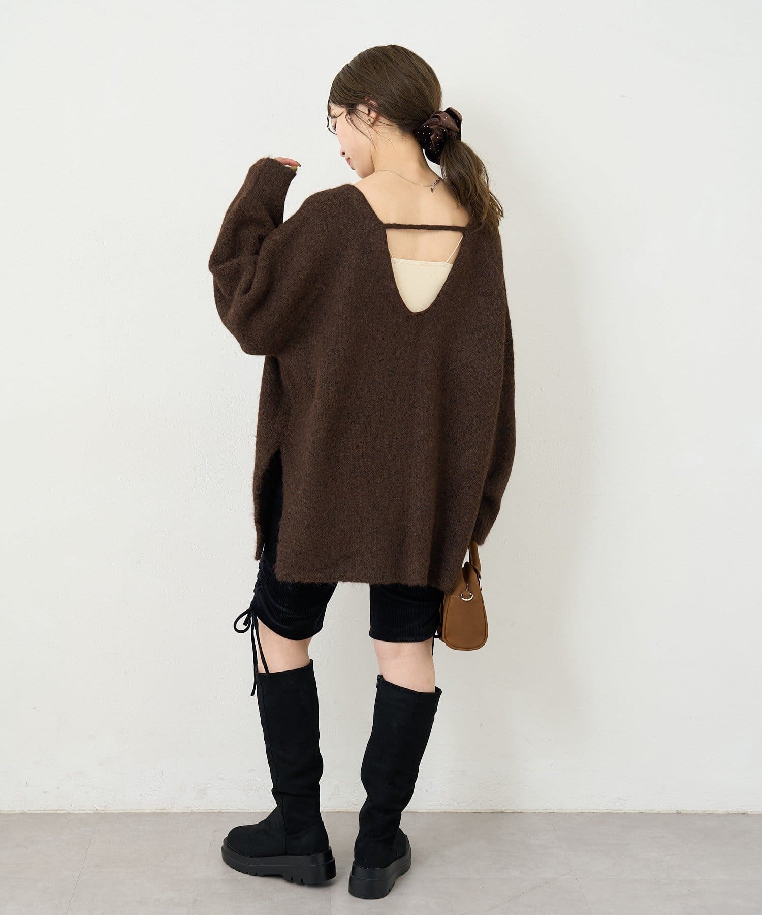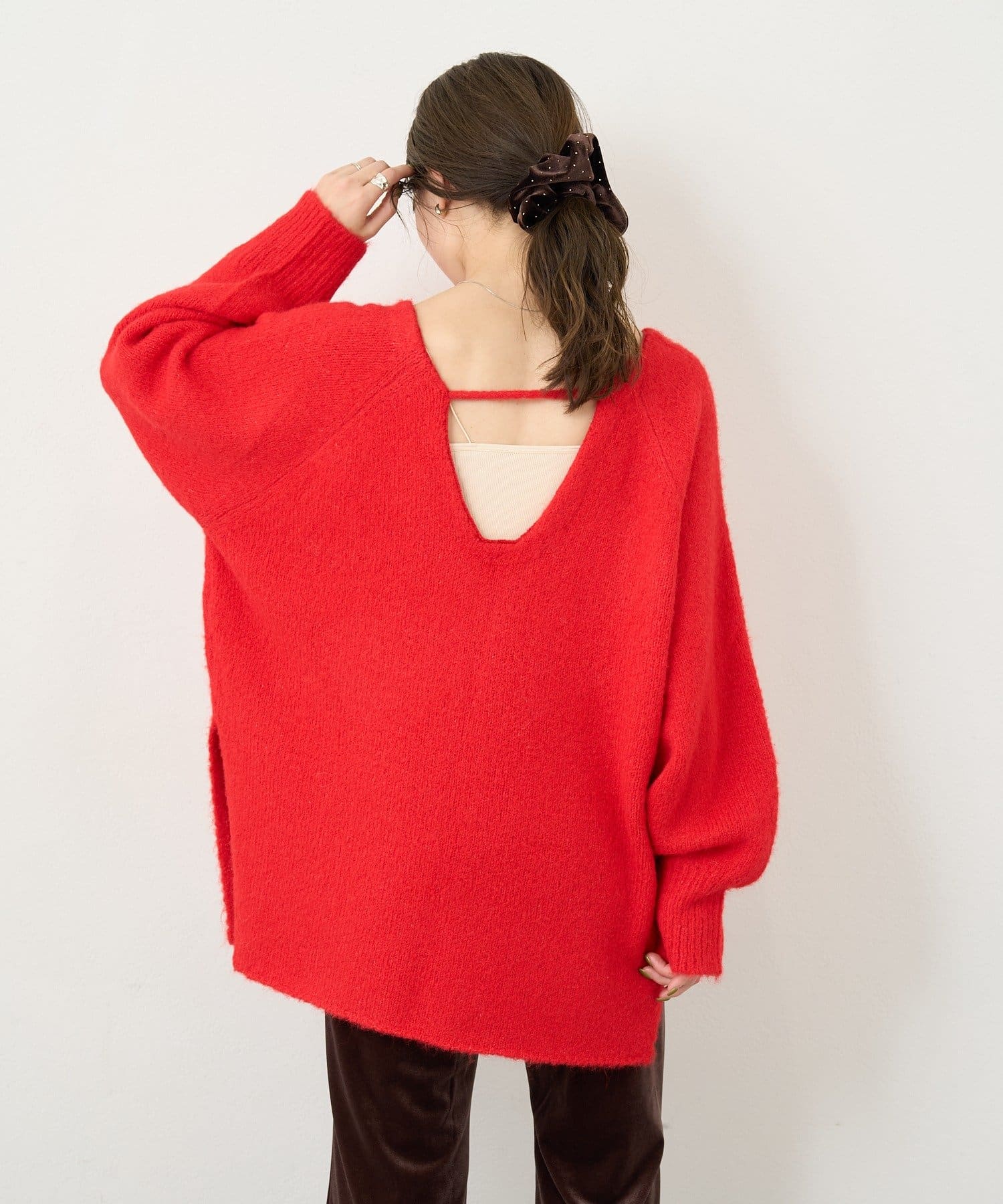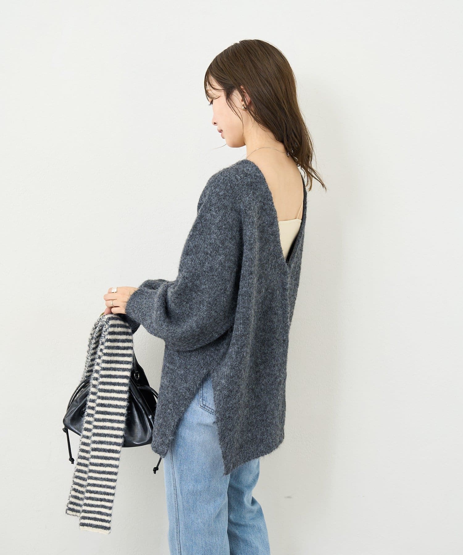 ホック開きのデザインで、カーディガンとして羽織っても、トップス風にも着られる万能アイテム。