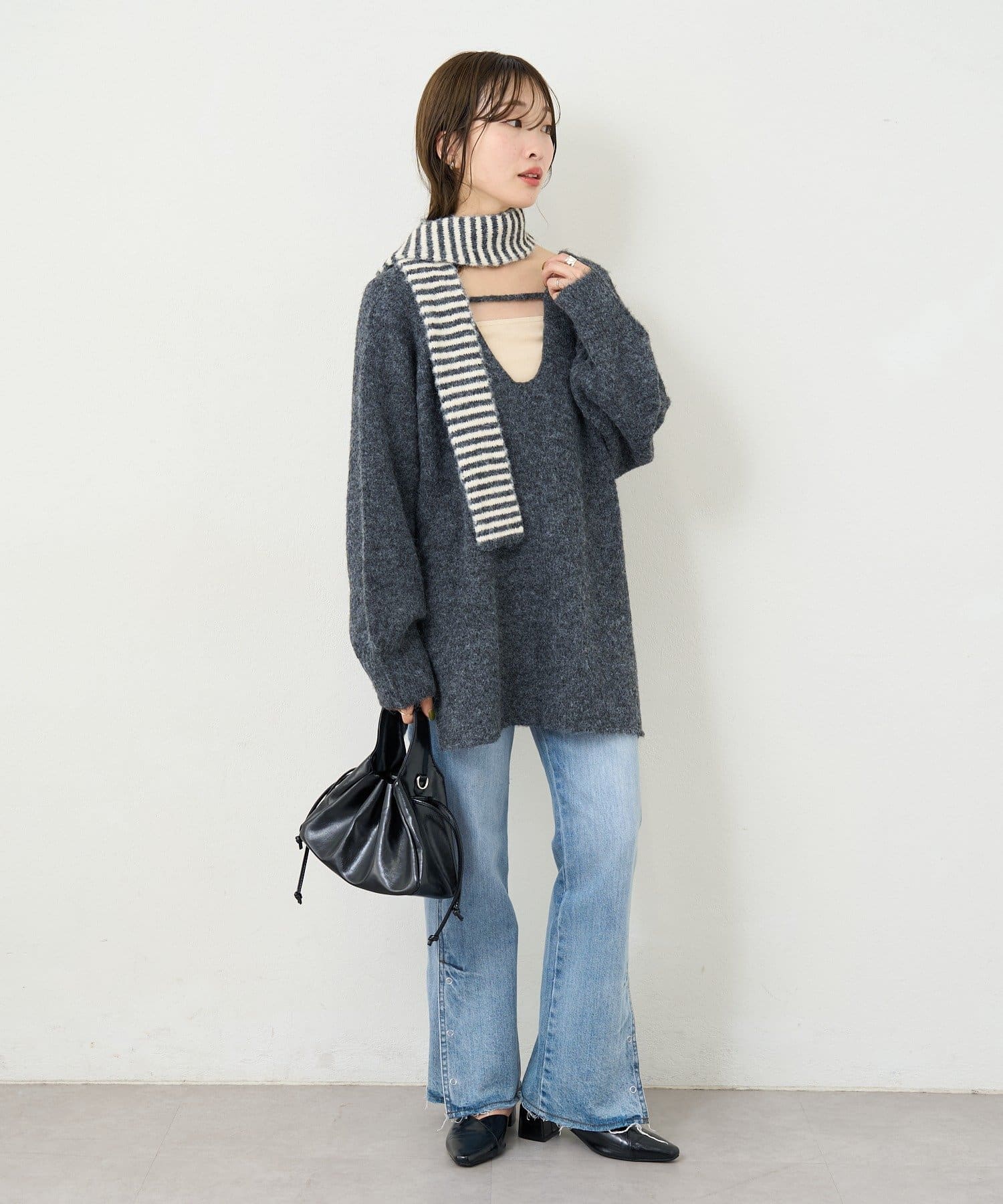 インナーにキャミソールやハイネックを合わせてレイヤードもおすすめ。