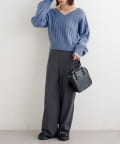 深めのVネックが抜け感をつくり、女性らしさも◎。