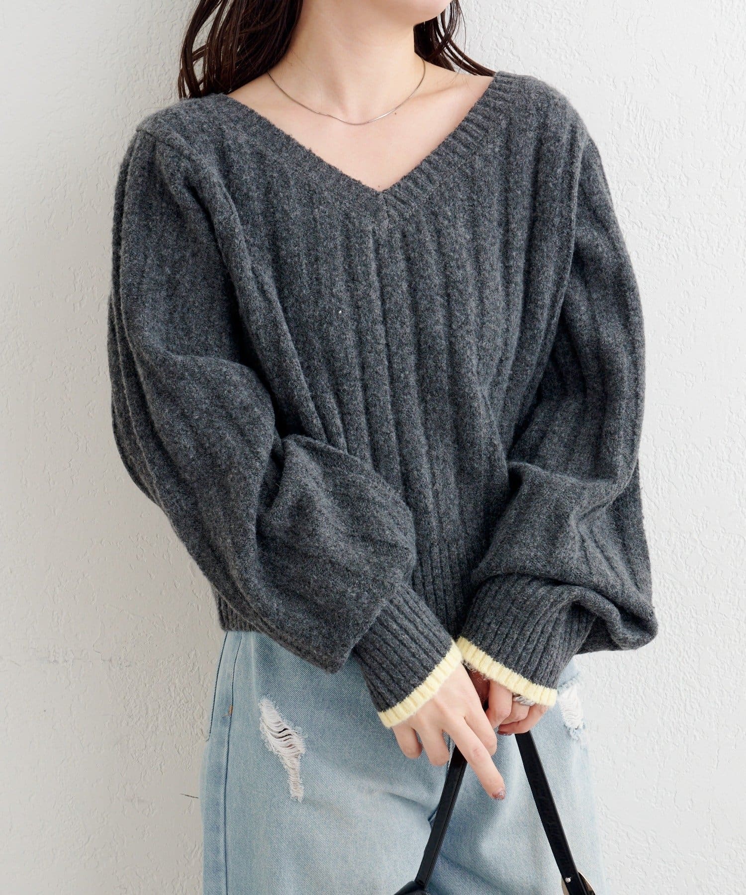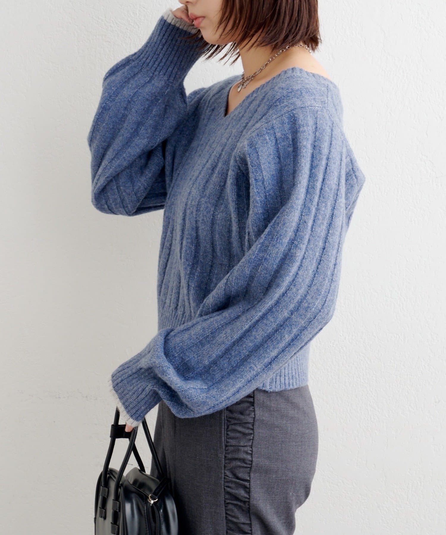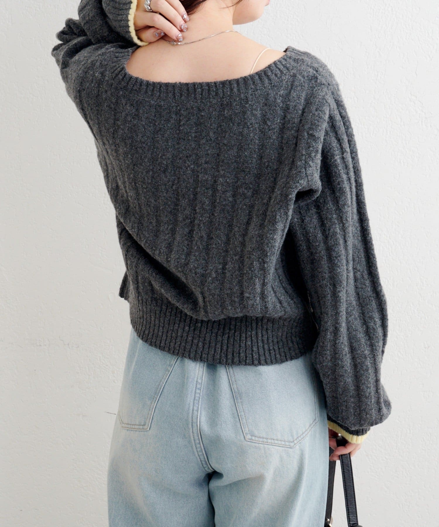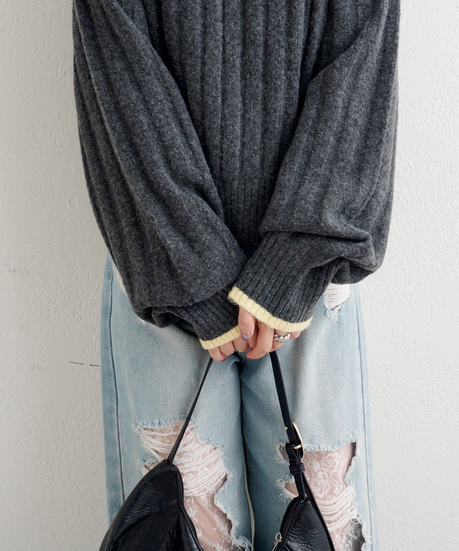 ワイドリブがメリハリをつくる、抜け感たっぷりのふわ軽ニット