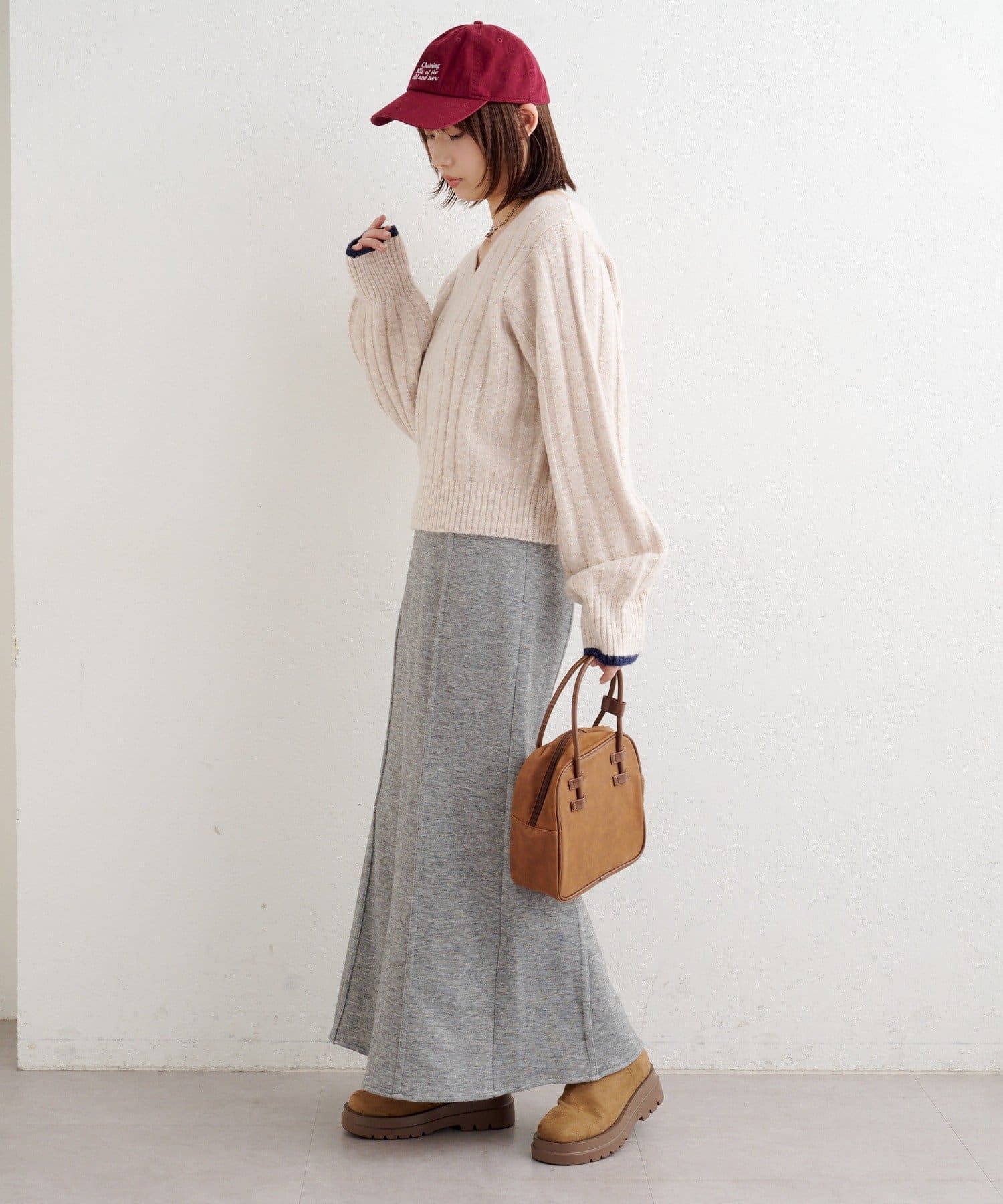 ロングスカートにインして、リブの縦ラインを活かしたきれいめな着こなしもおすすめ。