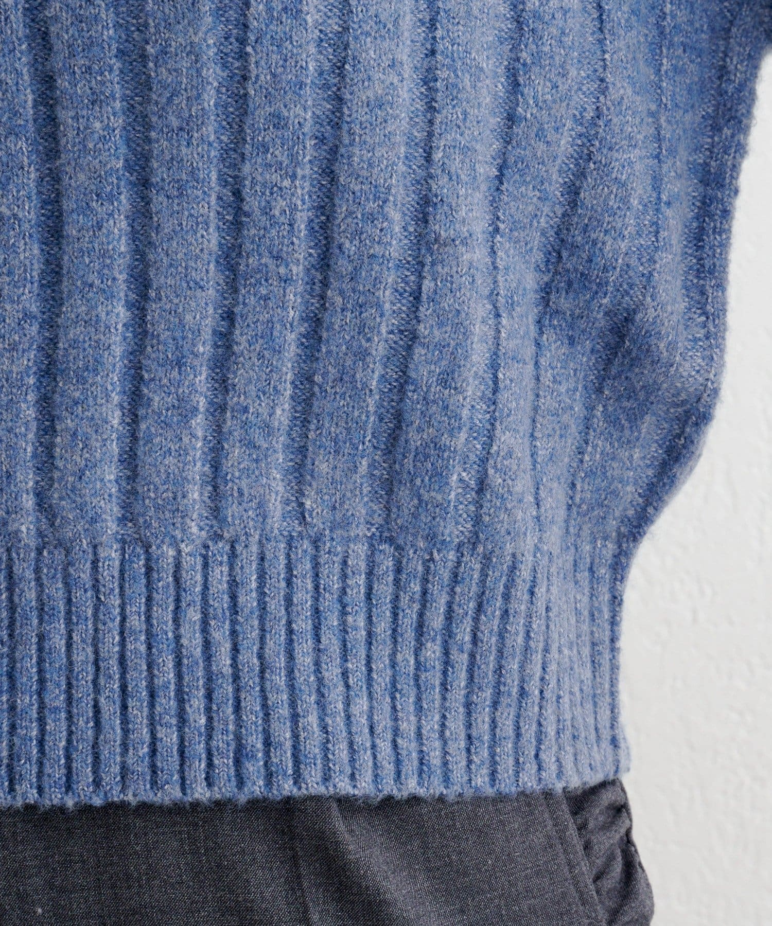 ワイドピッチのリブ編みが表情をつくるニットプルオーバー。