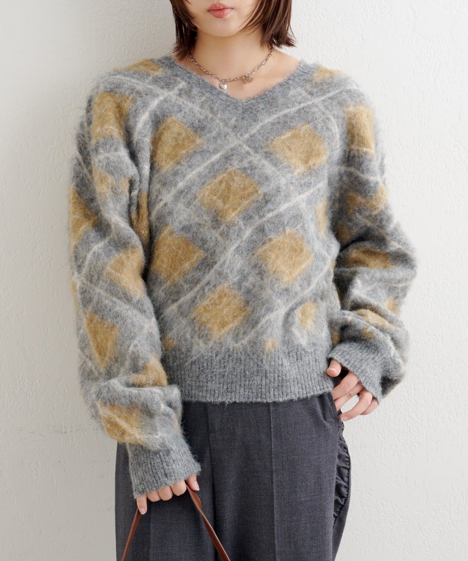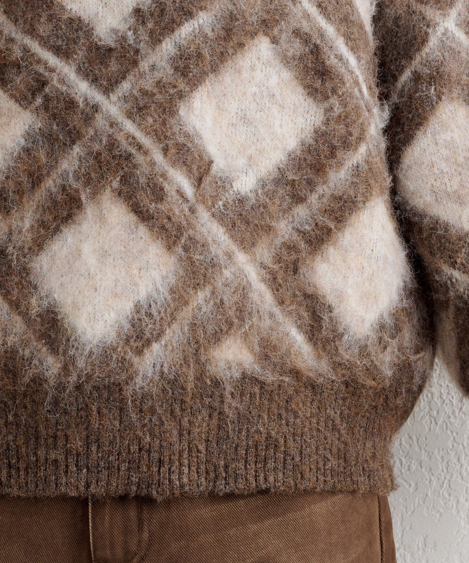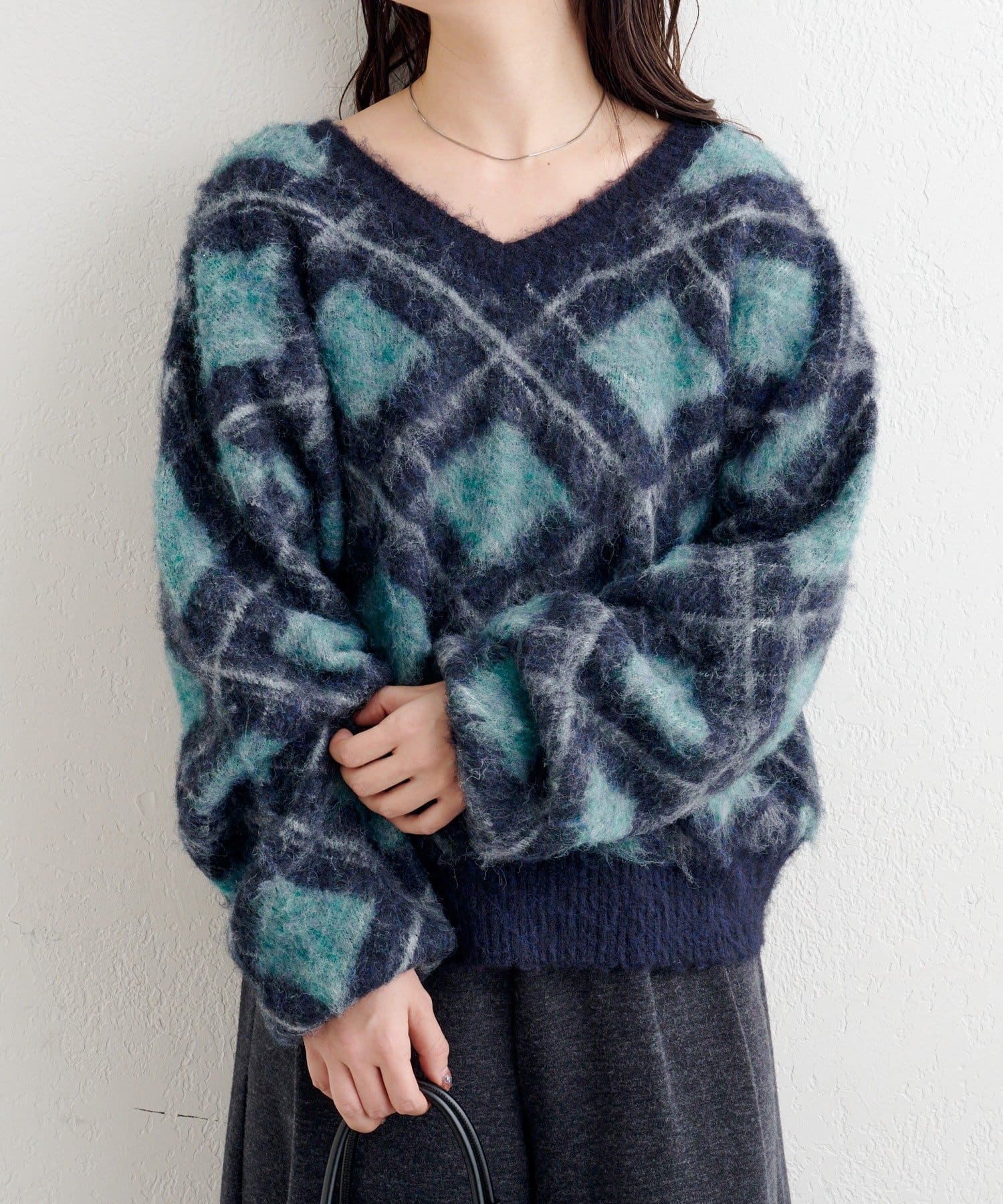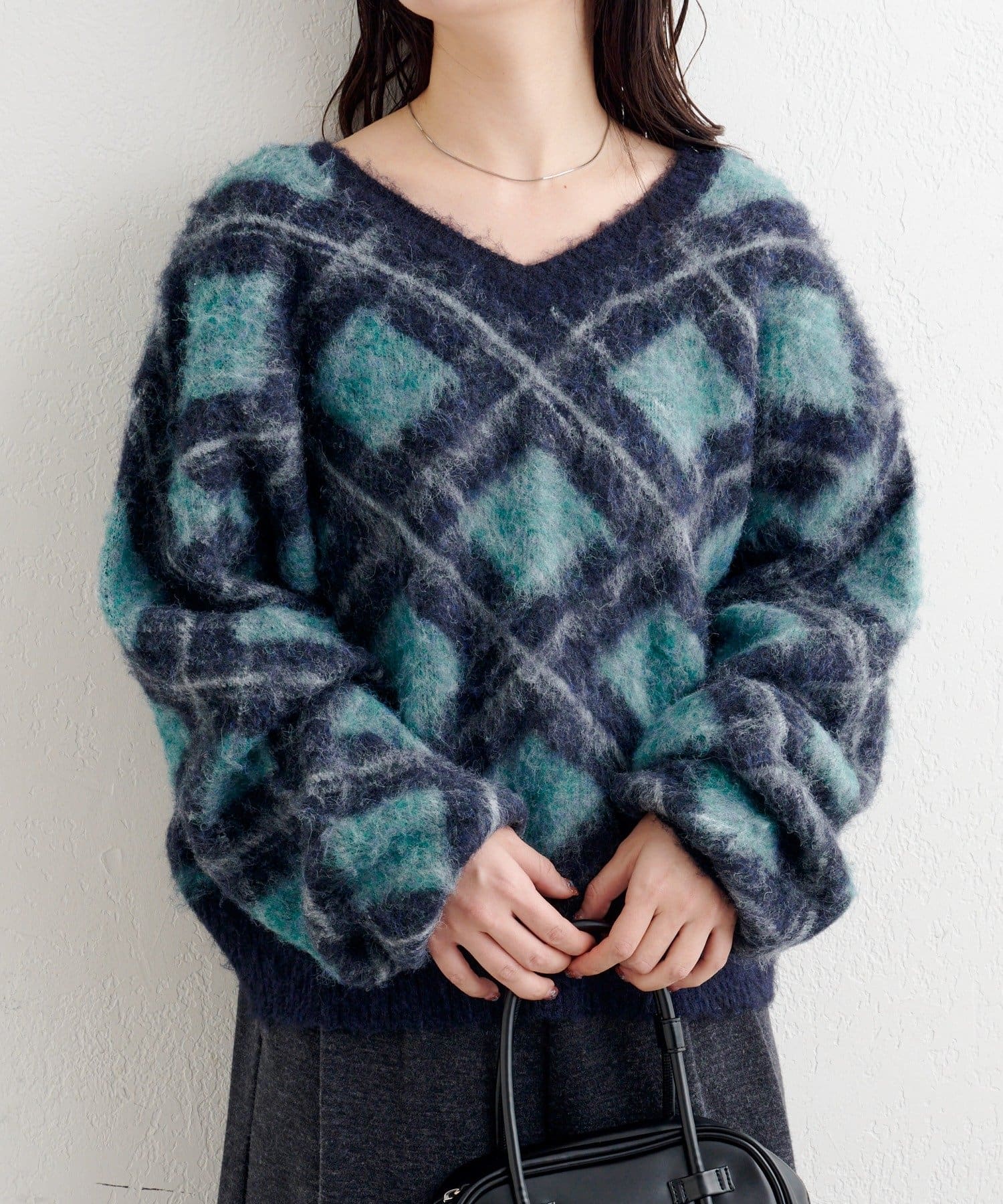 ふんわりとした起毛感が魅力のアーガイルプルオーバー。