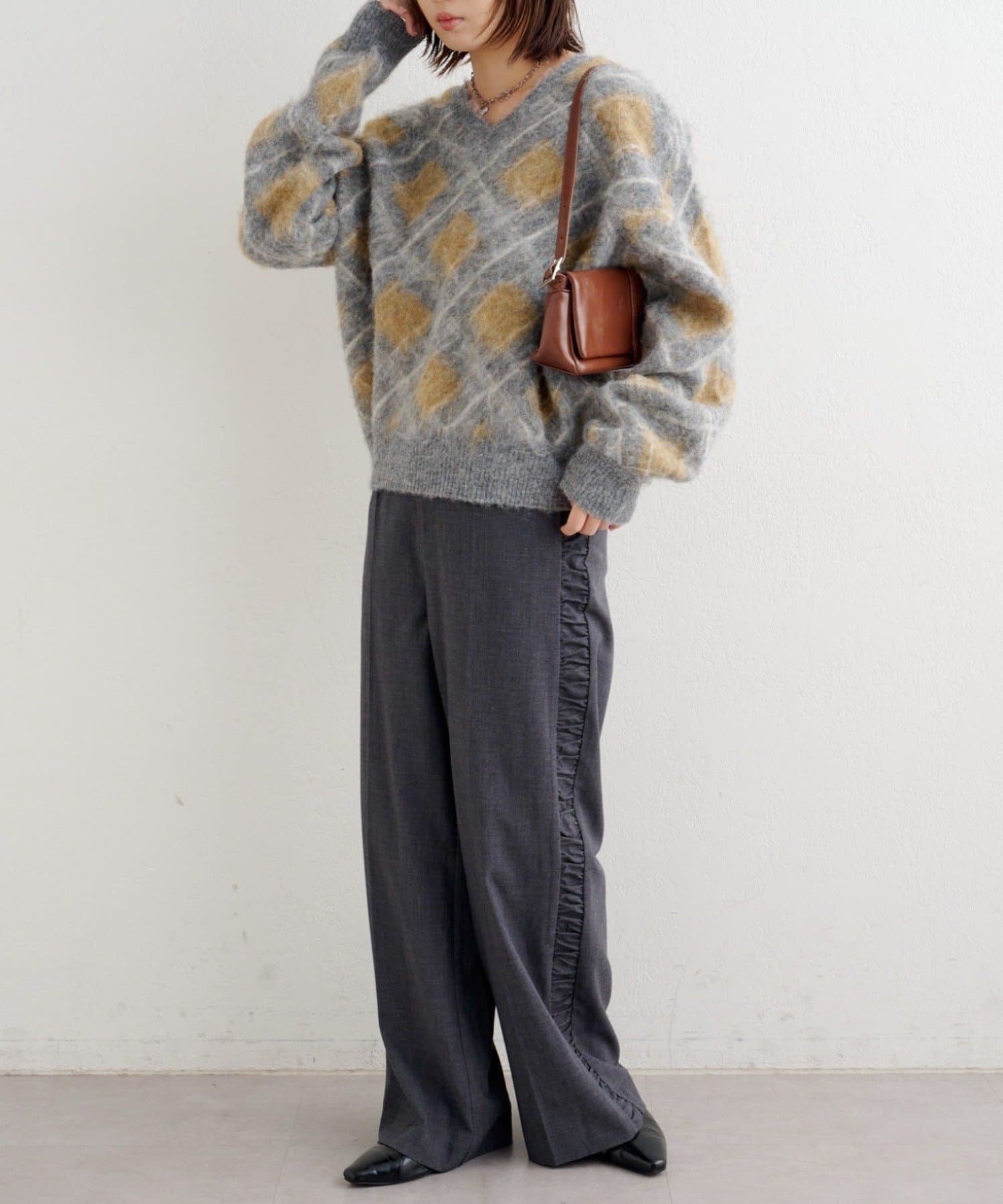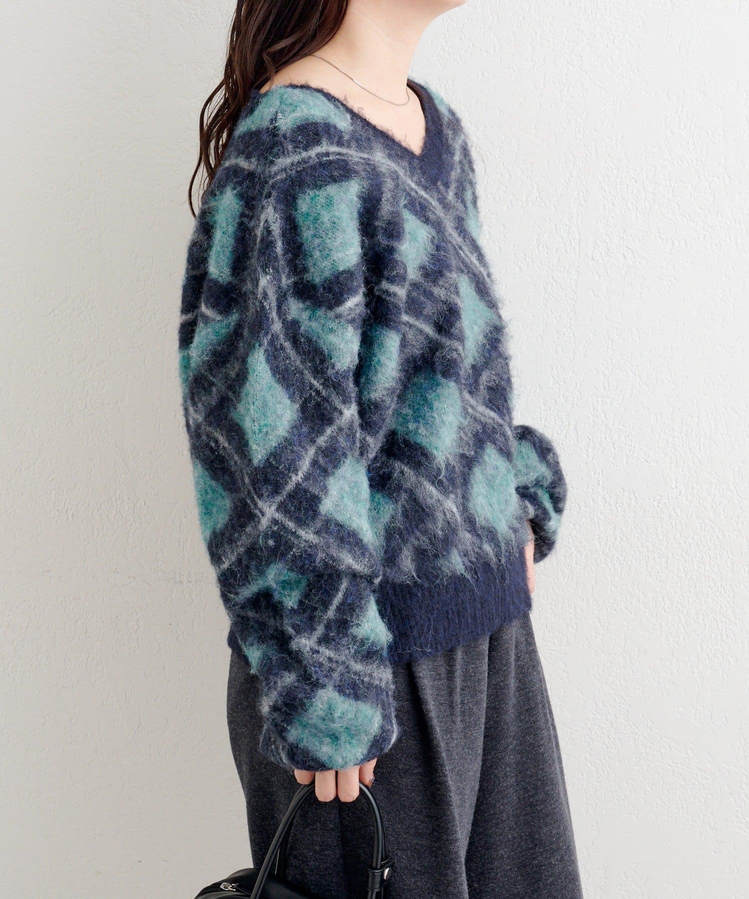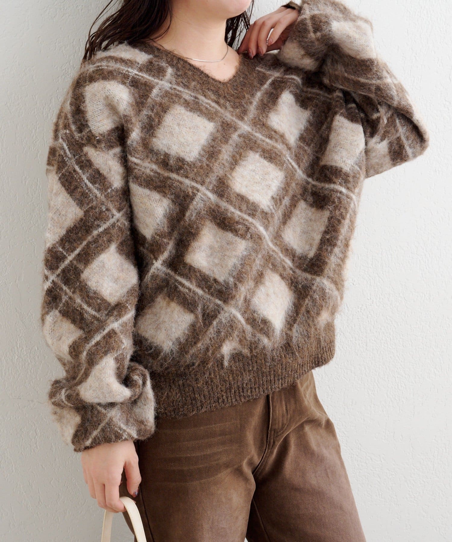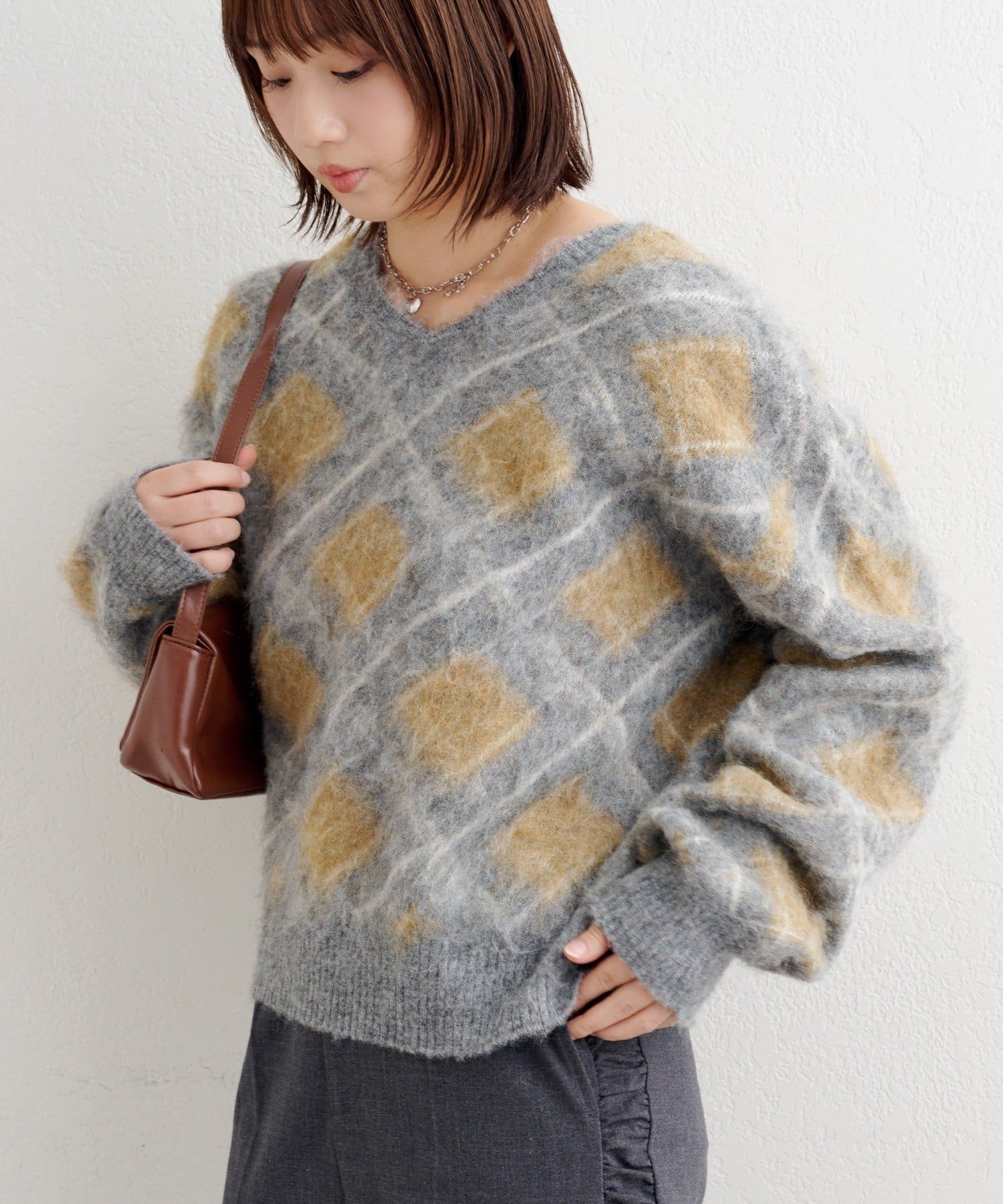 ふんわりとした起毛感が魅力のアーガイルプルオーバー。