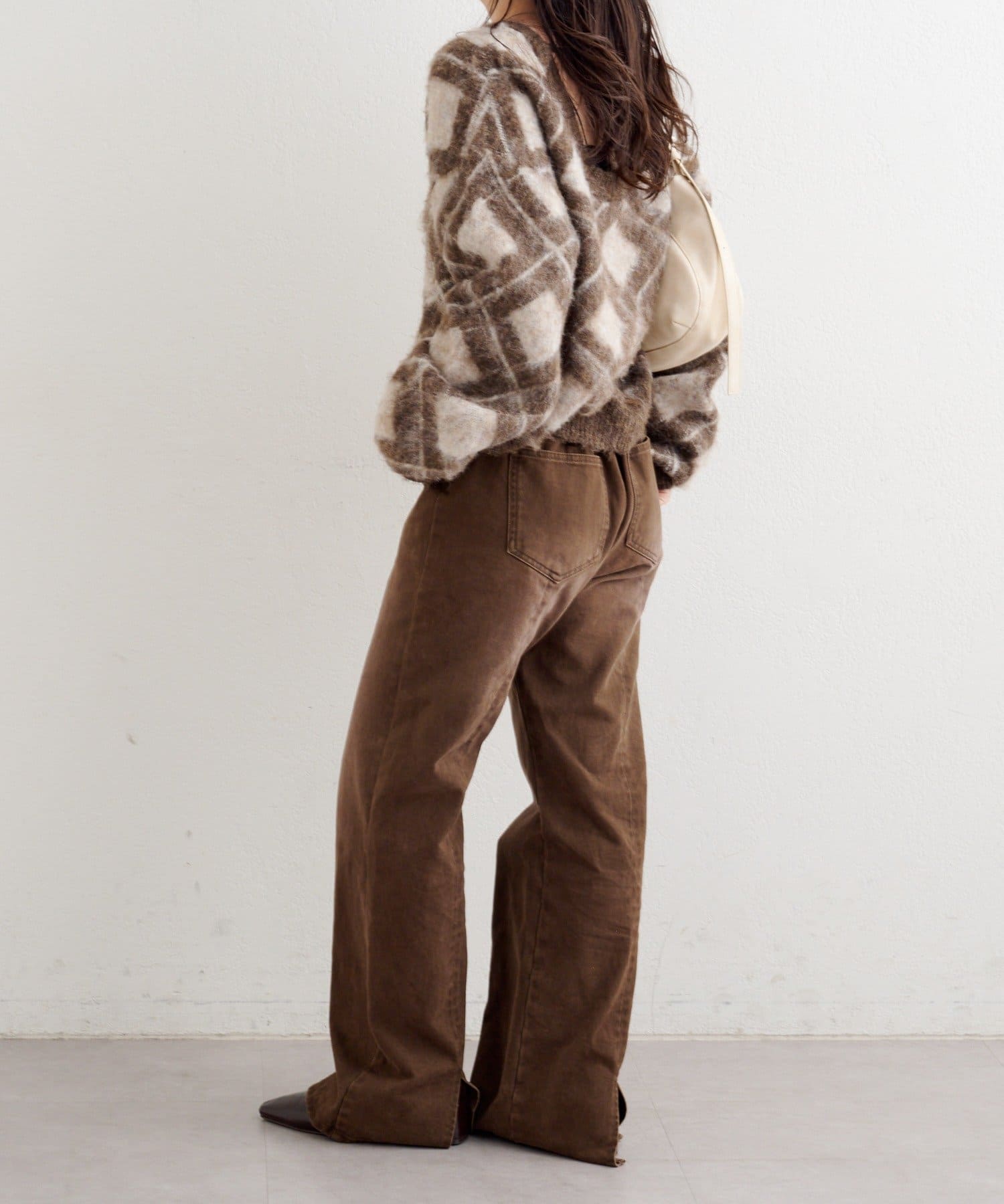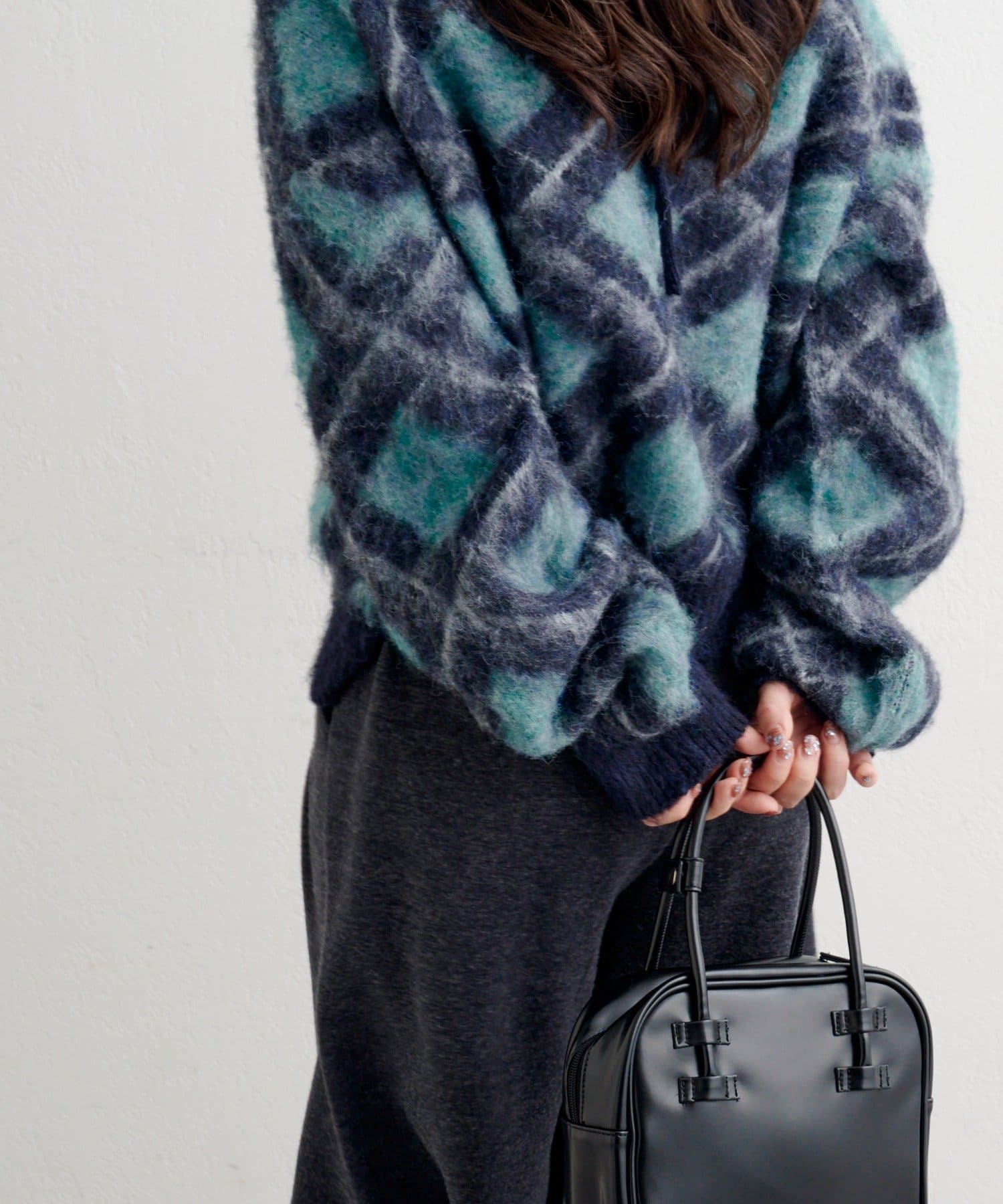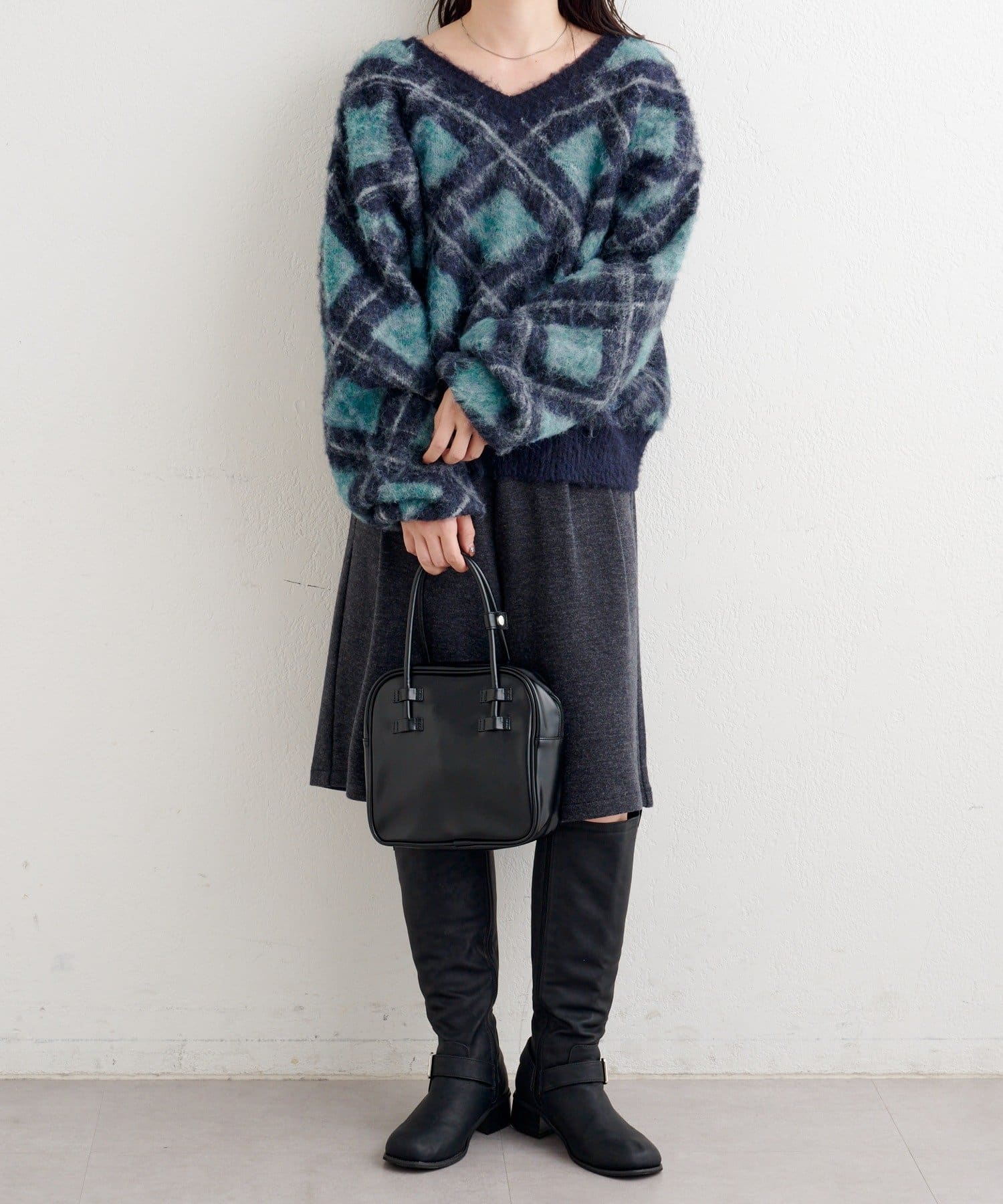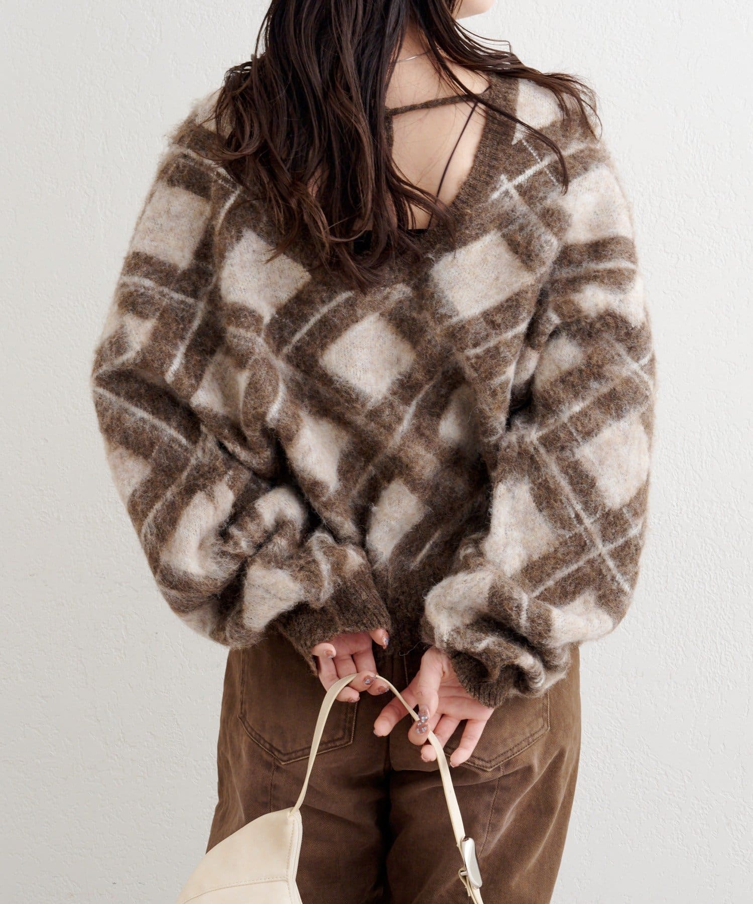 ふわっと軽い起毛感と背中リボンが可愛い、冬映えアーガイルニット