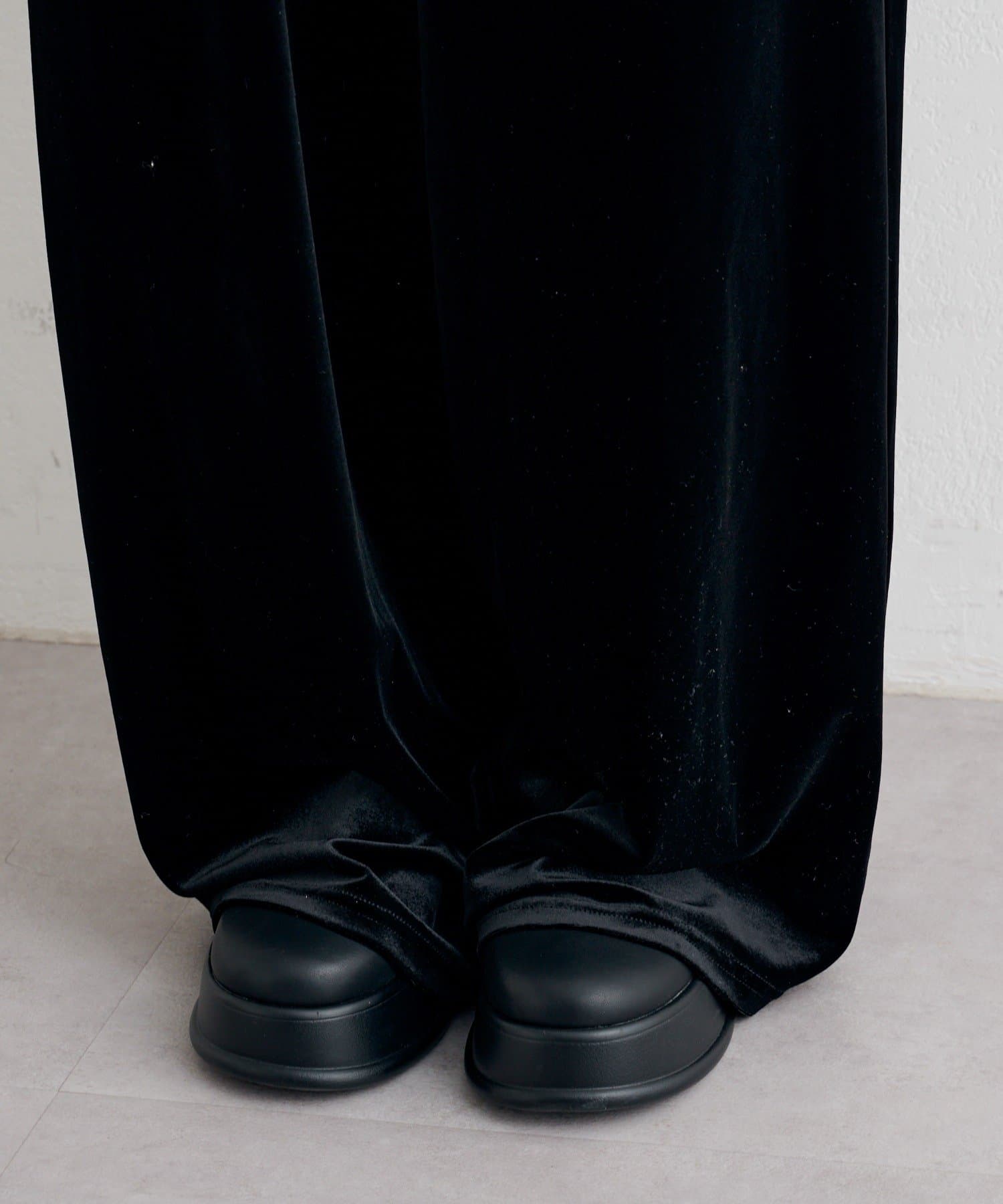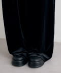 程よい厚みと落ち感のあるベロア素材。しっとりとした手触りと、光の当たり方で表情が変わる上品なツヤが特徴。
