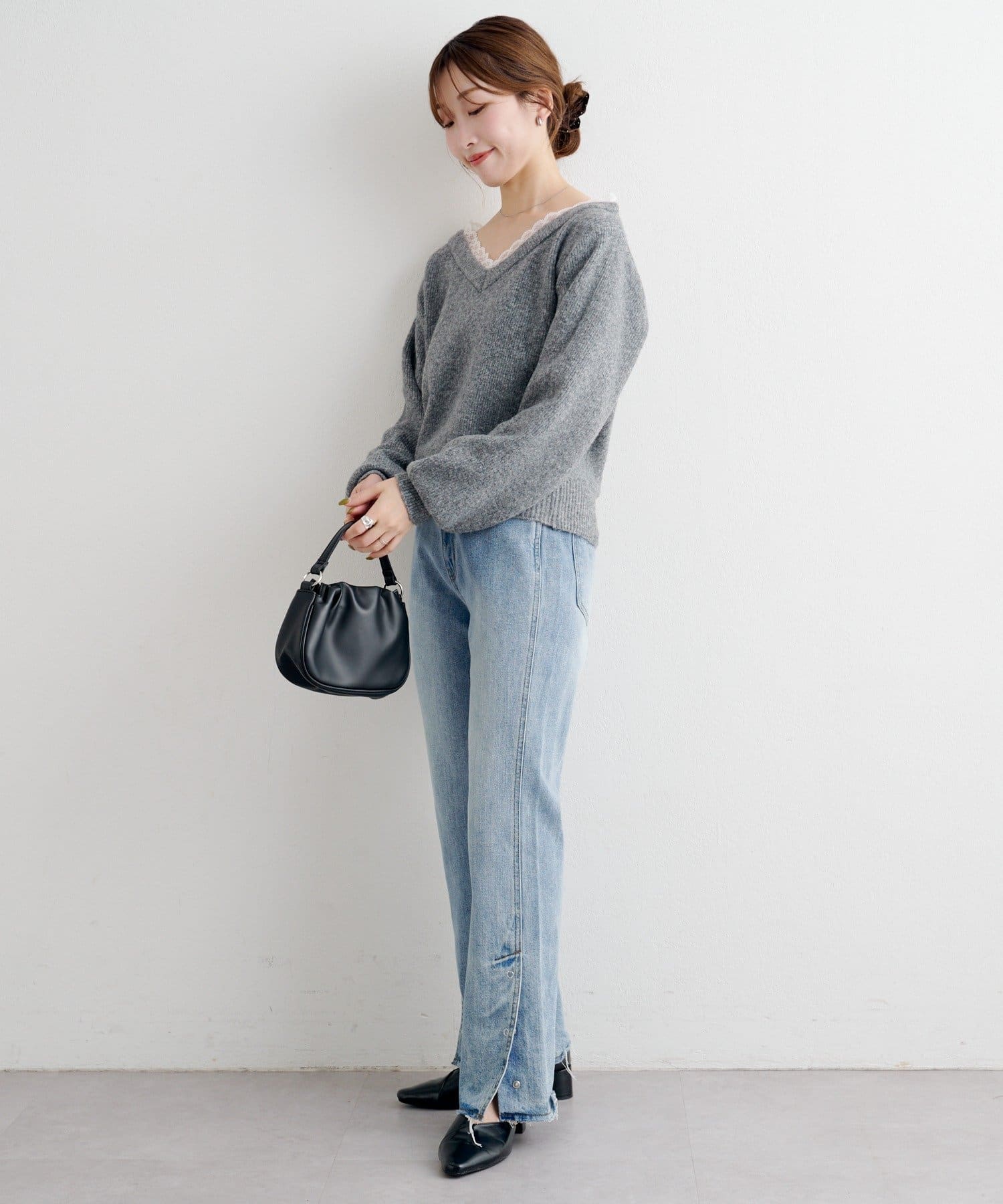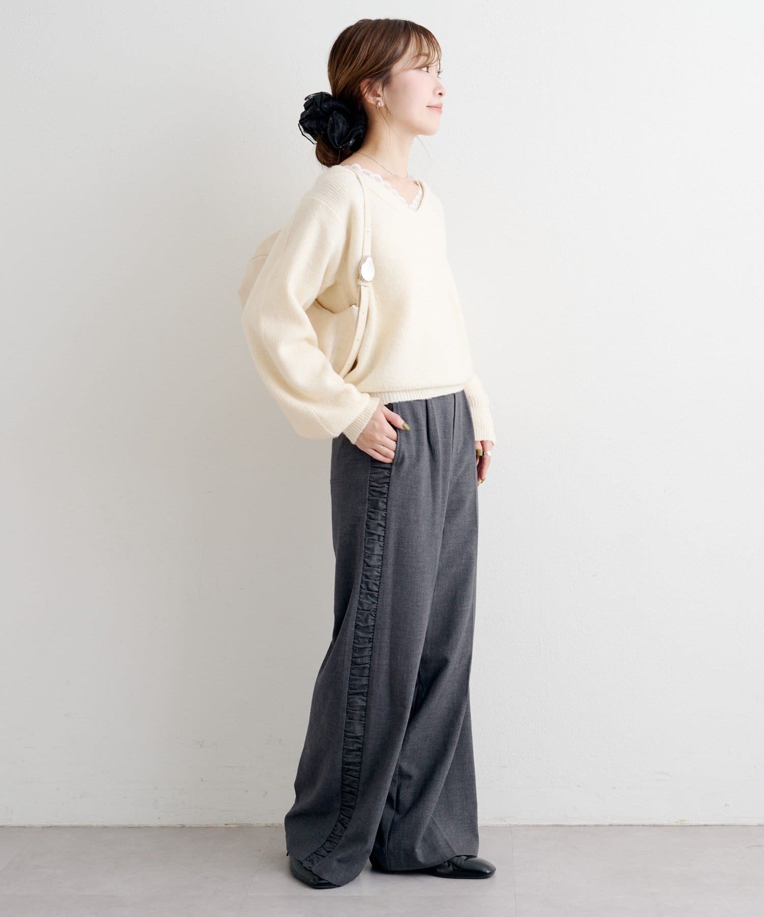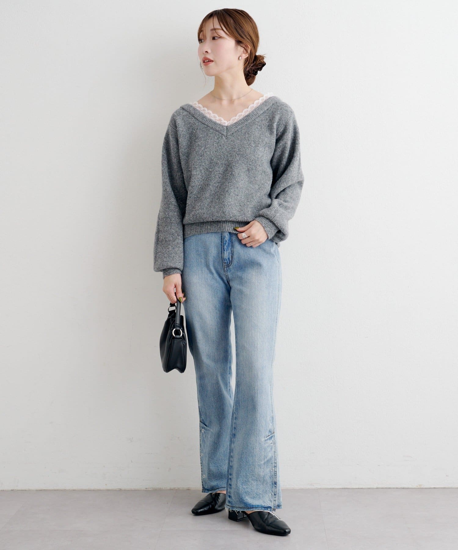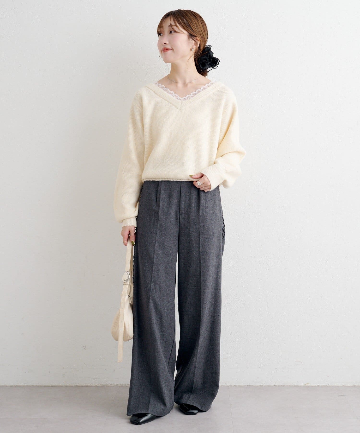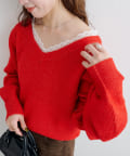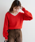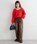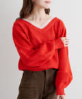 ゆるっとしたシルエットと、程よいVネックで女性らしいバランスに。