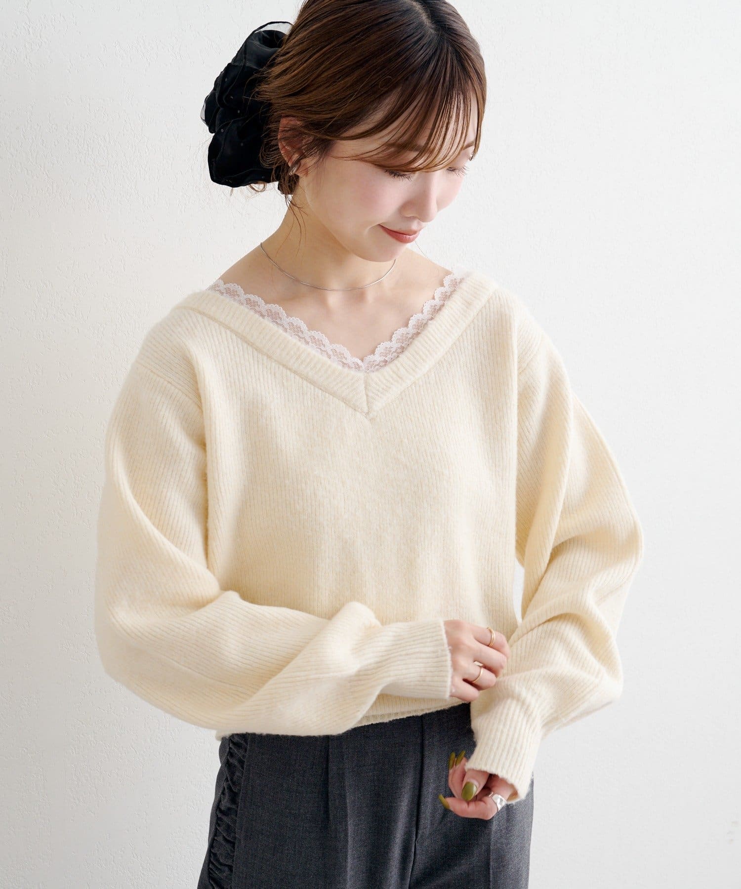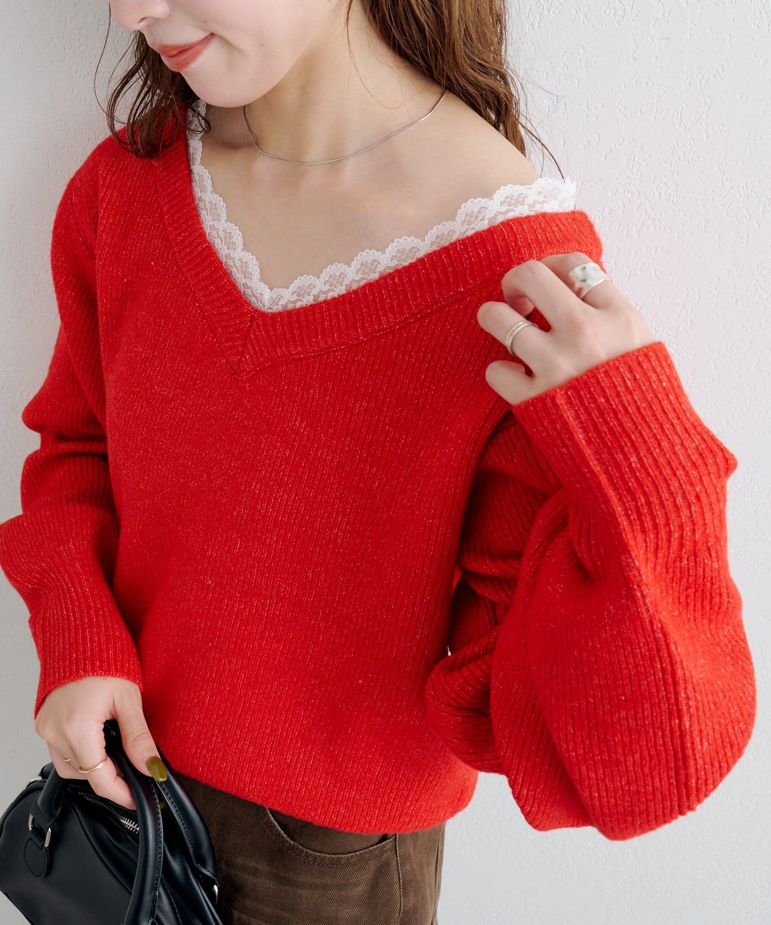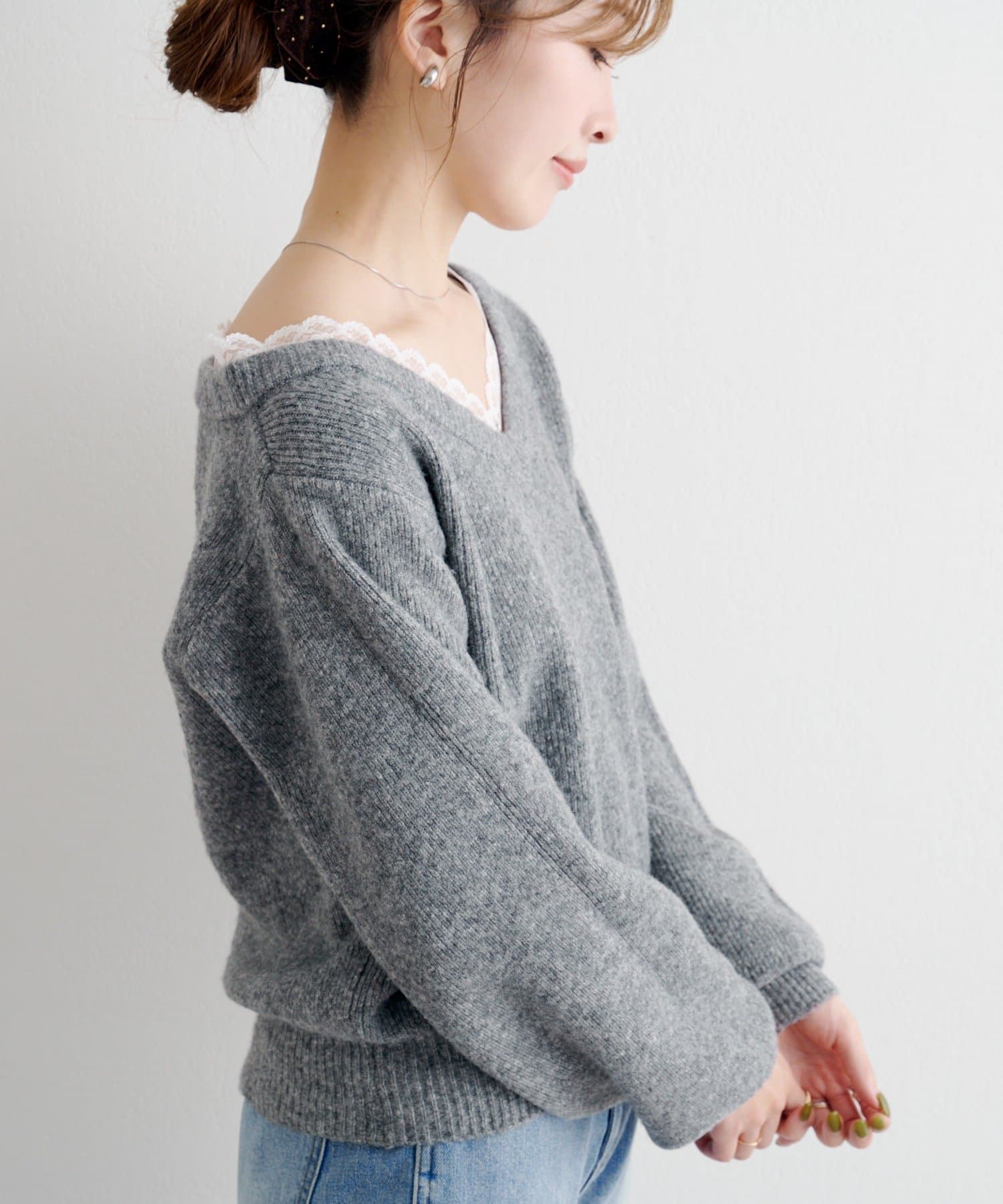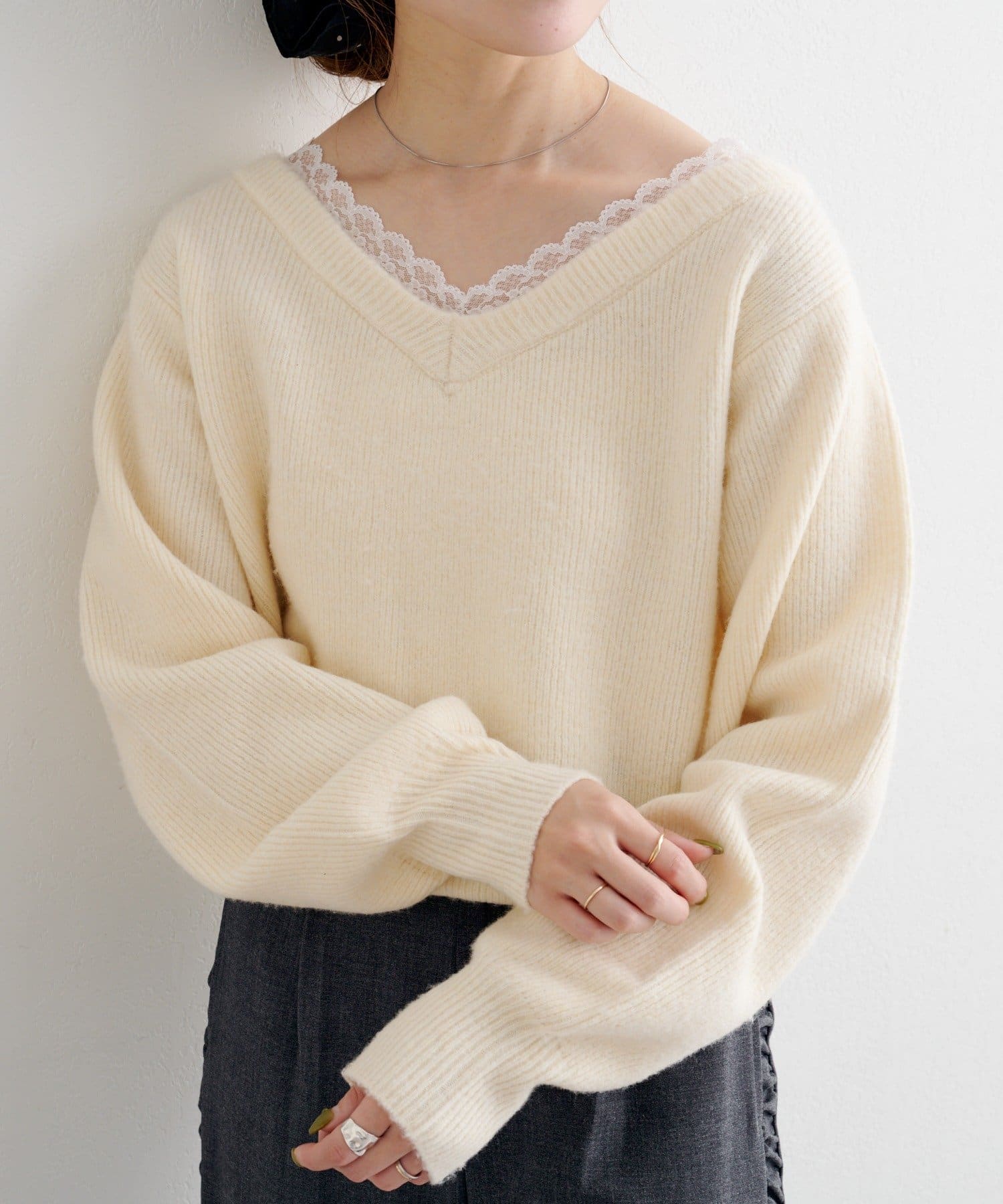 レースが覗くワンランク上のレイヤードニット