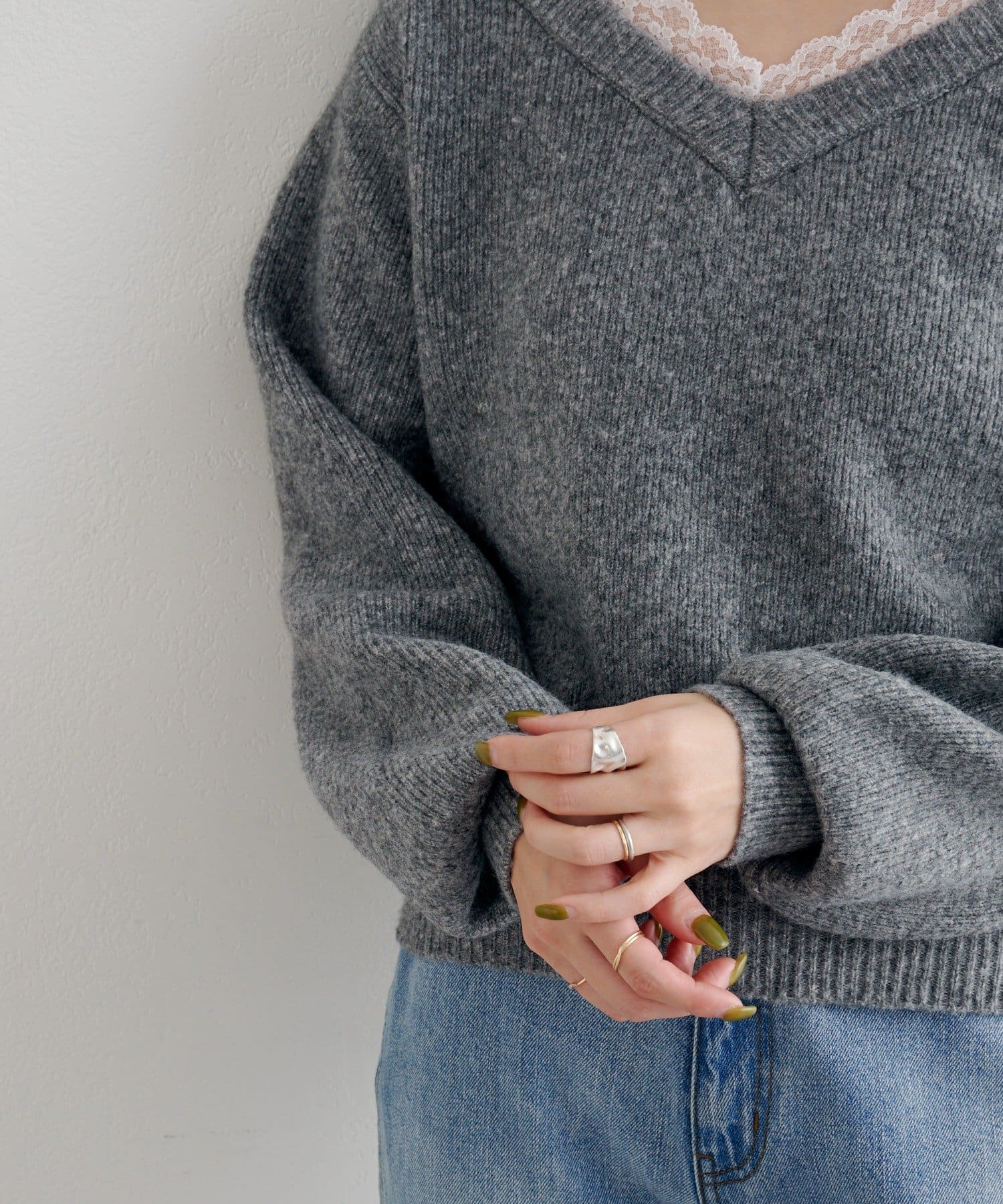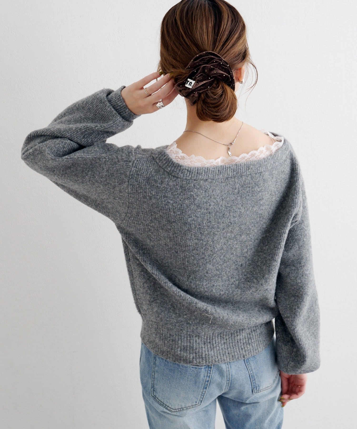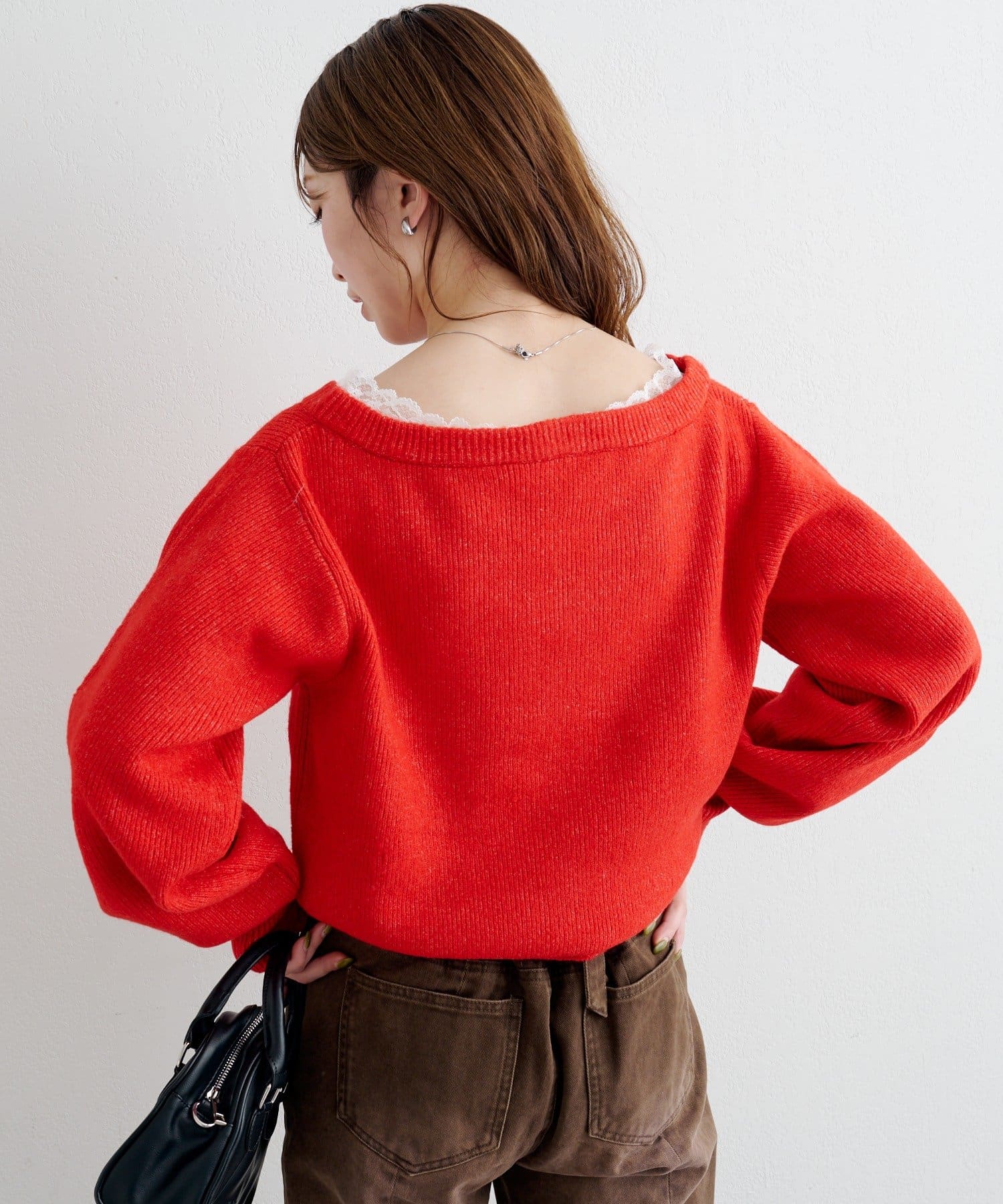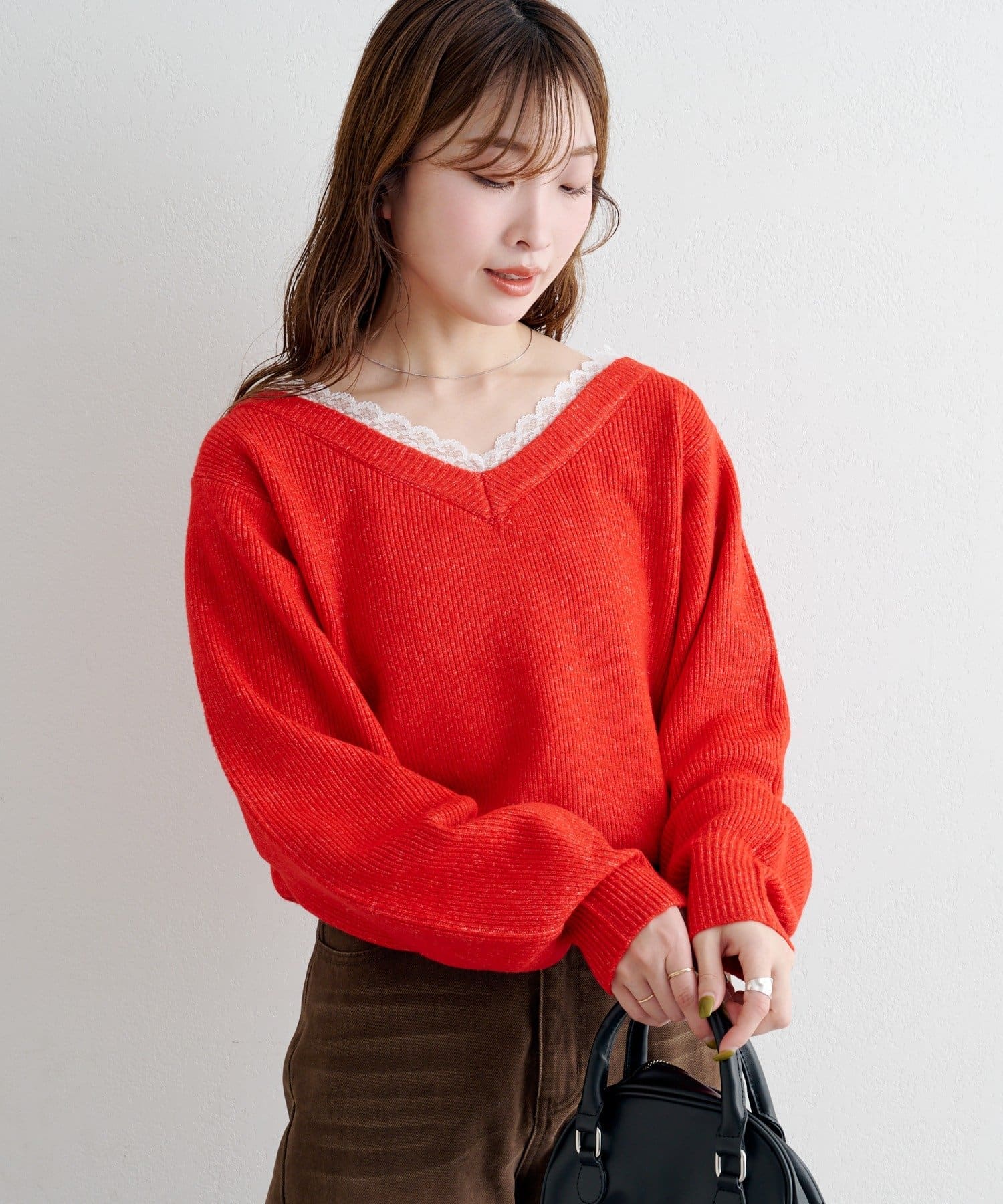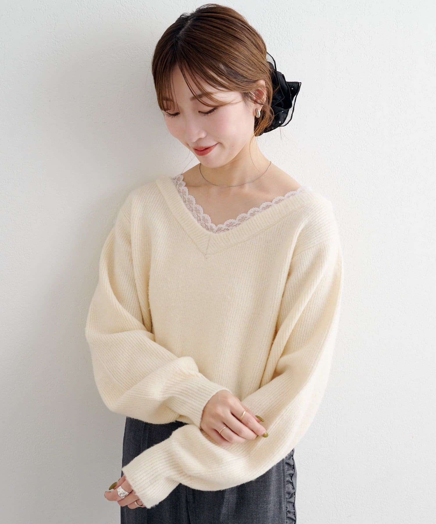 レースが覗くワンランク上のレイヤードニット