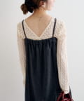 華奢な肩紐と、ストンと落ちるようなストレートシルエットが大人っぽい印象のニットライクキャミワンピース。