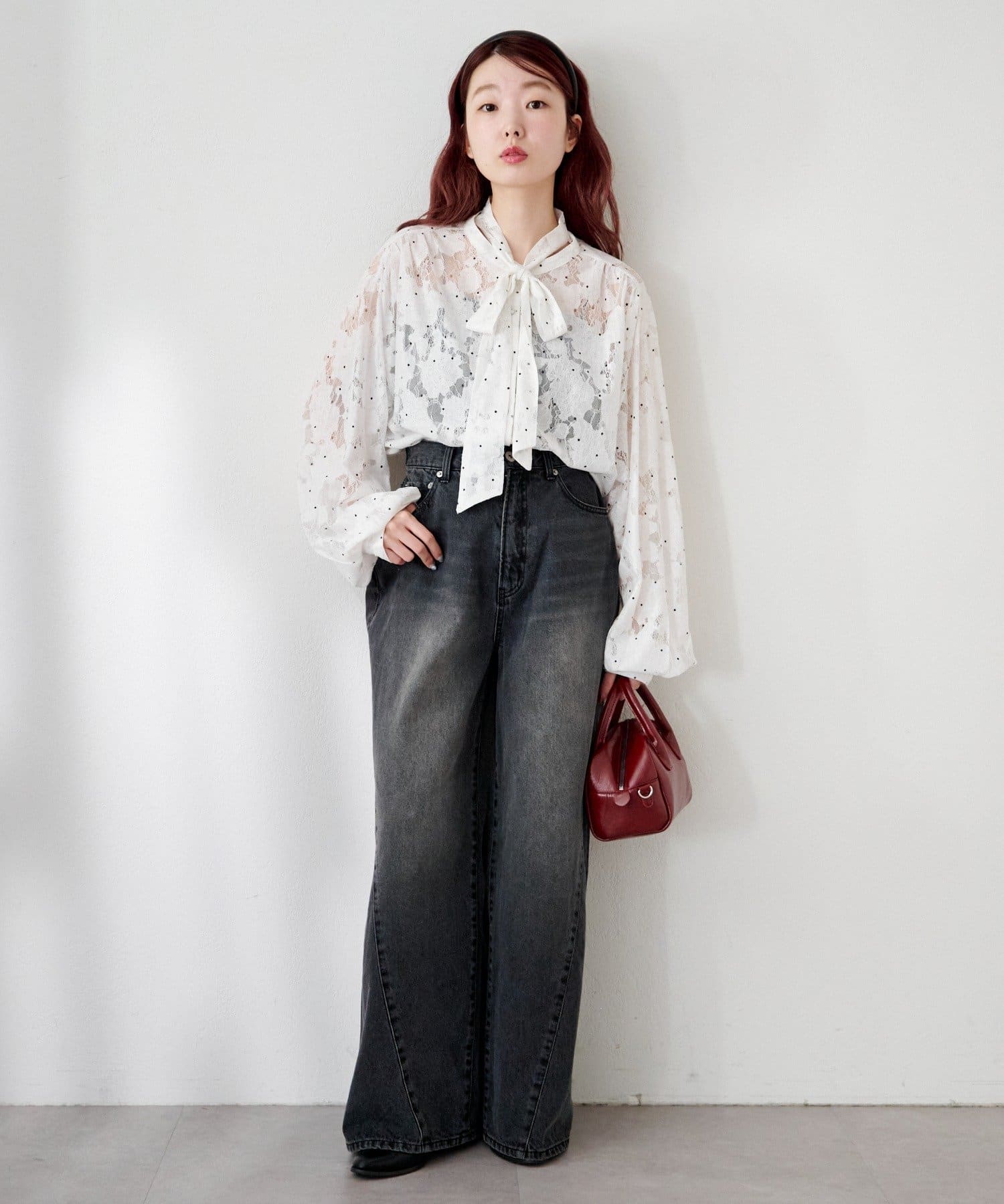 透け感×ドット×ボウタイの、着るだけで雰囲気が出る主役級ブラウス
