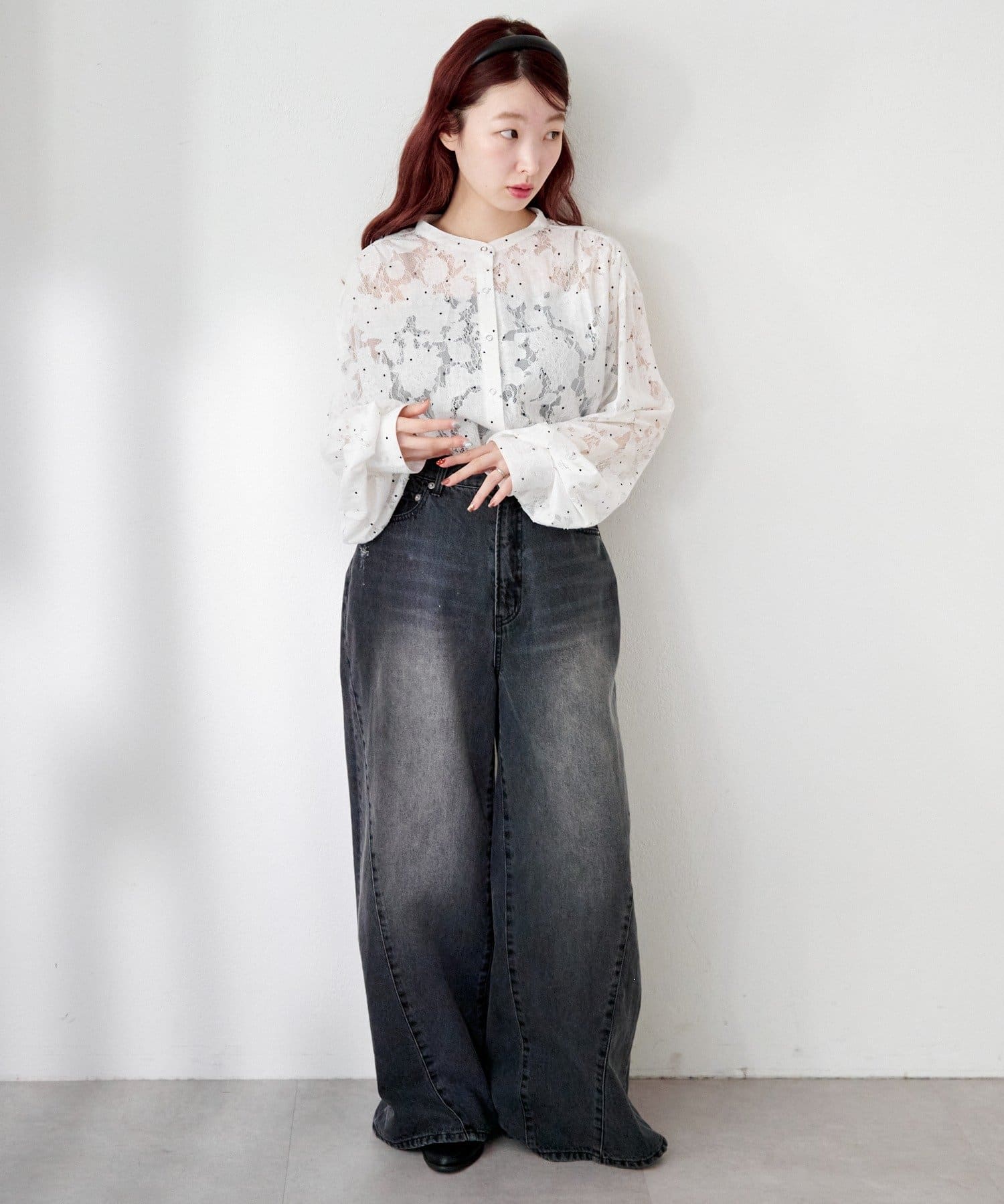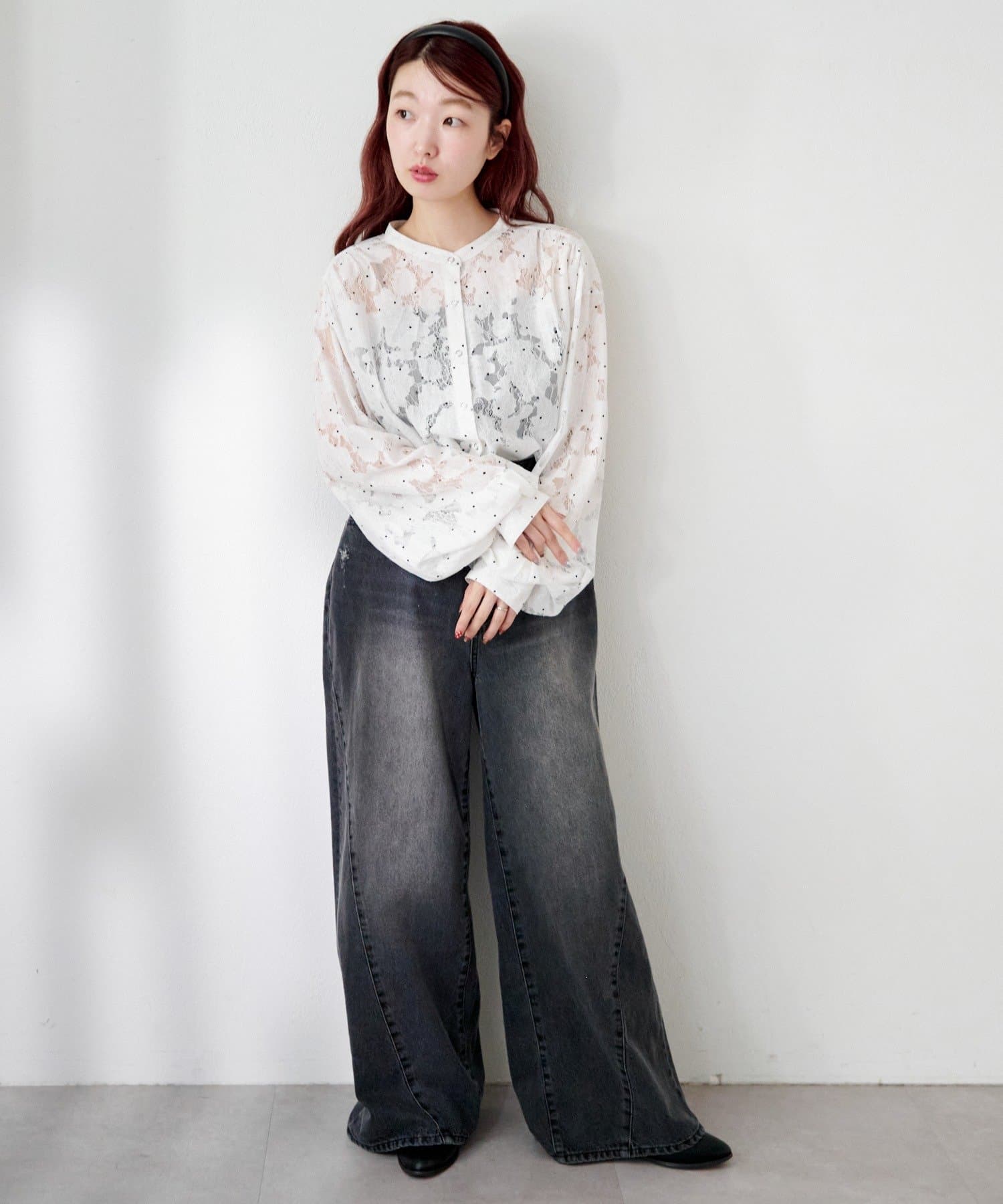 デニムでカジュアルダウンをすると、レースの華やかさが引き立ち、こなれたデイリーコーデに。