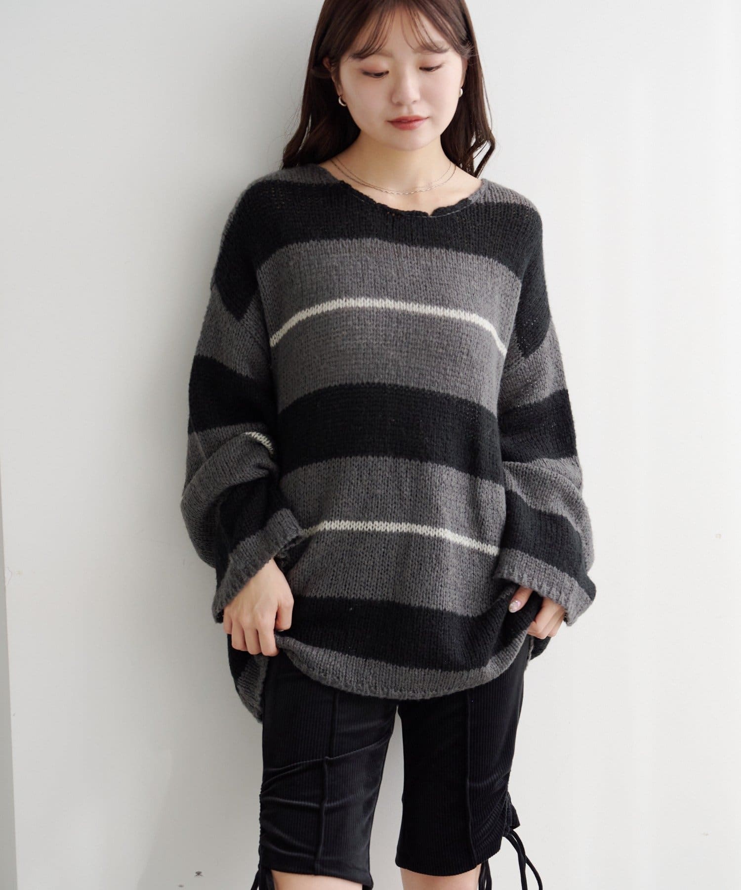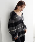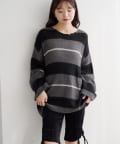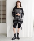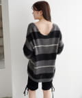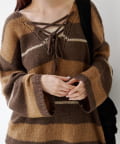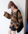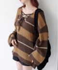 • Kastane(カスタネ) 【WEB先行/無地&ボーダー/前後2WAY】編み上げルーズニット