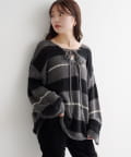 Kastane(カスタネ) 【WEB先行/無地&ボーダー/前後2WAY】編み上げルーズニット