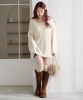 ざっくりニットにロングスカートを合わせて、女性らしいスタイルに。