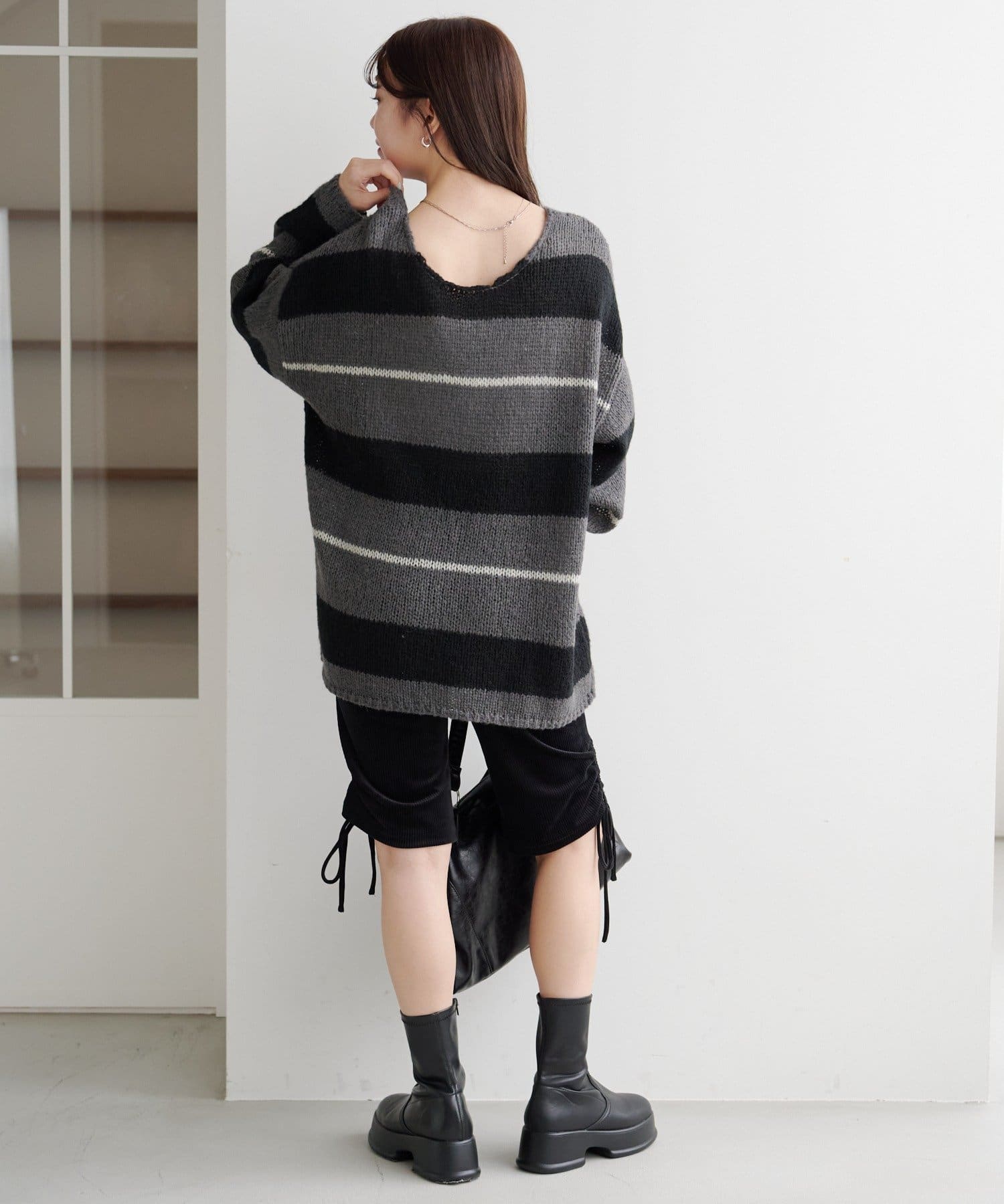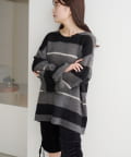 【WEB先行/無地&ボーダー/前後2WAY】編み上げルーズニット
