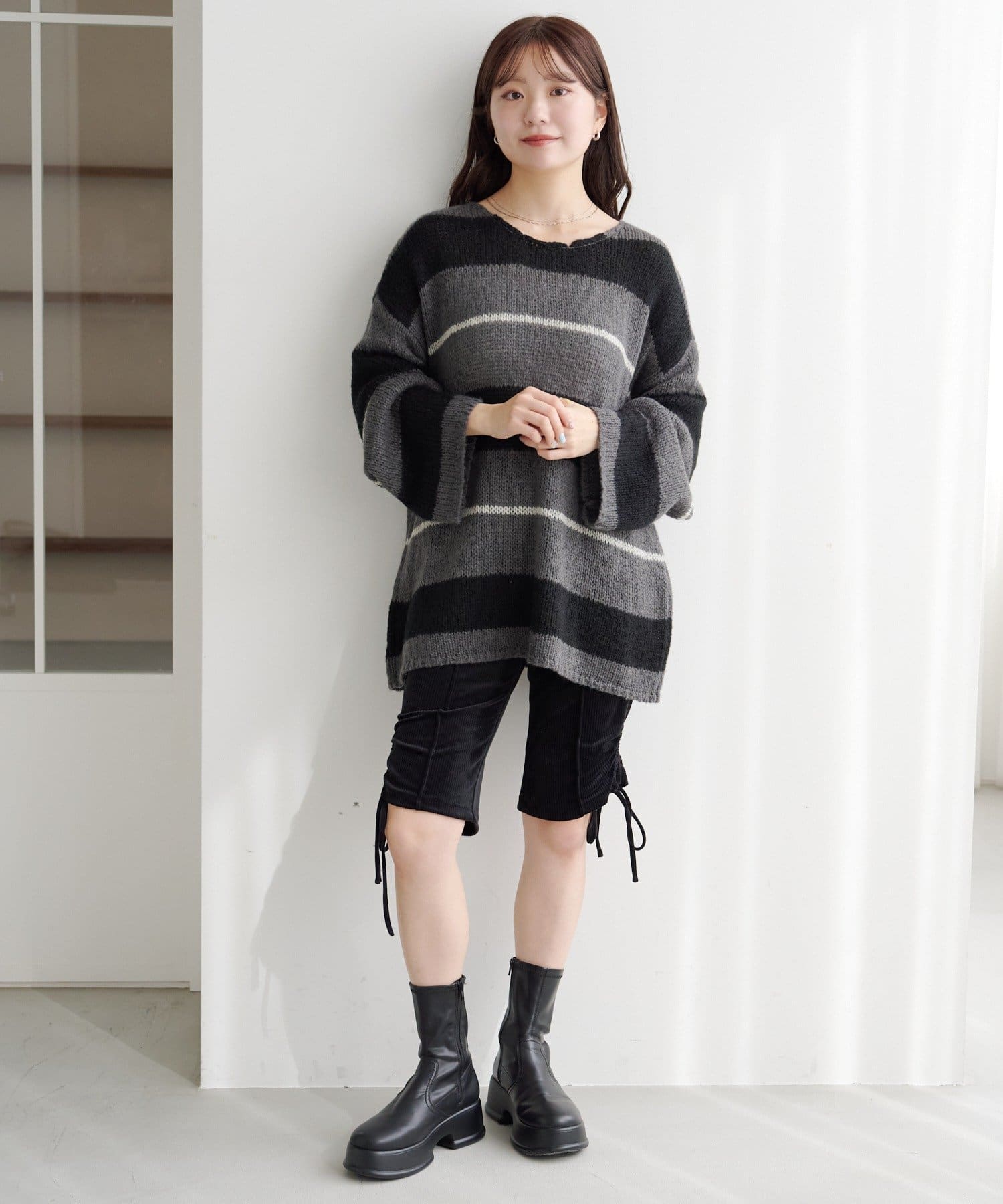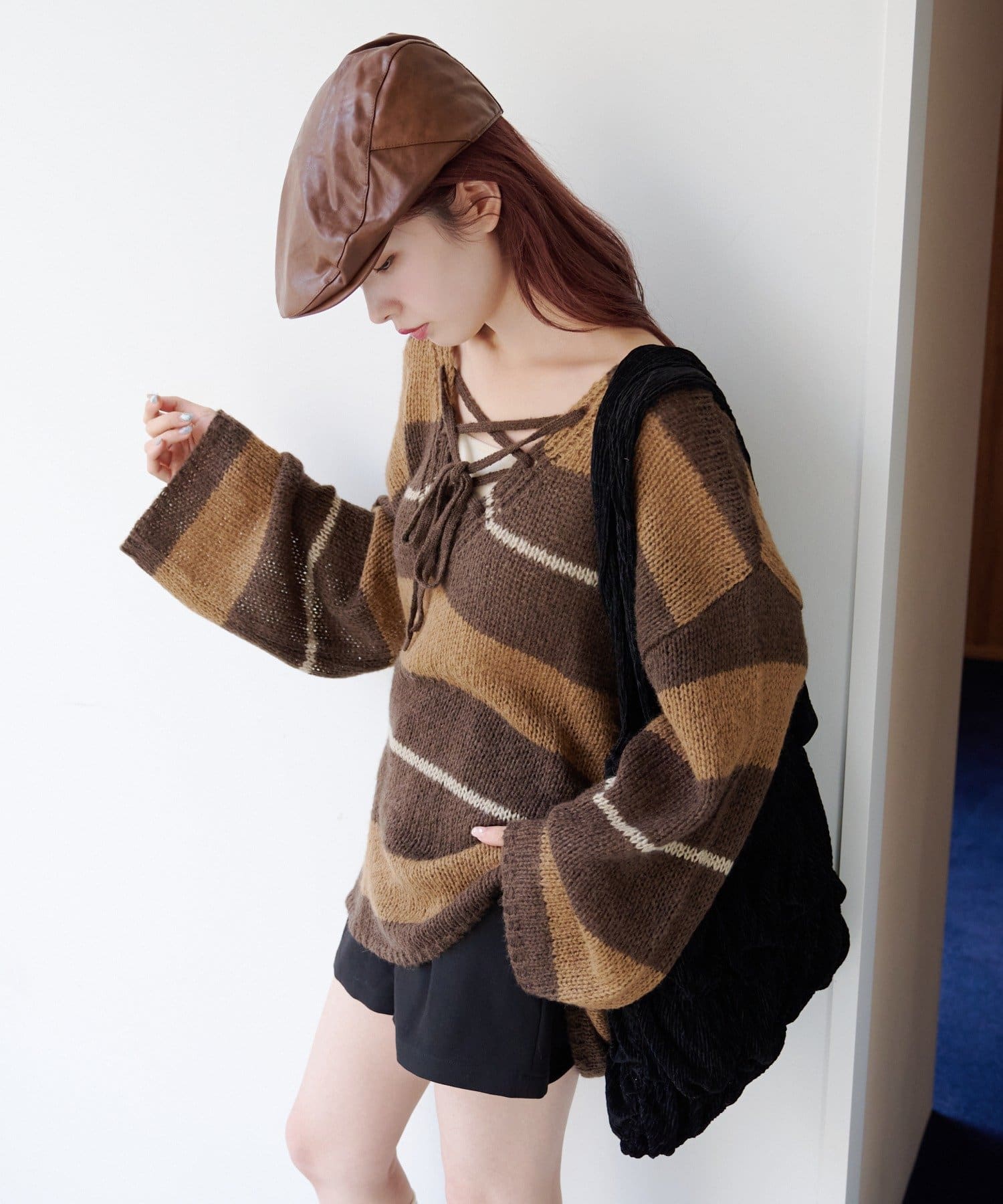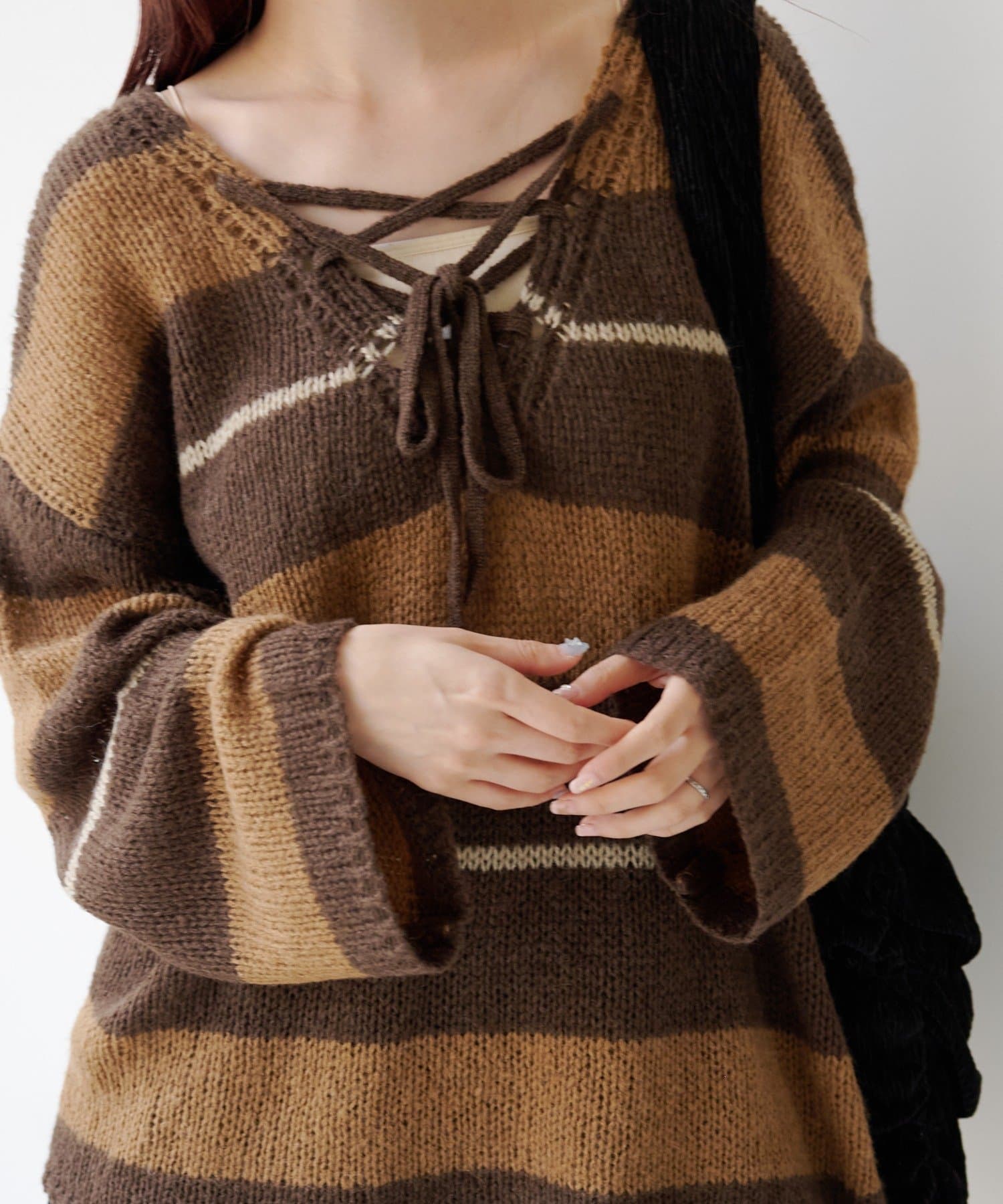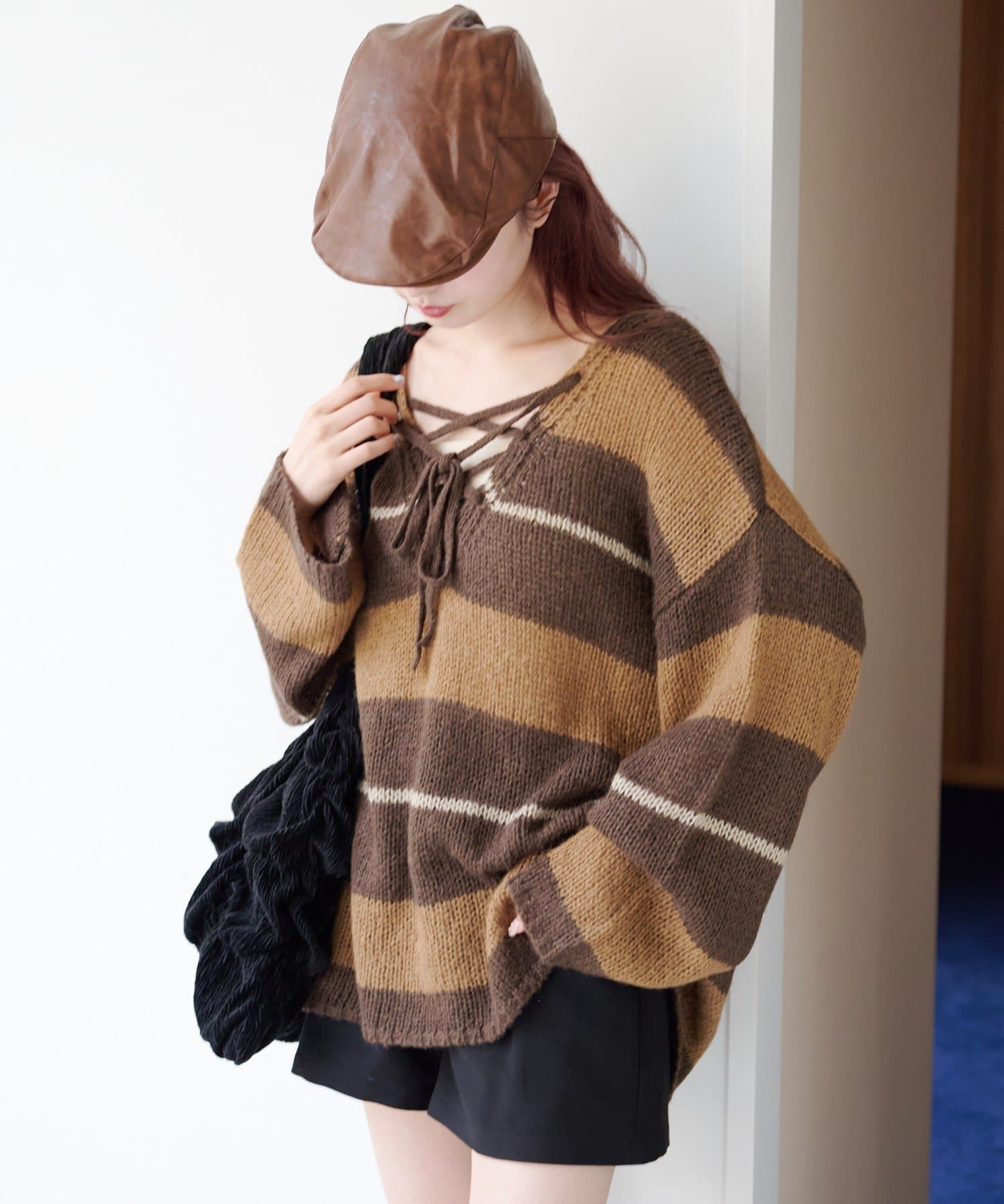 一枚でこなれ感が出るゆるレースアップニット