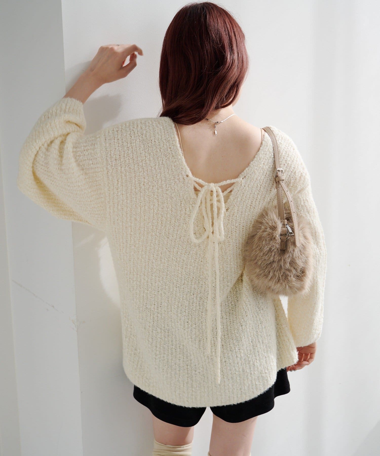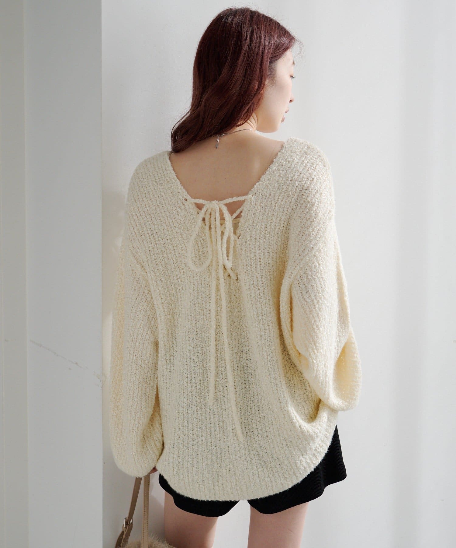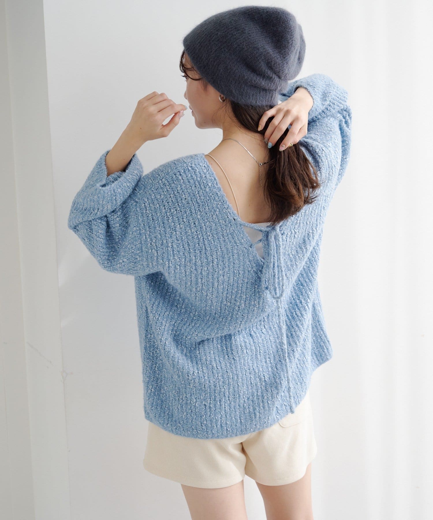 一枚でこなれ感が出るゆるレースアップニット