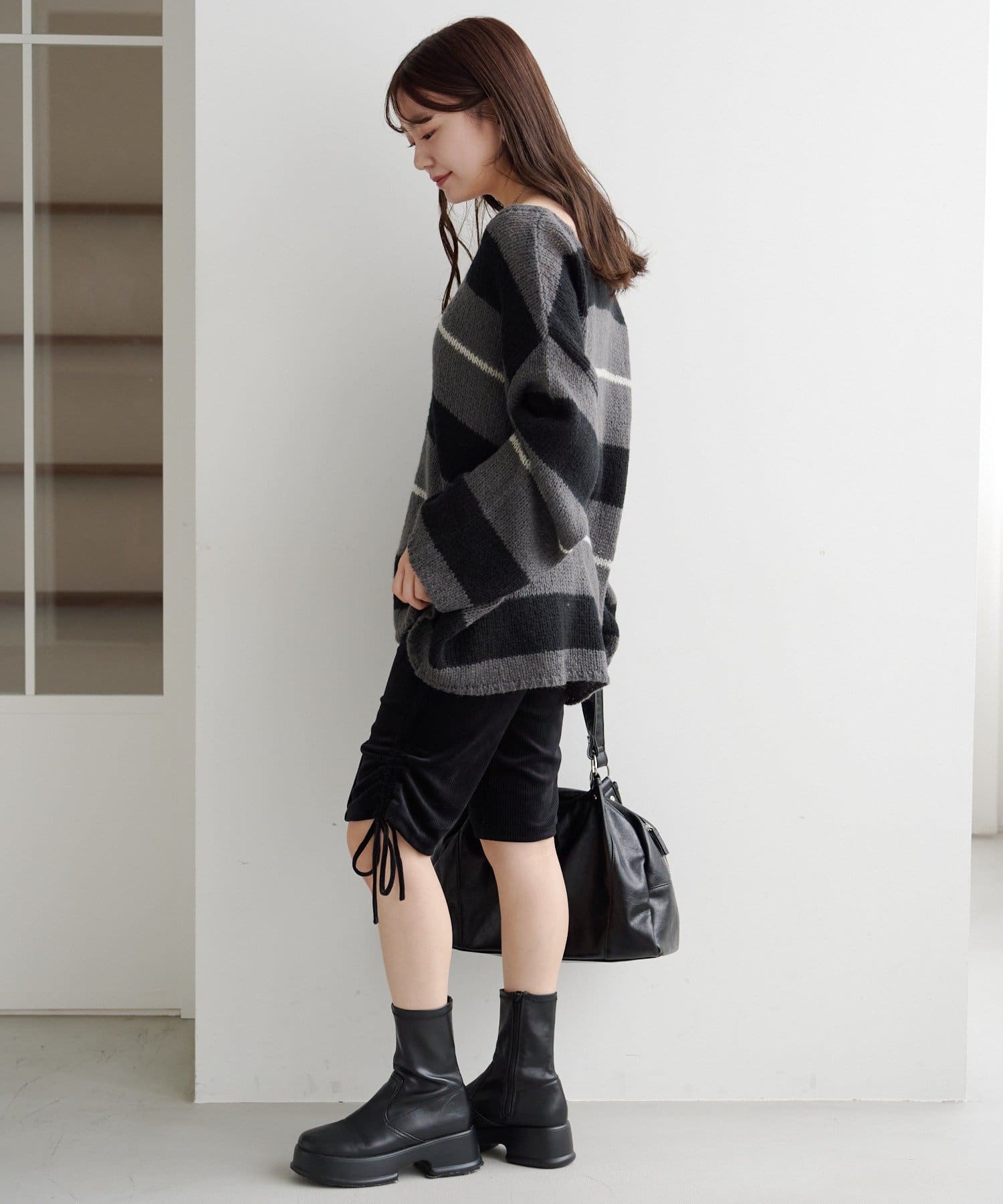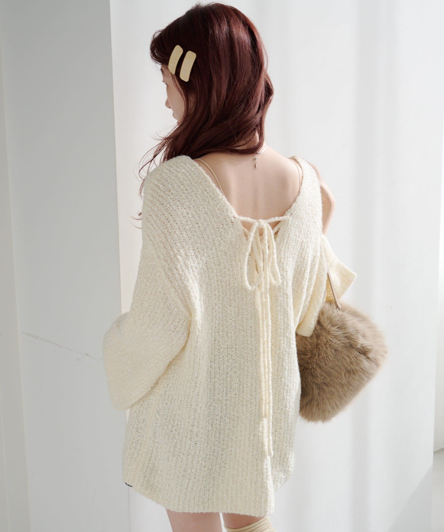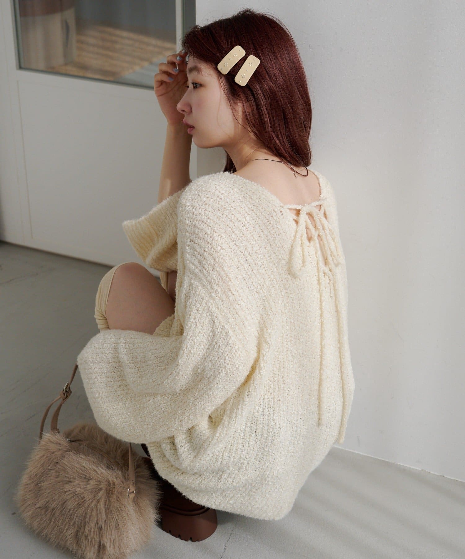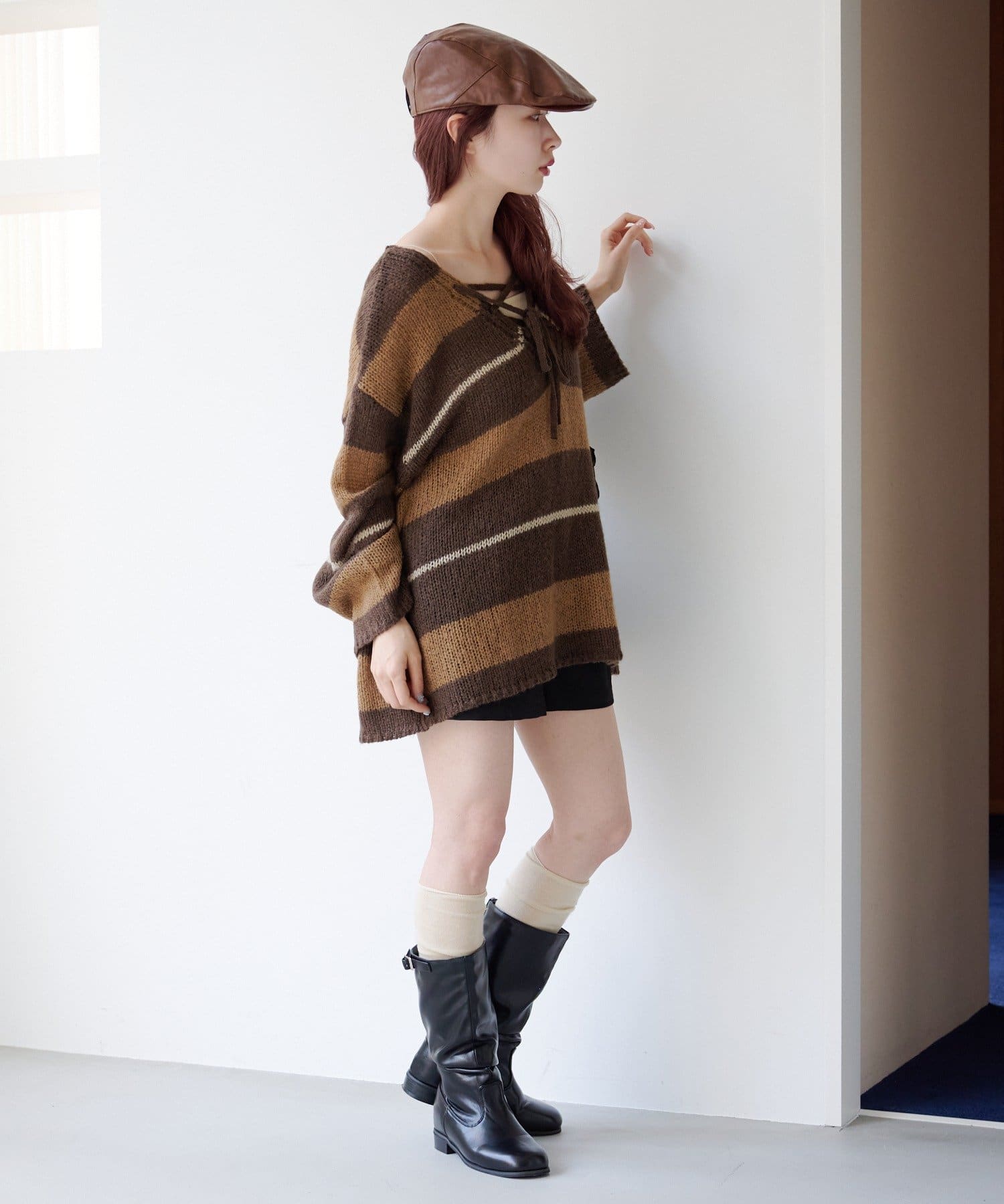 一枚でこなれ感が出るゆるレースアップニット