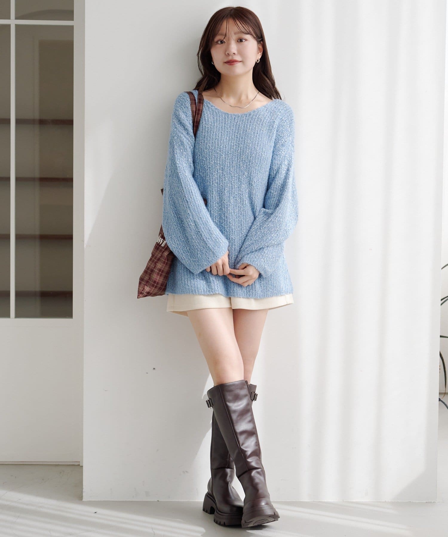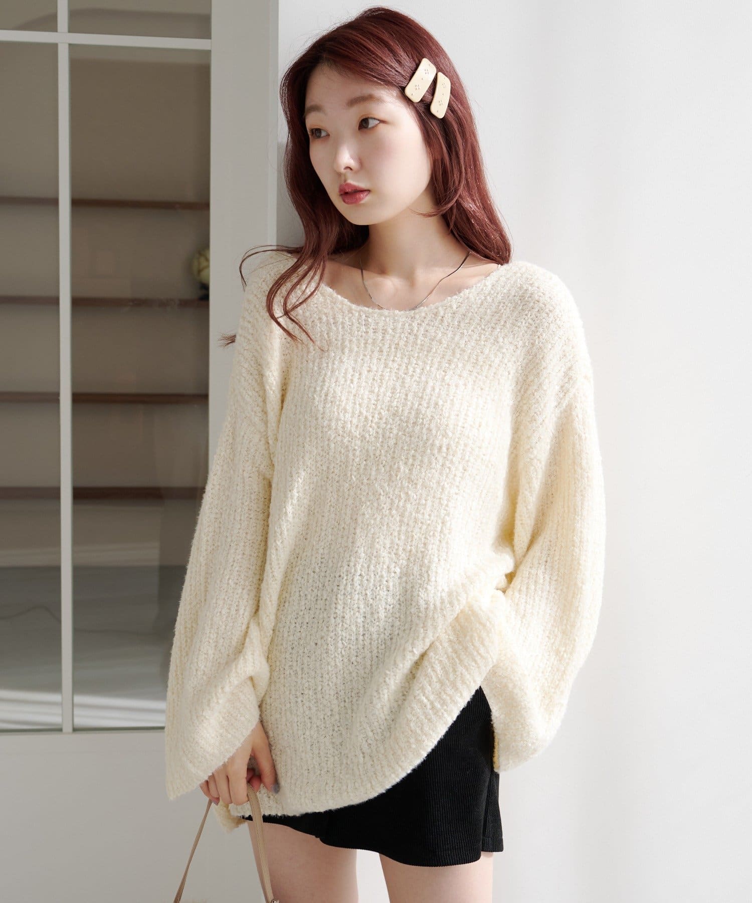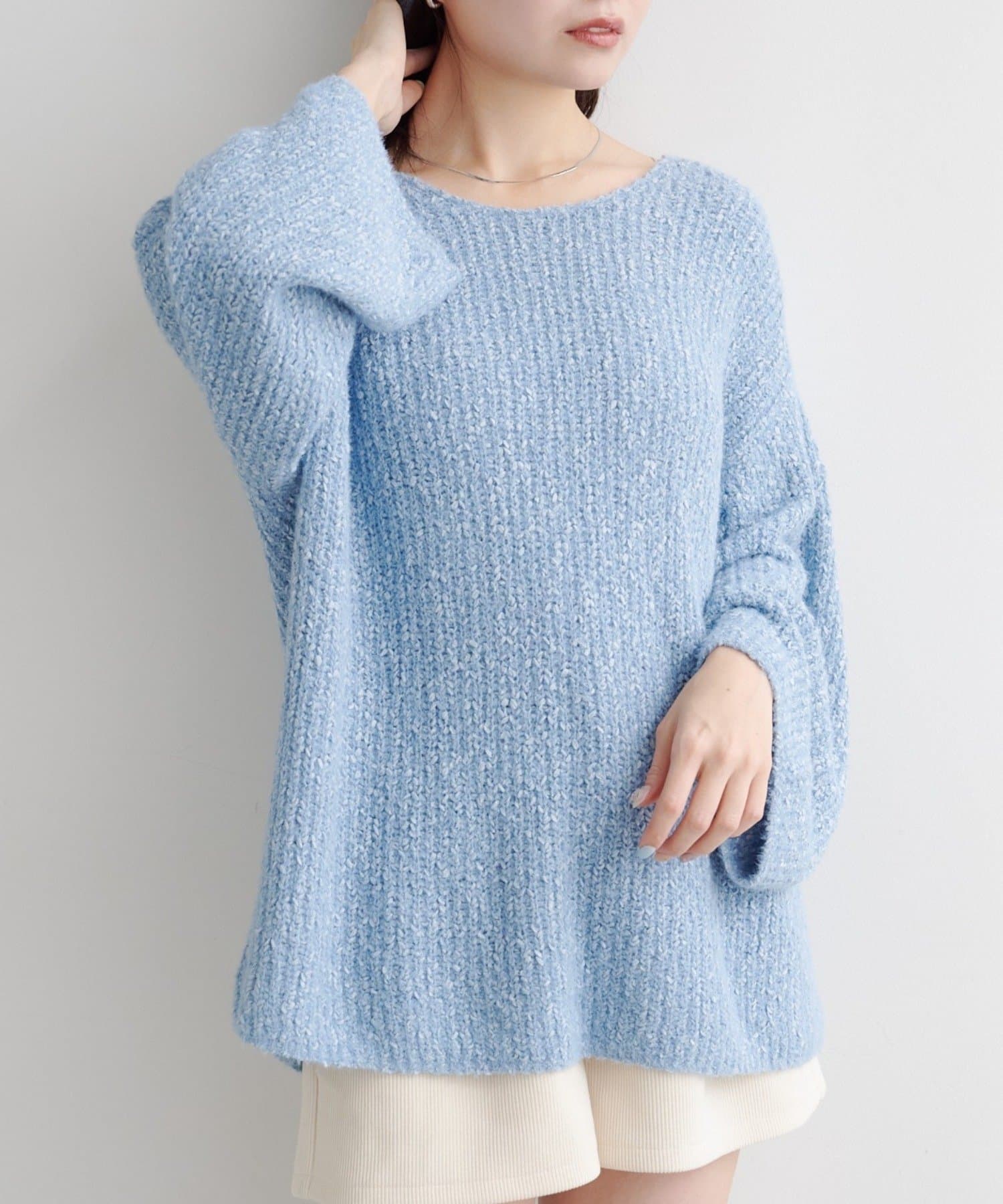 柔らかくて軽い編地が体をふんわり包み込み、リラクシーなのにこなれて見えるのがポイント。