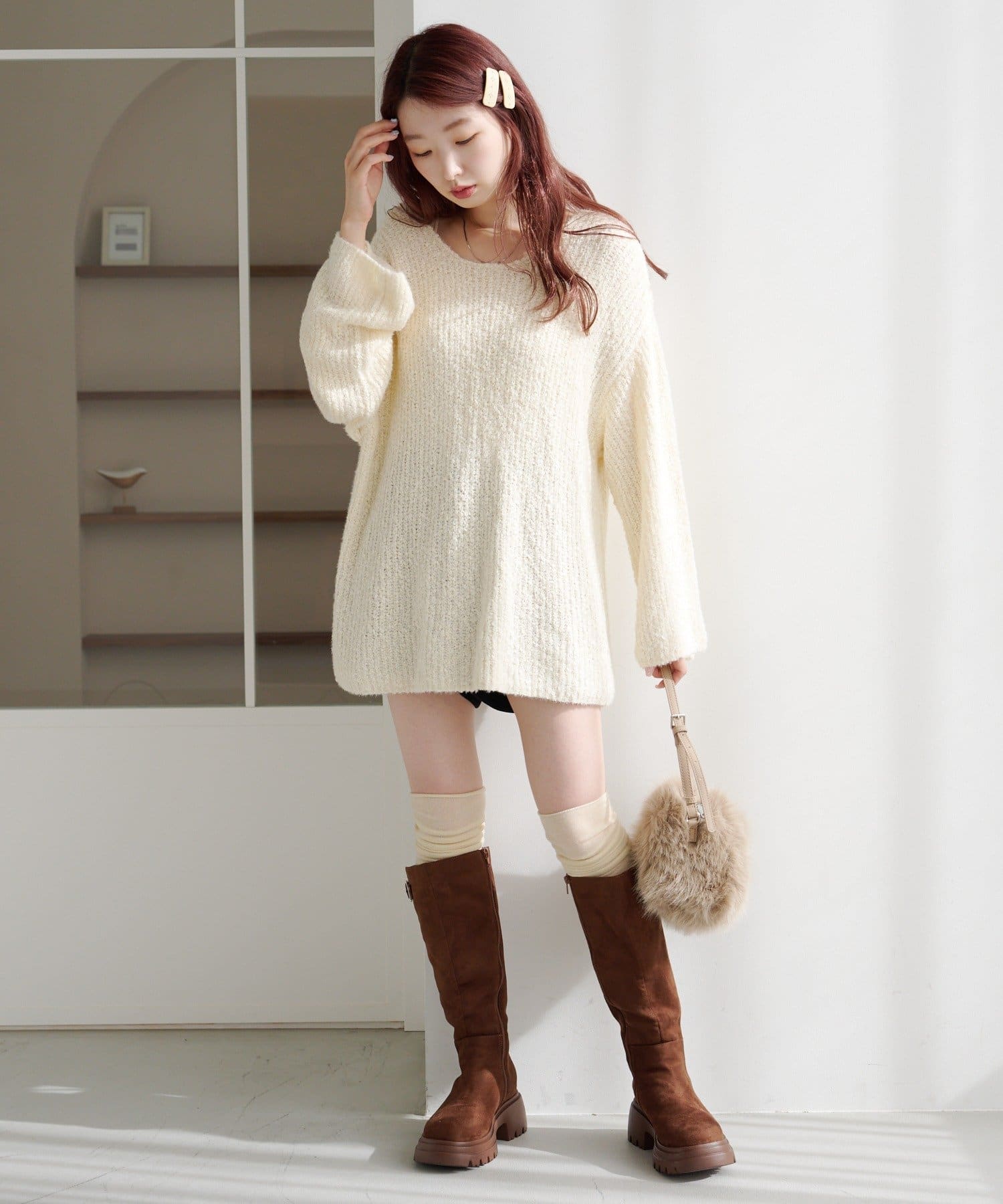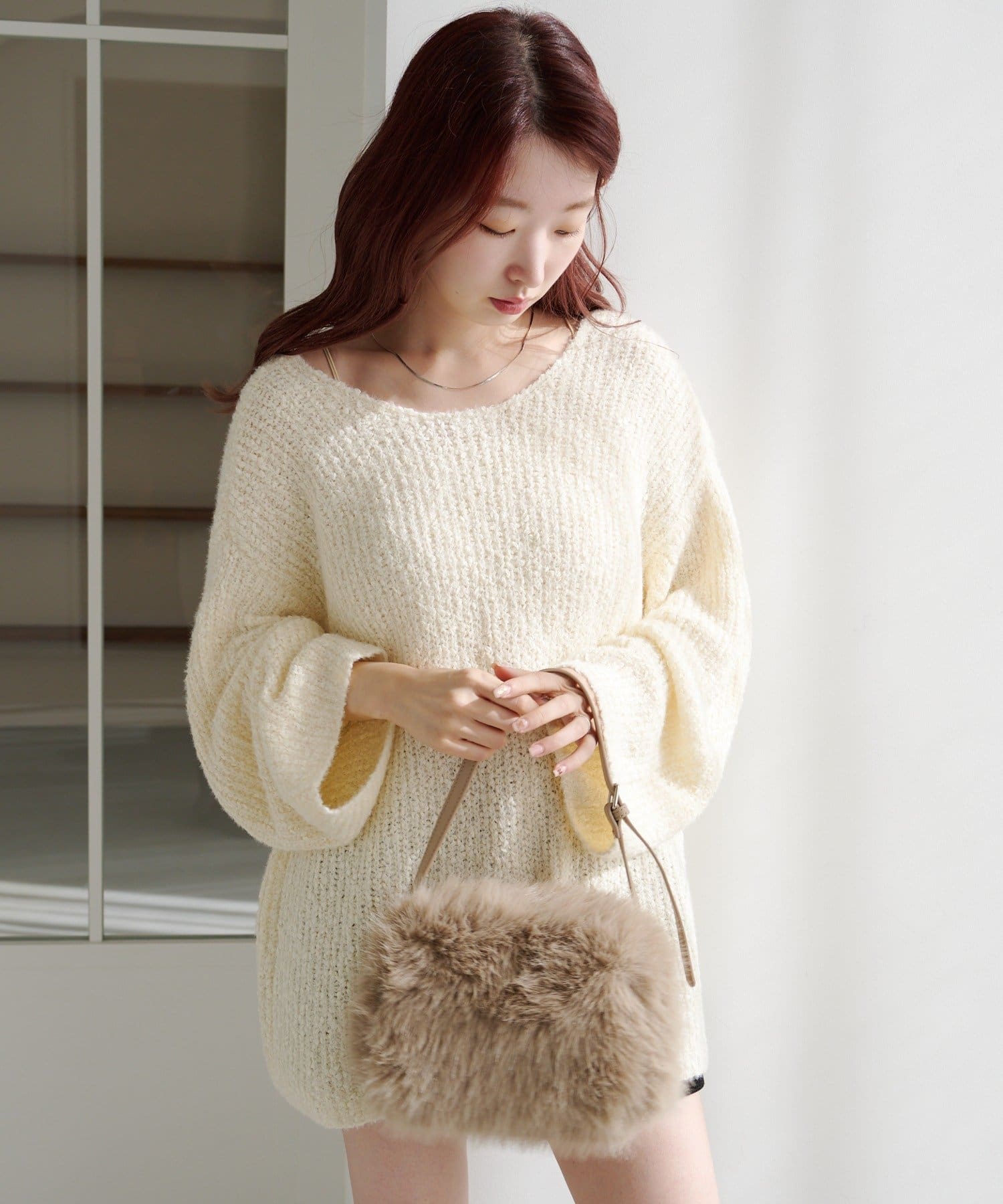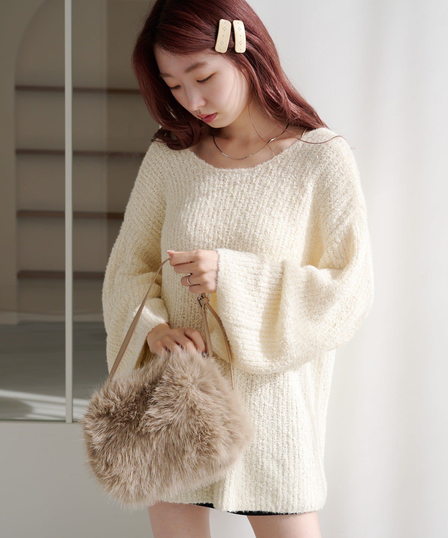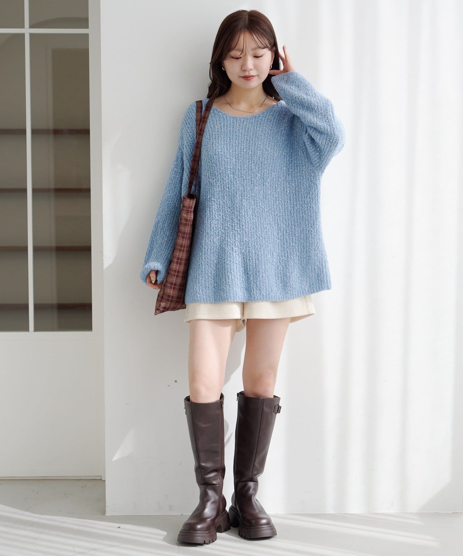柔らかくて軽い編地が体をふんわり包み込み、リラクシーなのにこなれて見えるのがポイント。