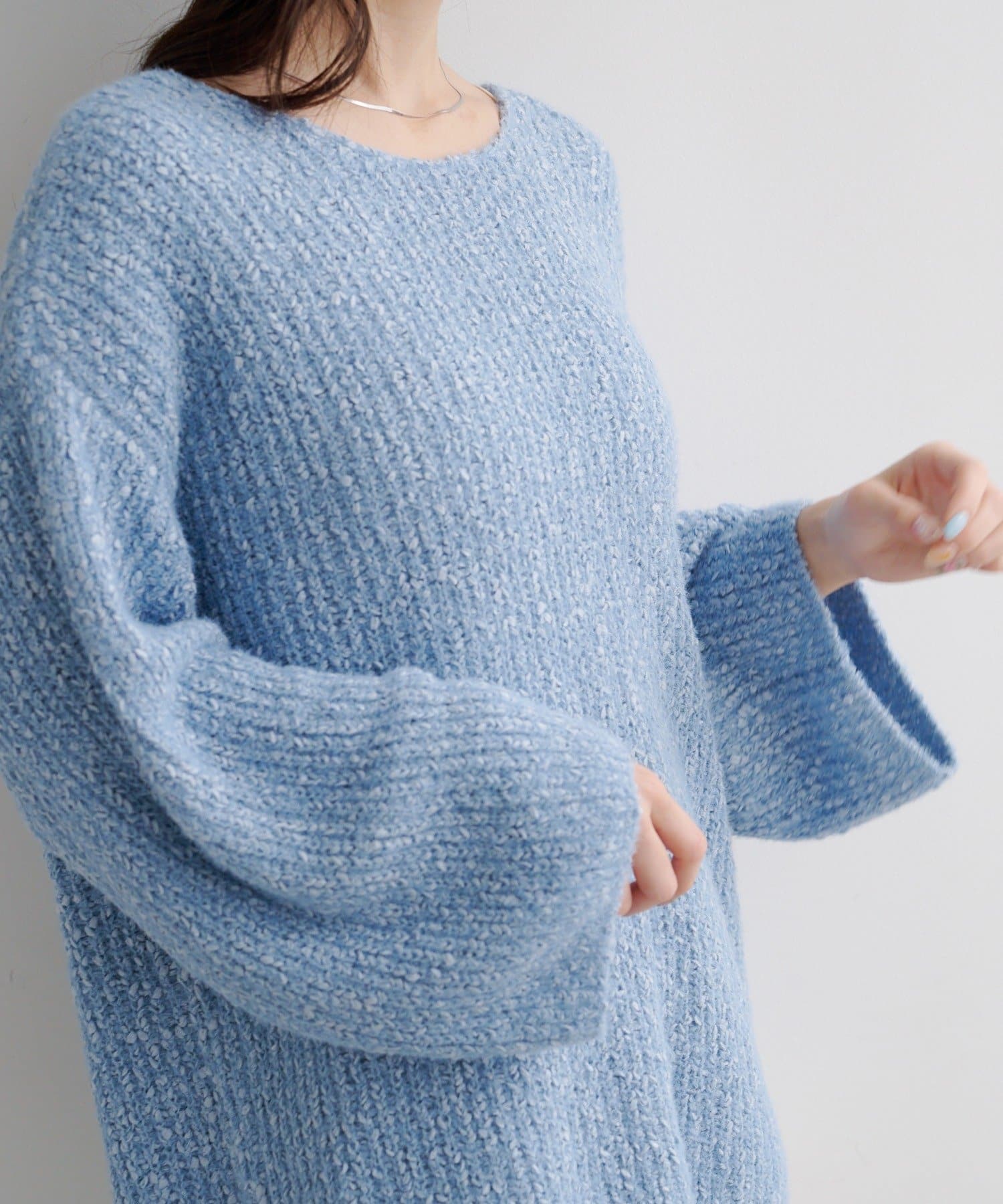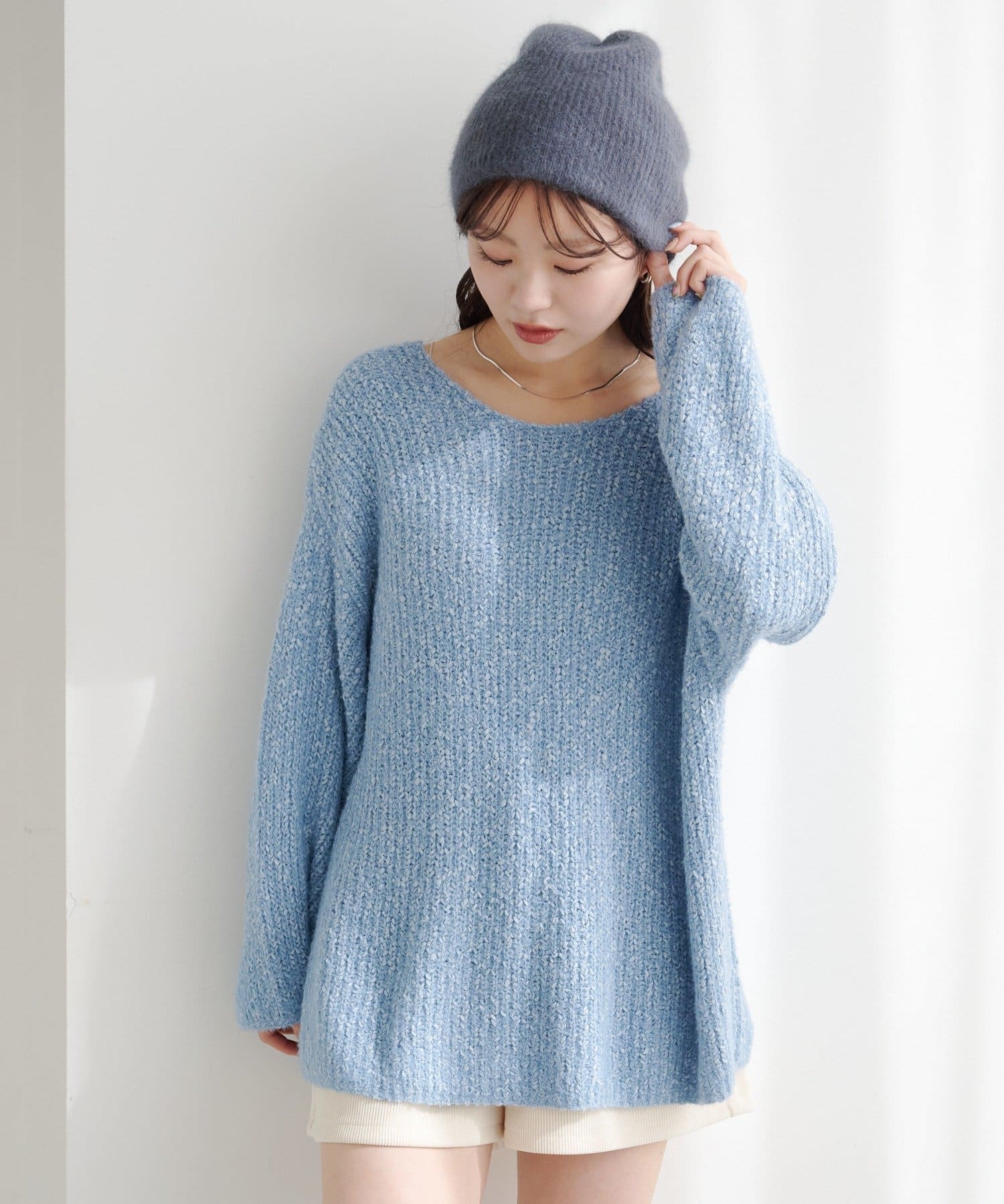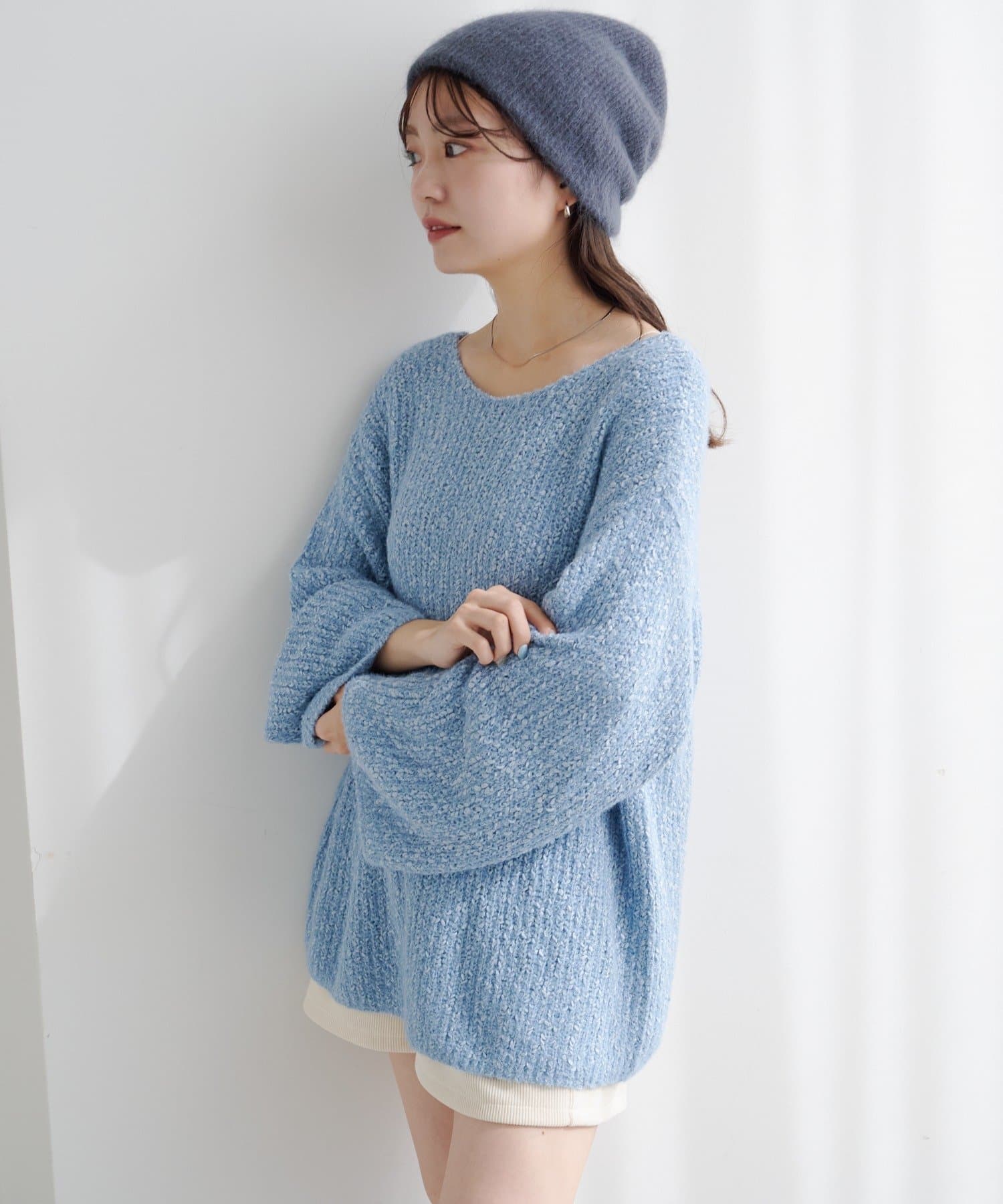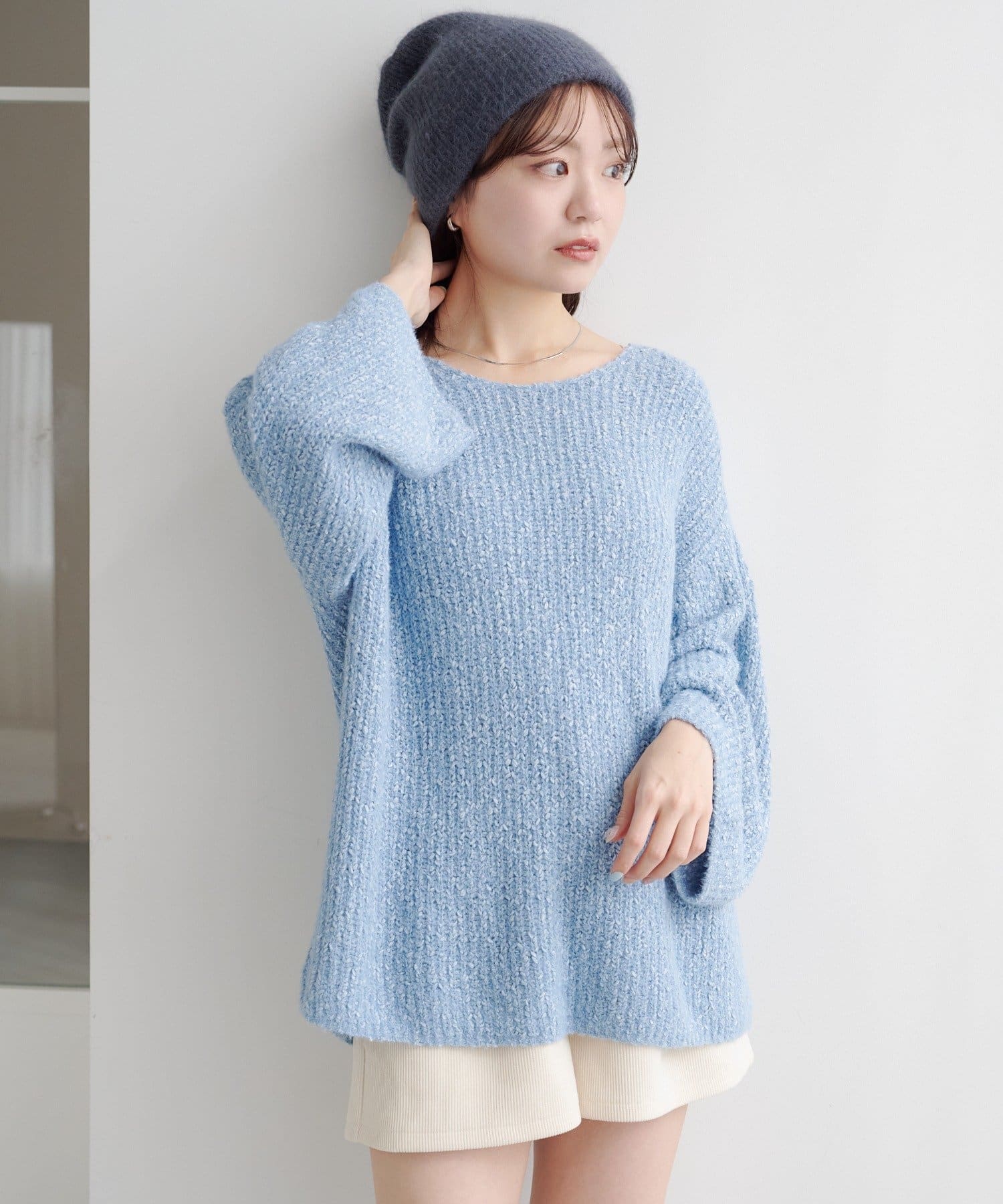デニムやスラックスはもちろん、ロングスカートと合わせてゆる×ゆるバランスも可愛い、一枚で主役になるニットです。