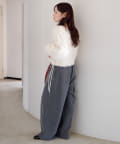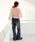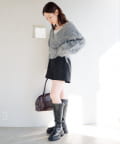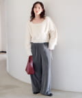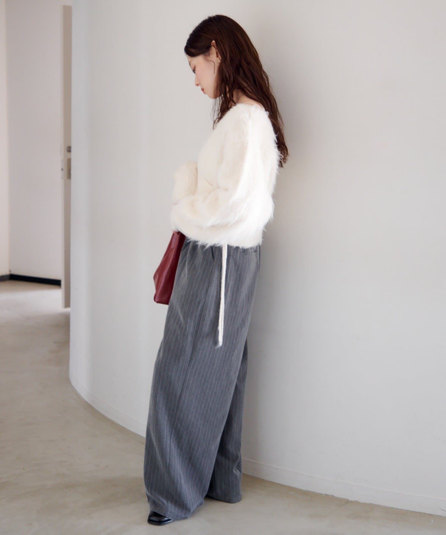ワイドデニムを合わせて、ふわふわ素材を大人カジュアルに引き締める着こなしに。