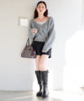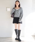 ミニスカート×ロングブーツで、抜け感と華やかさを両立した韓国ガール風スタイルに仕上がります。