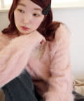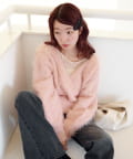 毛足のあるふわふわシャギーニットで触れるとしっとり柔らかい風合いです。