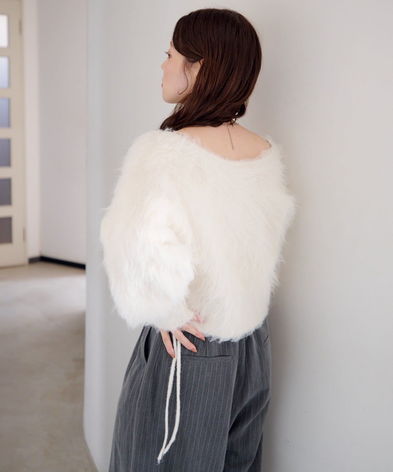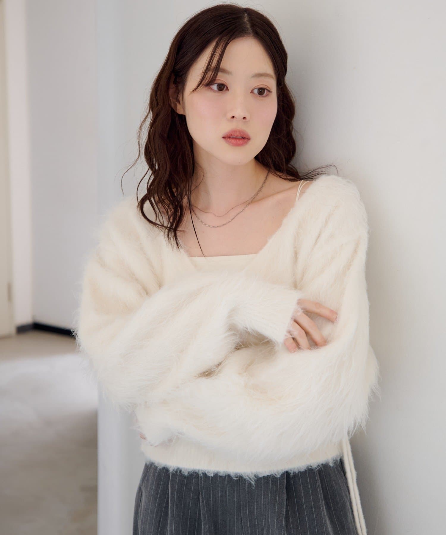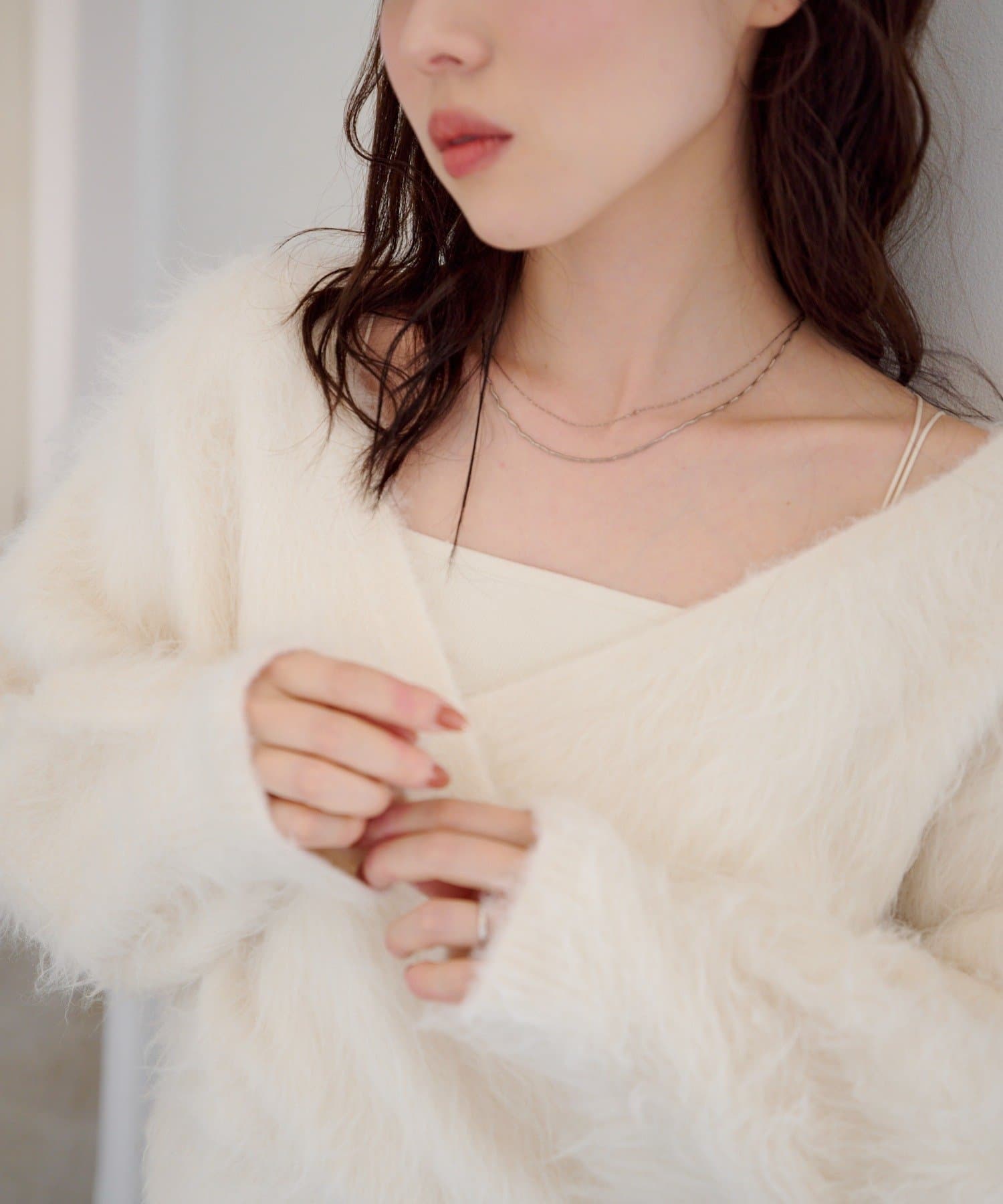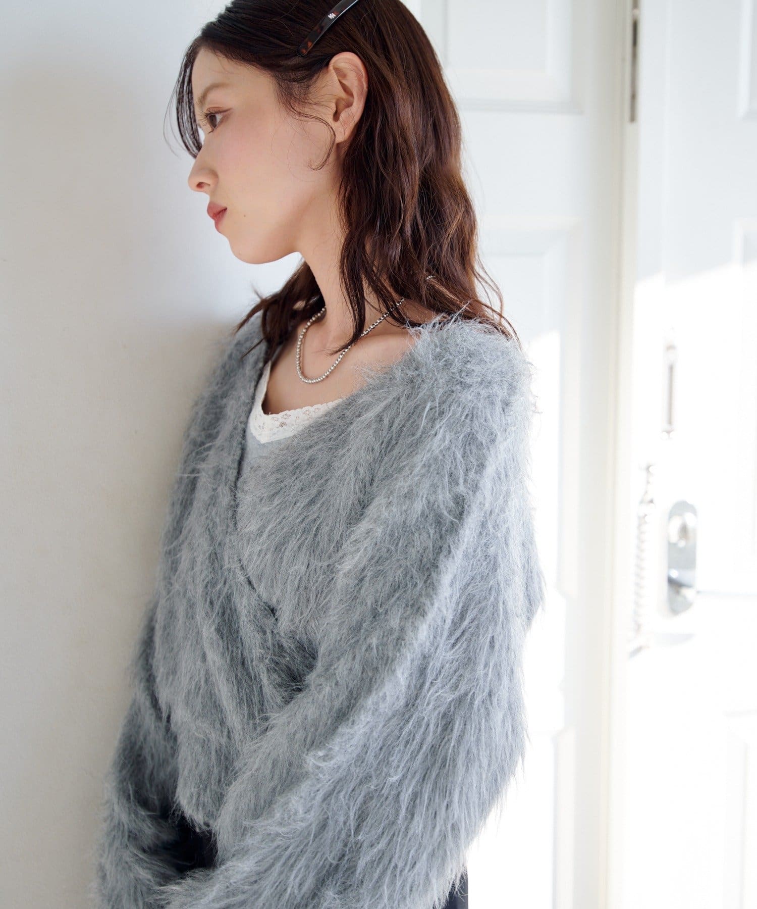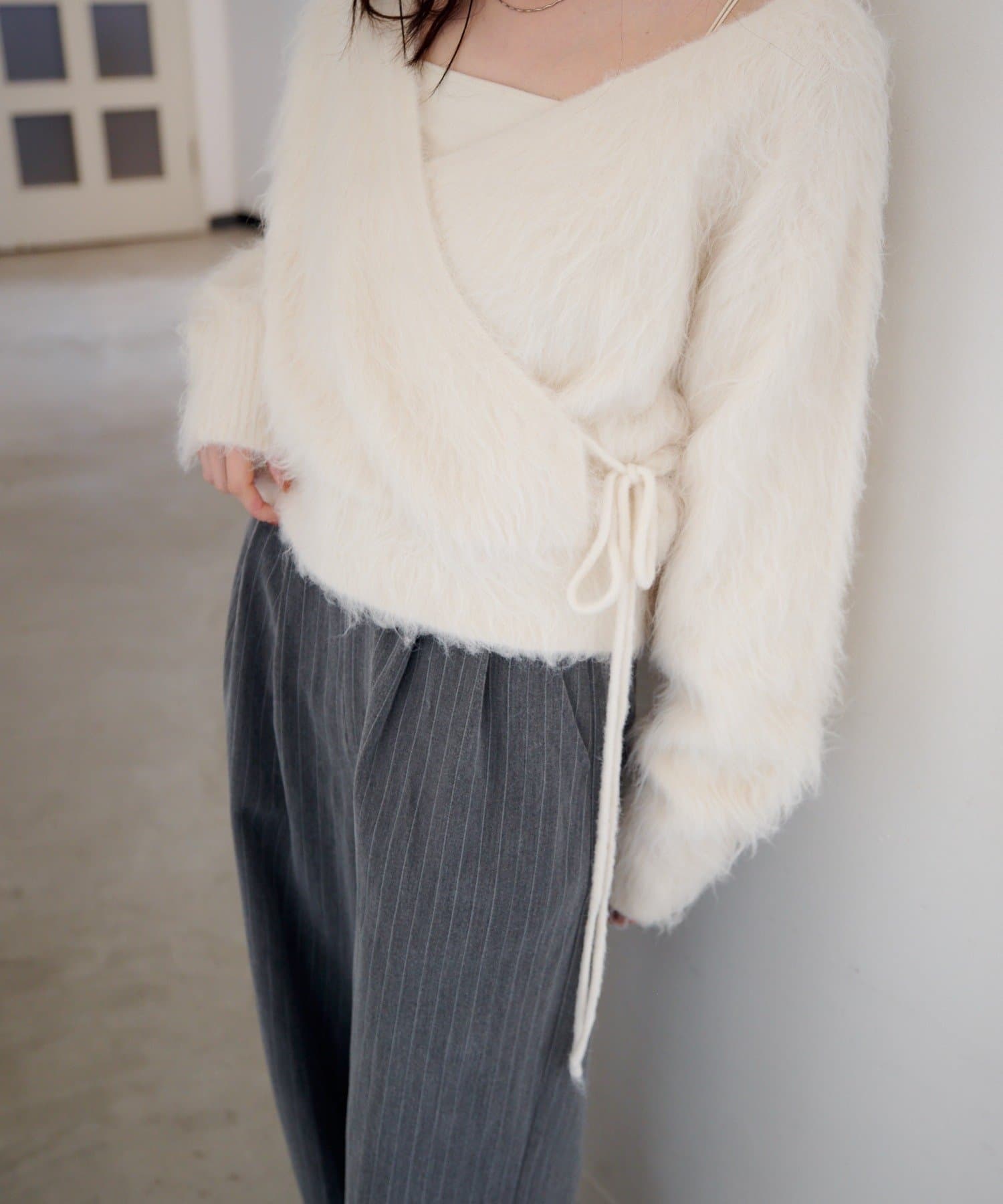 ふわふわのシャギー素材を贅沢に使った、華やかさ抜群のカシュクールニット。
