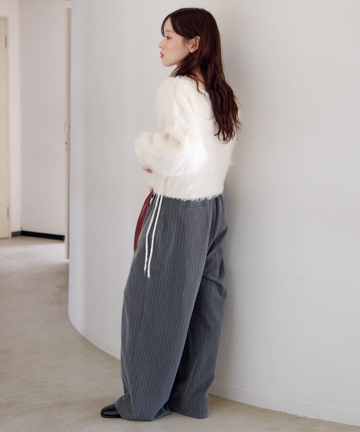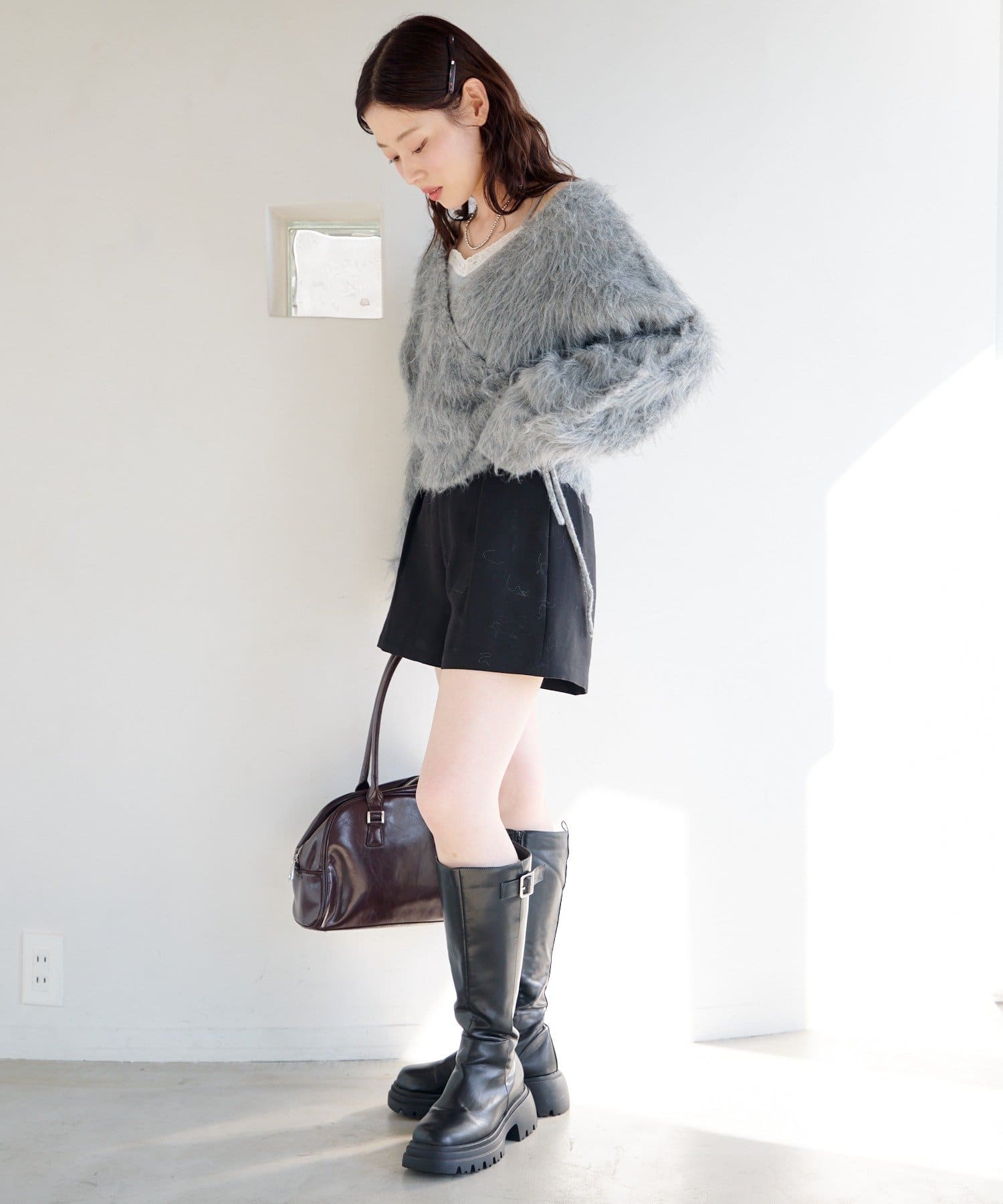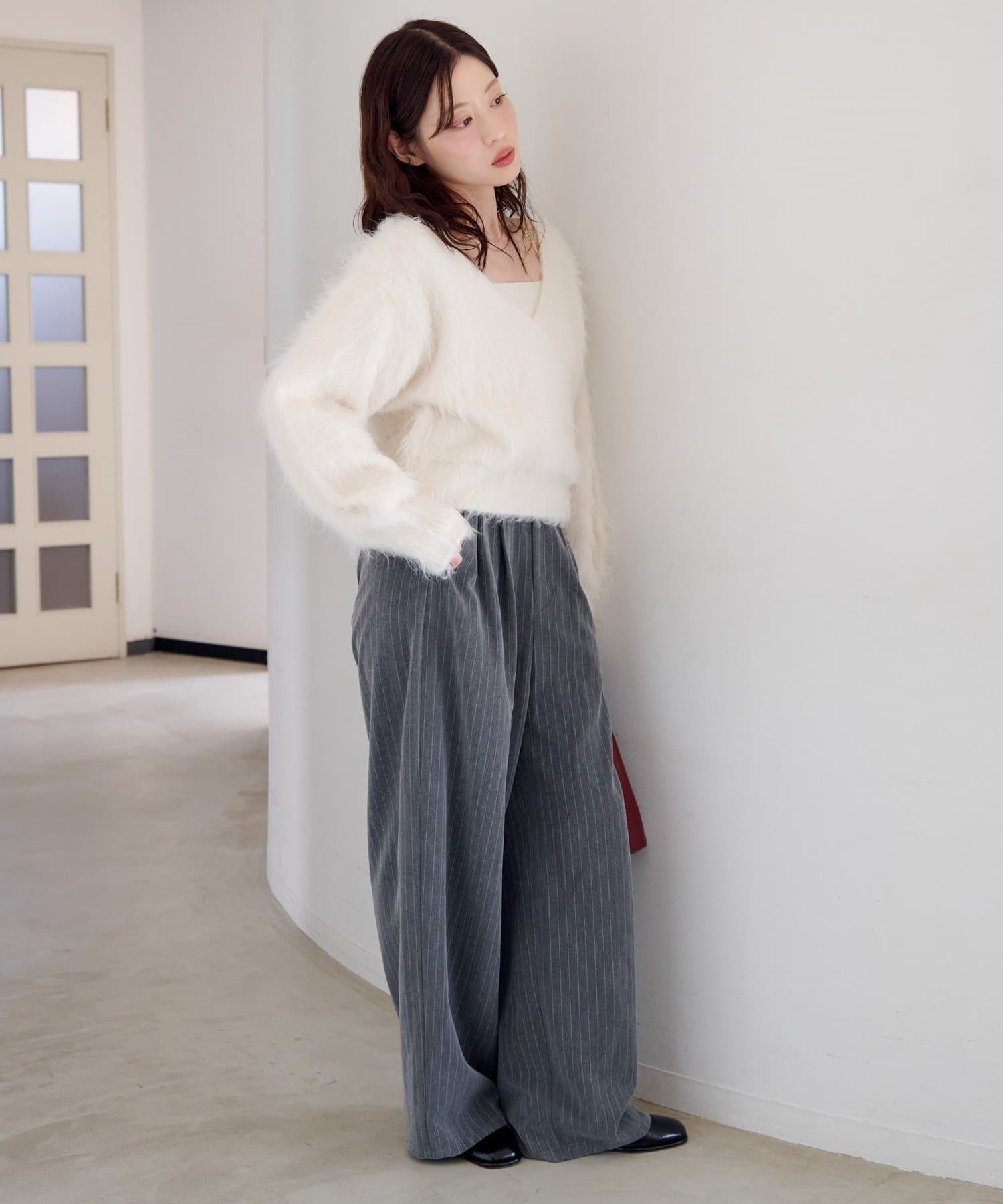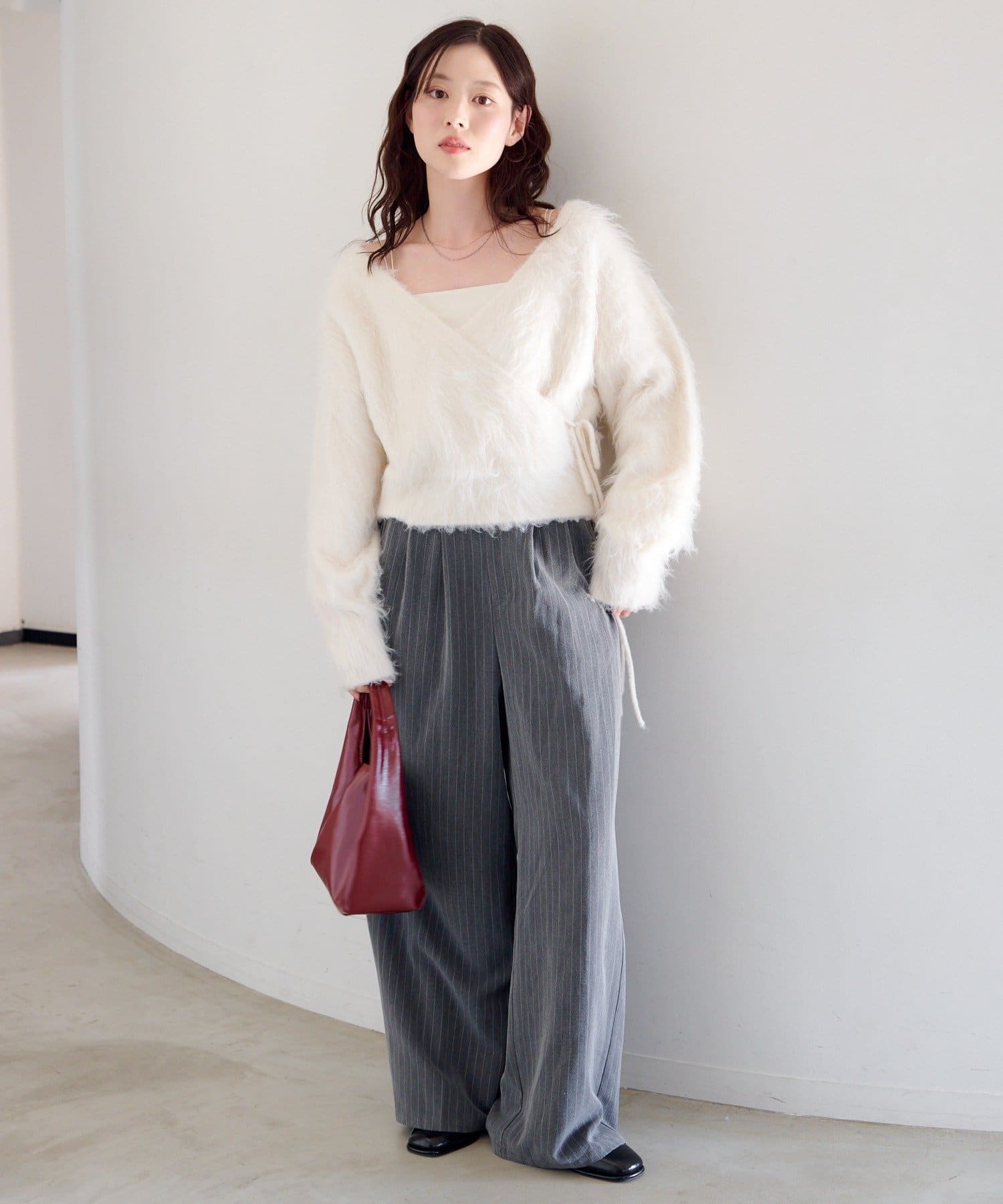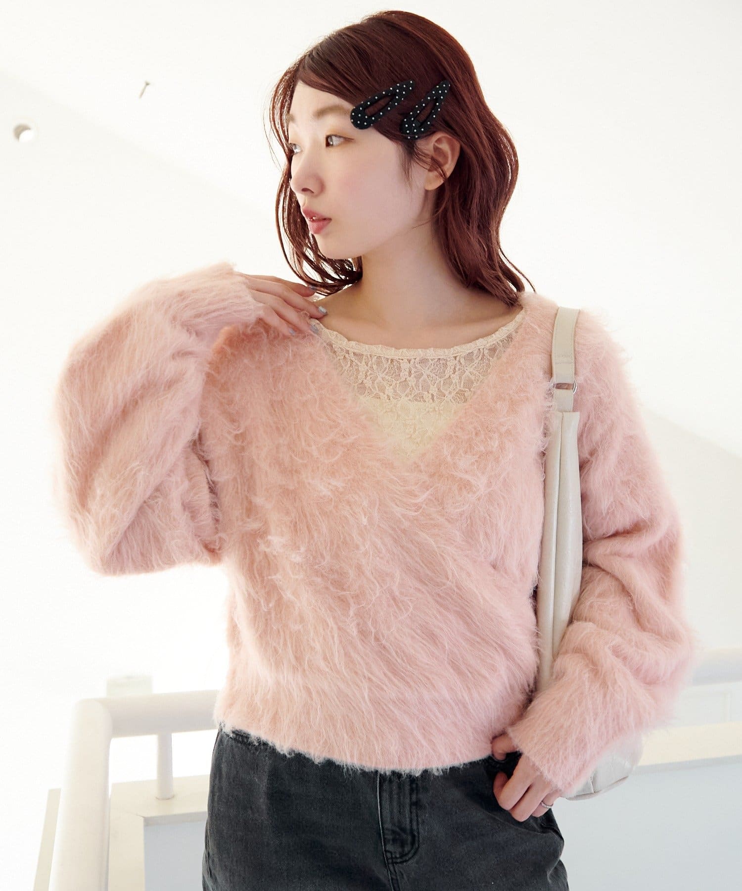 ふわふわのシャギー素材を贅沢に使った、華やかさ抜群のカシュクールニット。
