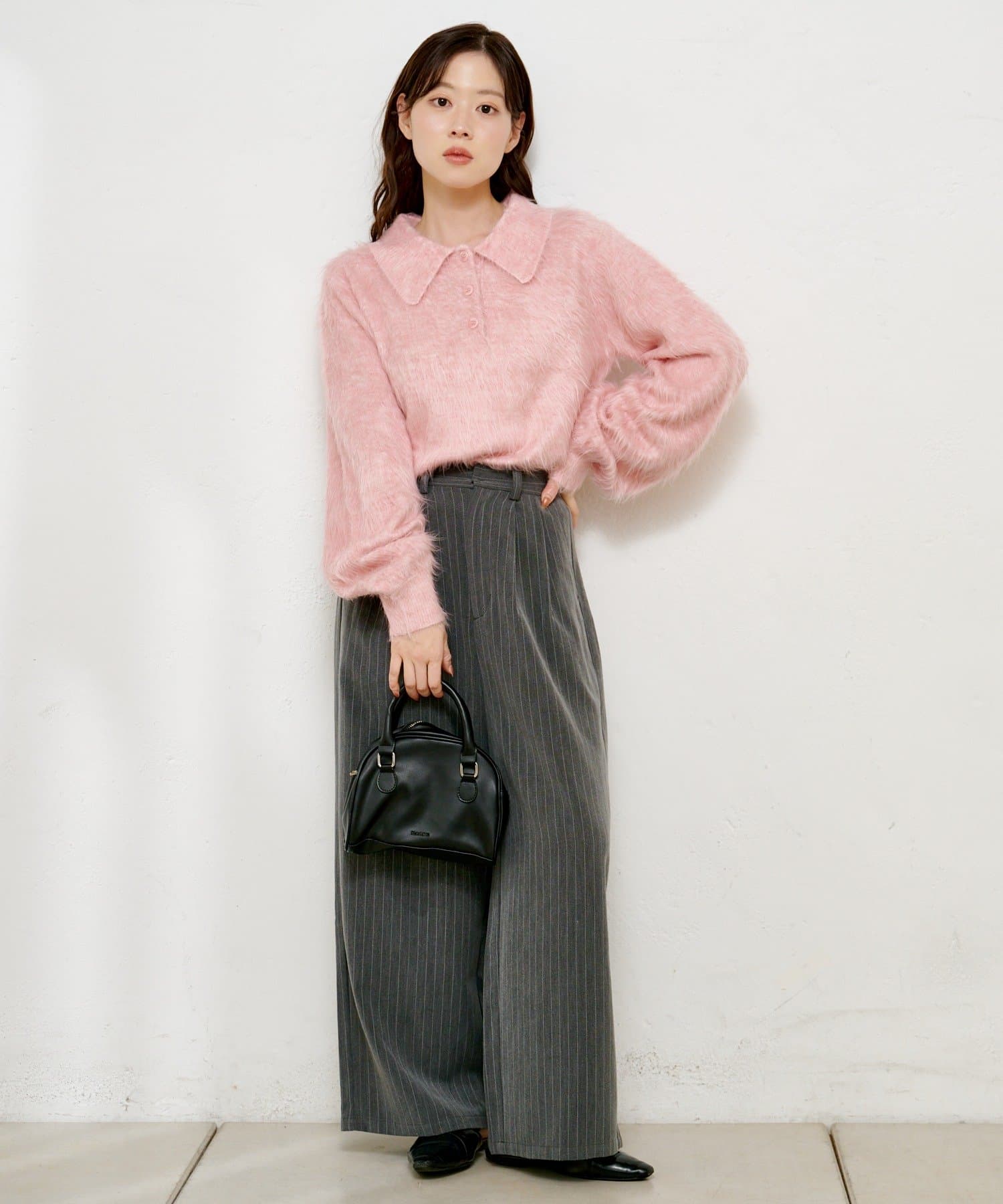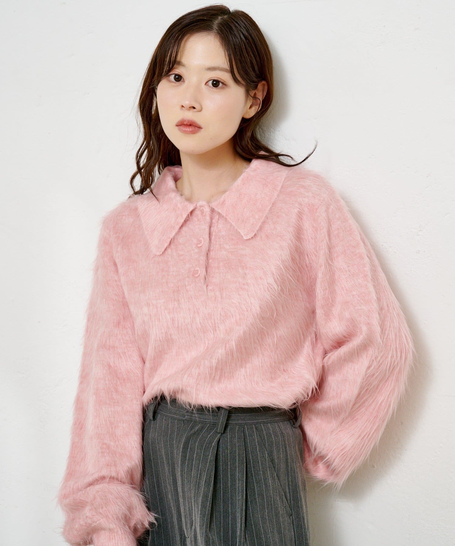 大きめの襟とゆったりしたシルエットが、甘さの中に大人っぽいニュアンスを添えてくれます。