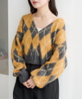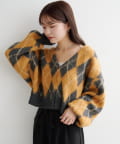 ふんわりとした起毛感が魅力のアーガイルニットカーディガン。