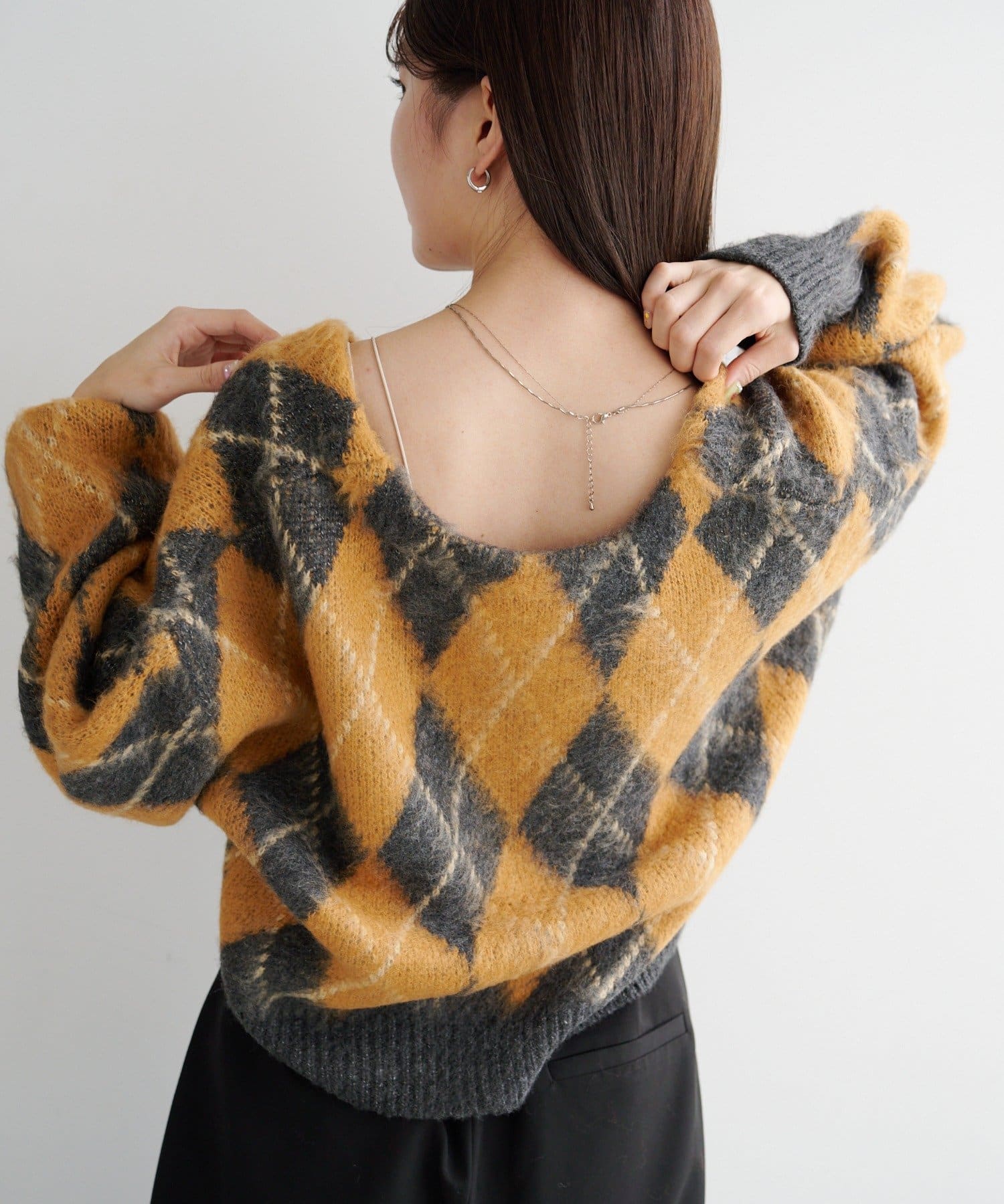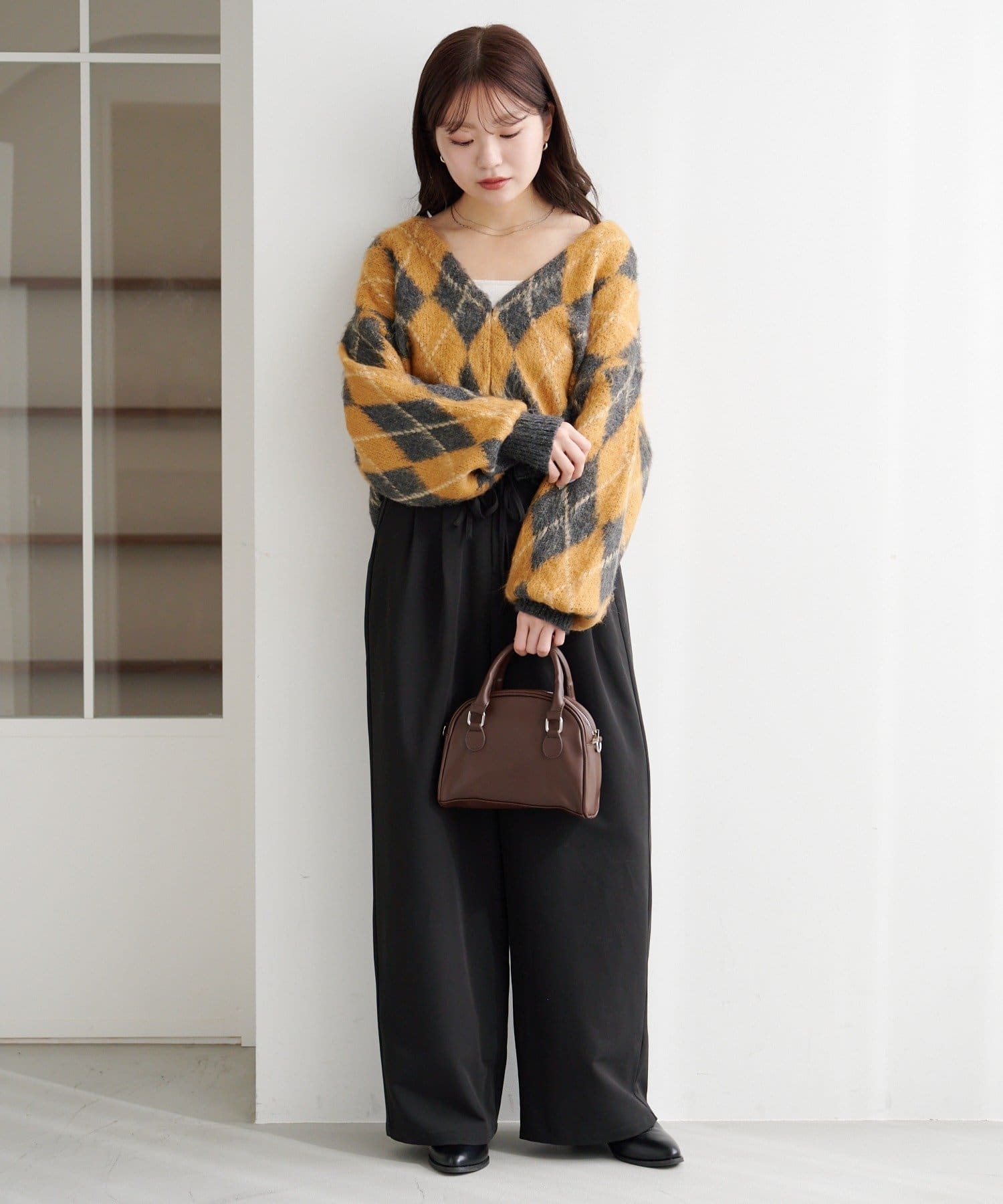大きめアーガイル柄が、冬のスタイリングを一気に華やかに、そして柔らかい印象に仕上げてくれます。