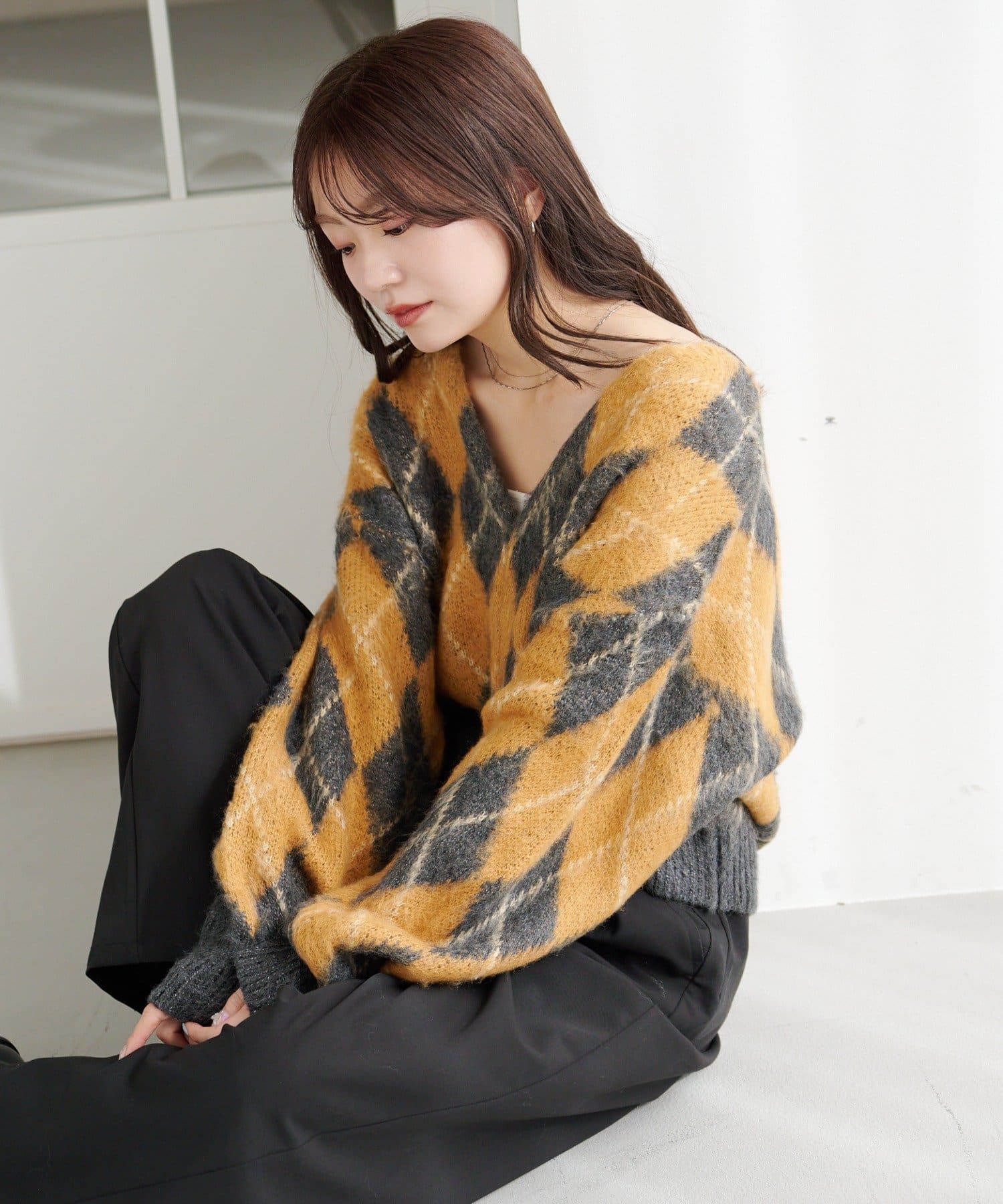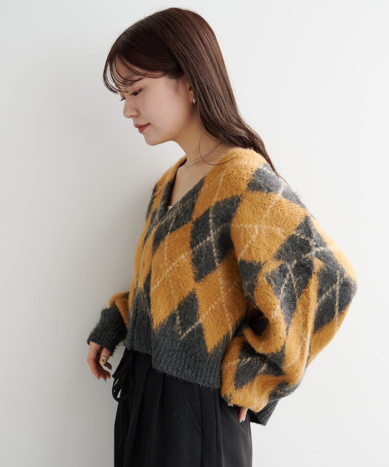 ふんわり起毛感が可愛い、冬の主役アーガイルカーディガン