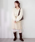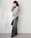 ふわっと包み込まれるようなボリューム感がありながら、Vネックデザインですっきりとした印象に。