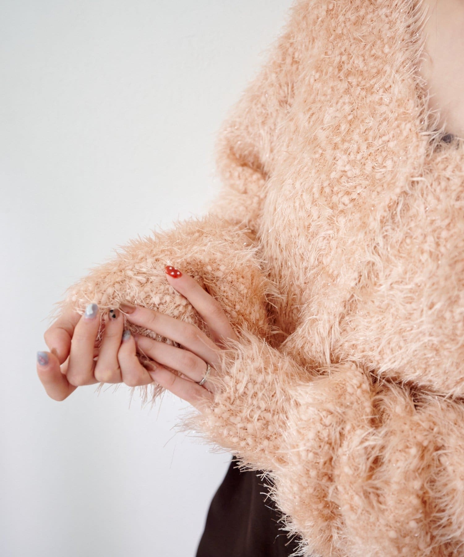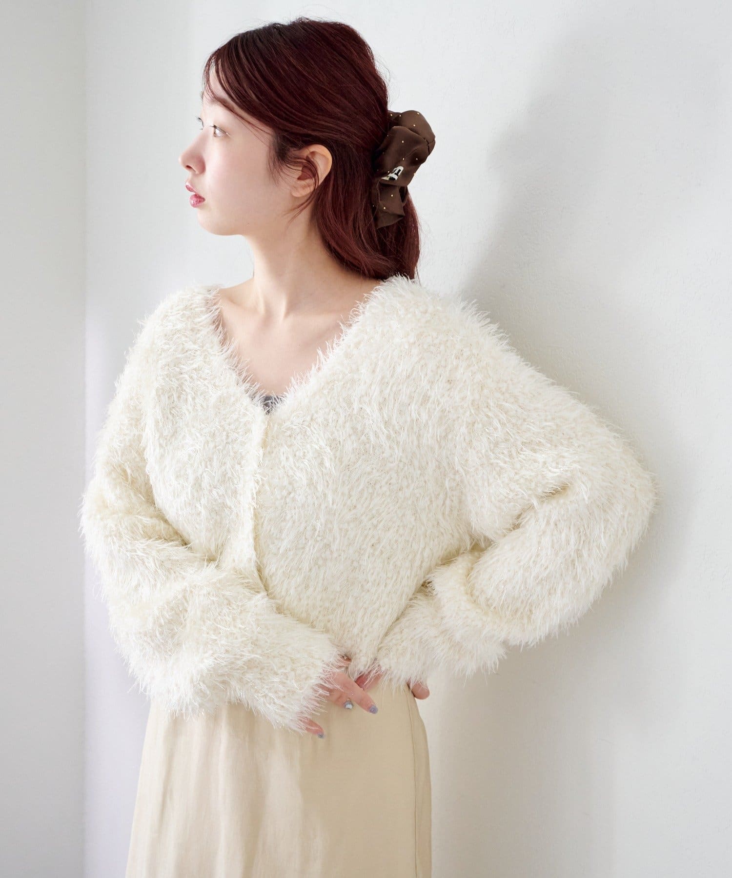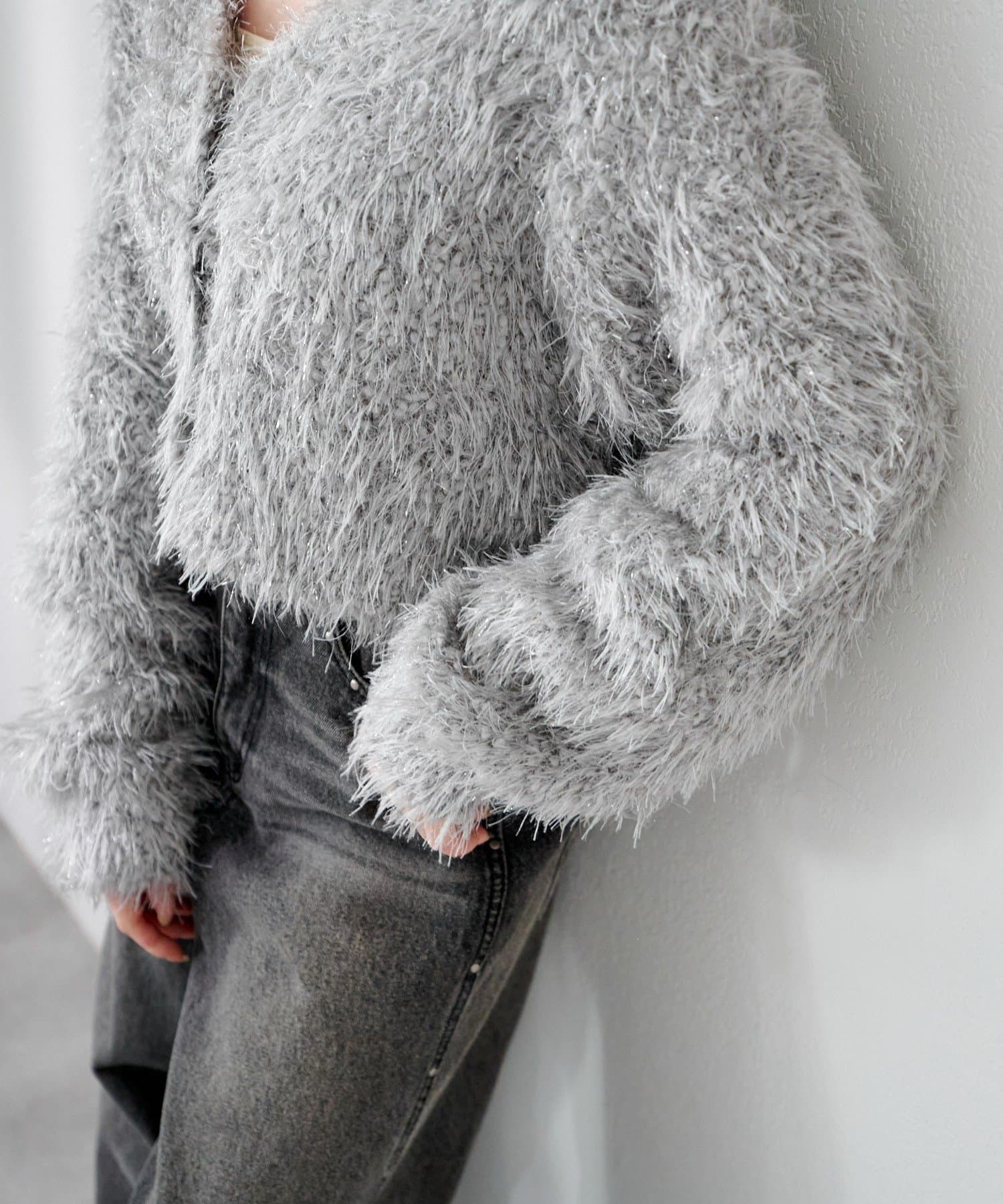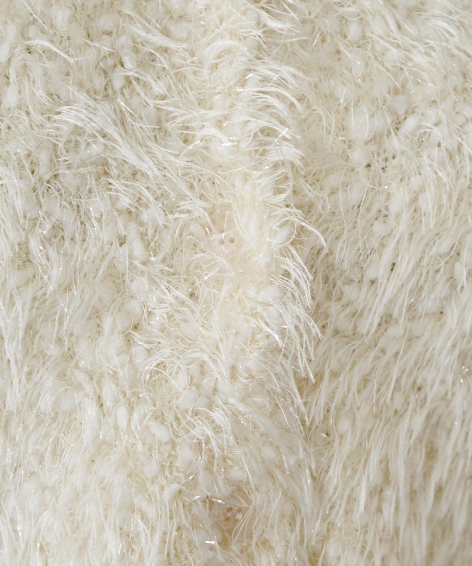 毛足の長いシャギー素材に、ほんのりとした光沢感をプラスしたグロスシャギーニットカーディガン。
