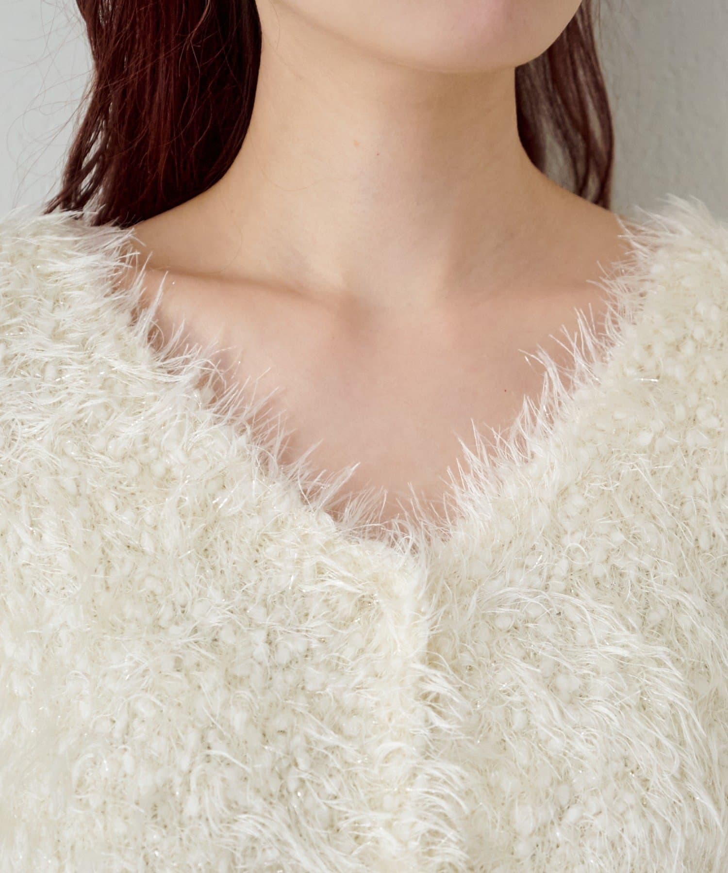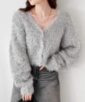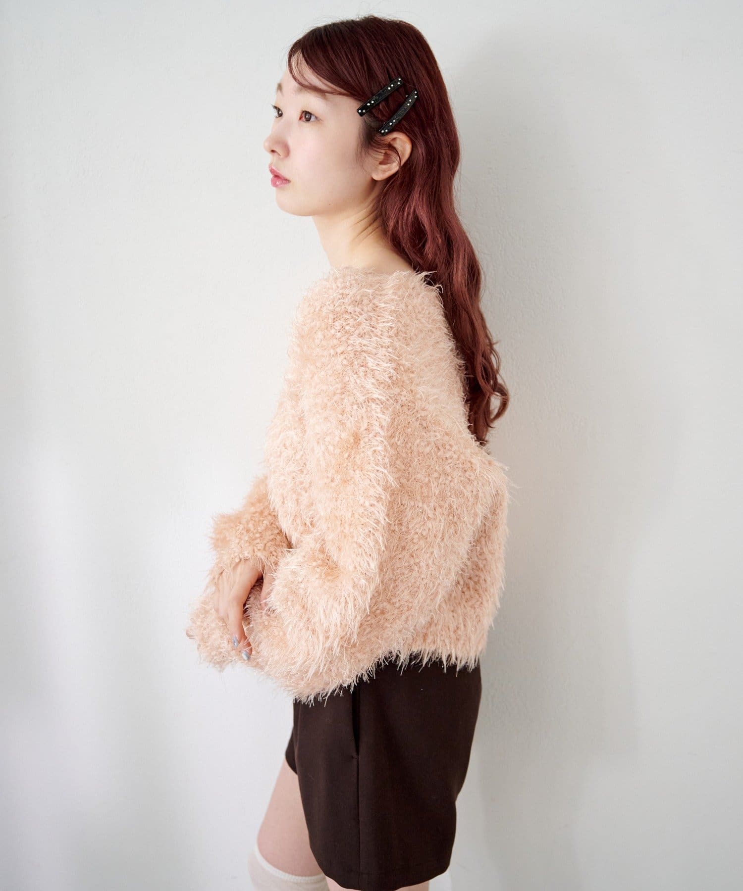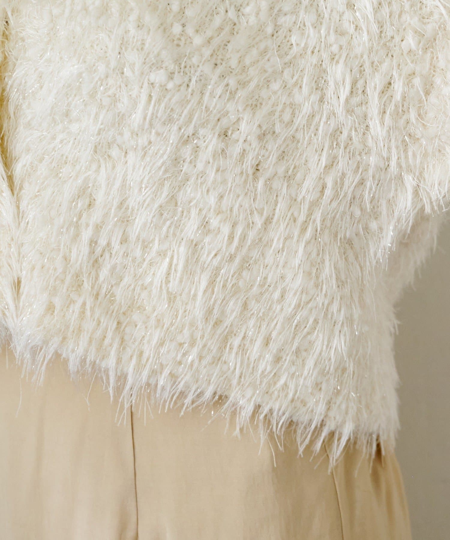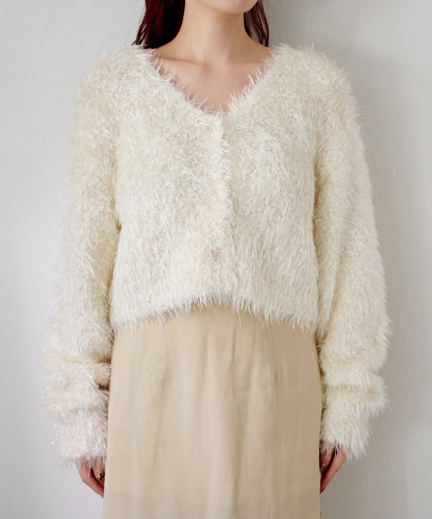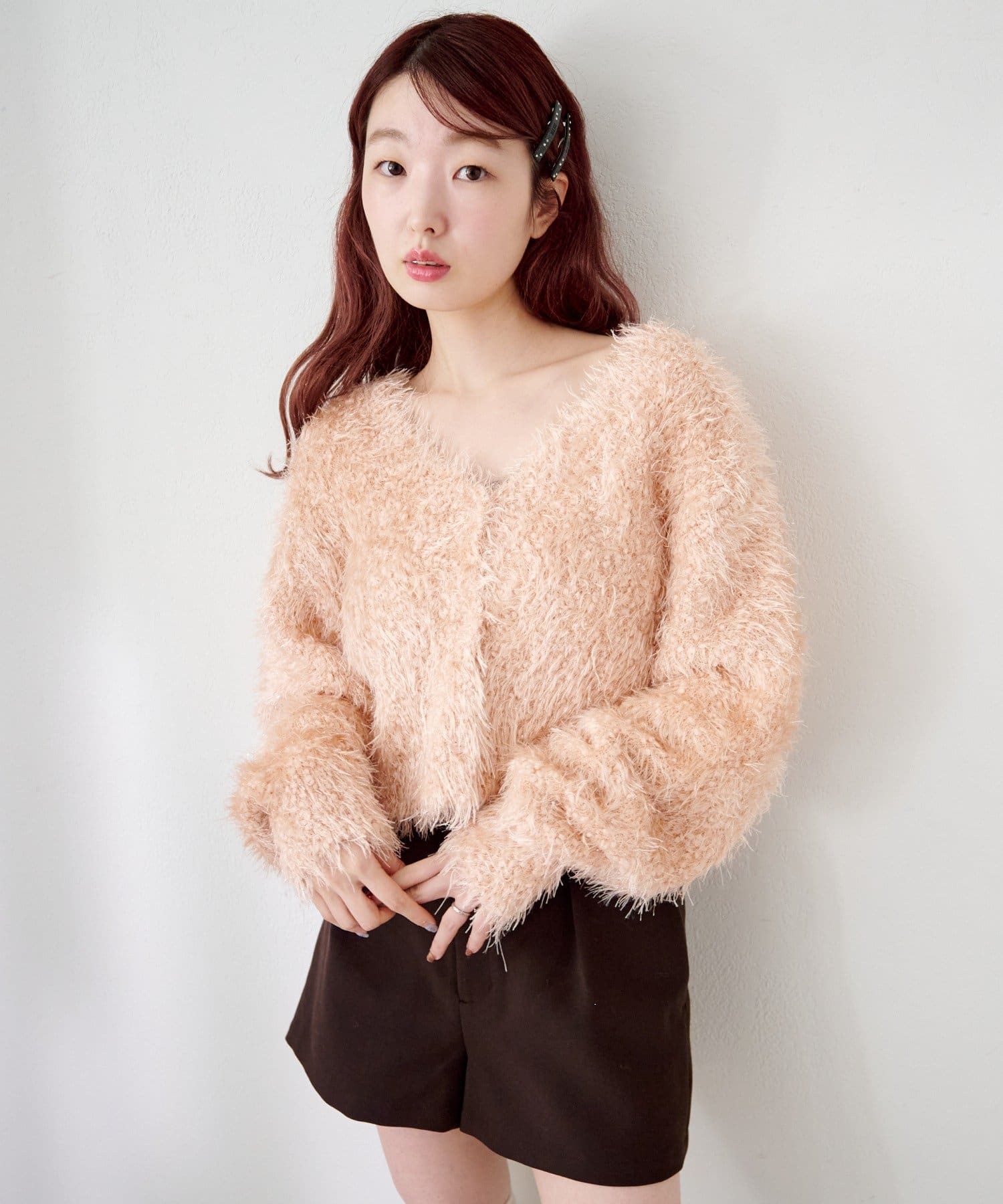 毛足の長いシャギー素材に、ほんのりとした光沢感をプラスしたグロスシャギーニットカーディガン。