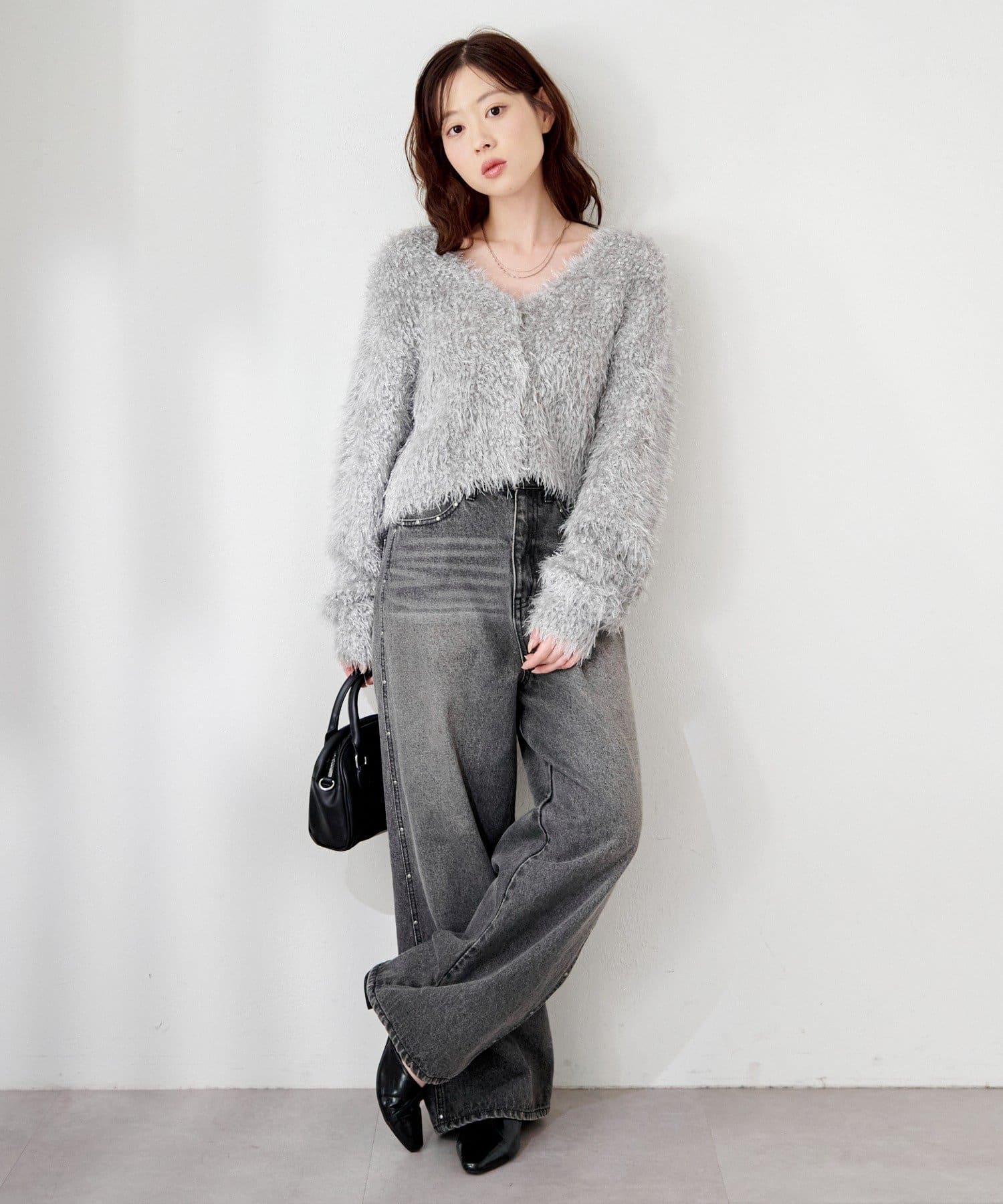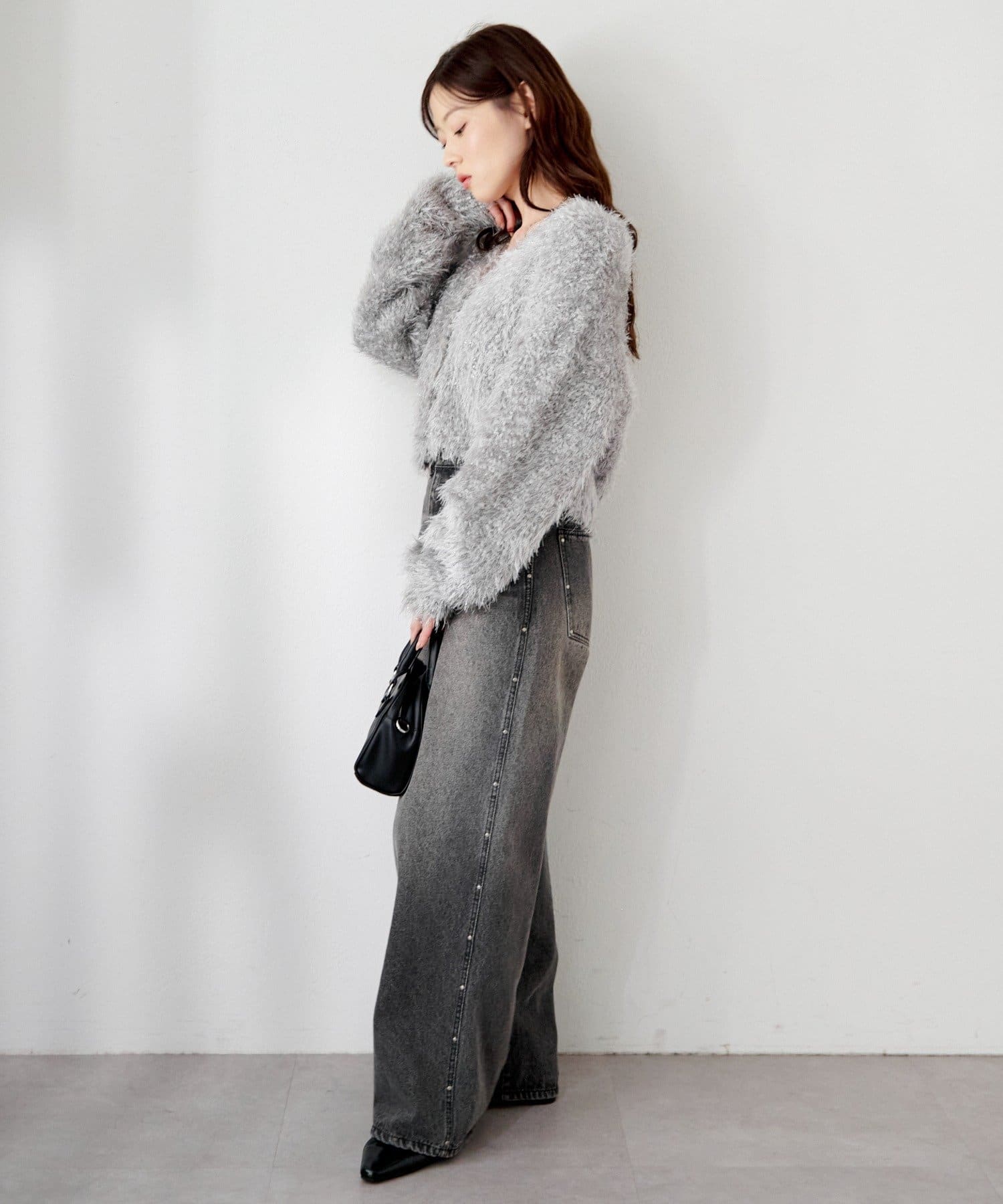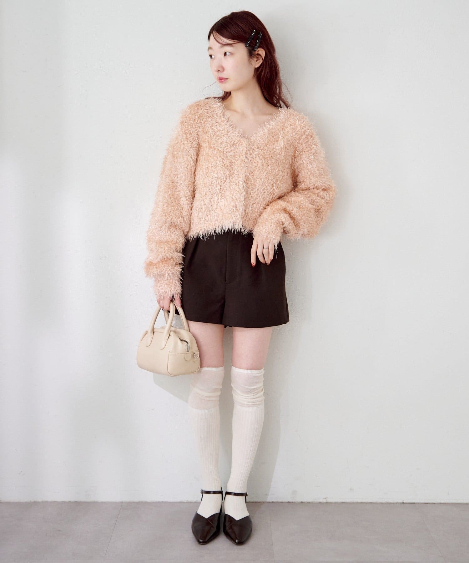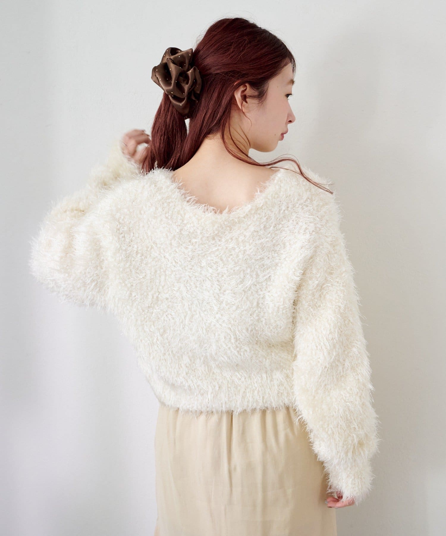 毛足の長いシャギー素材に、ほんのりとした光沢感をプラスしたグロスシャギーニットカーディガン。
