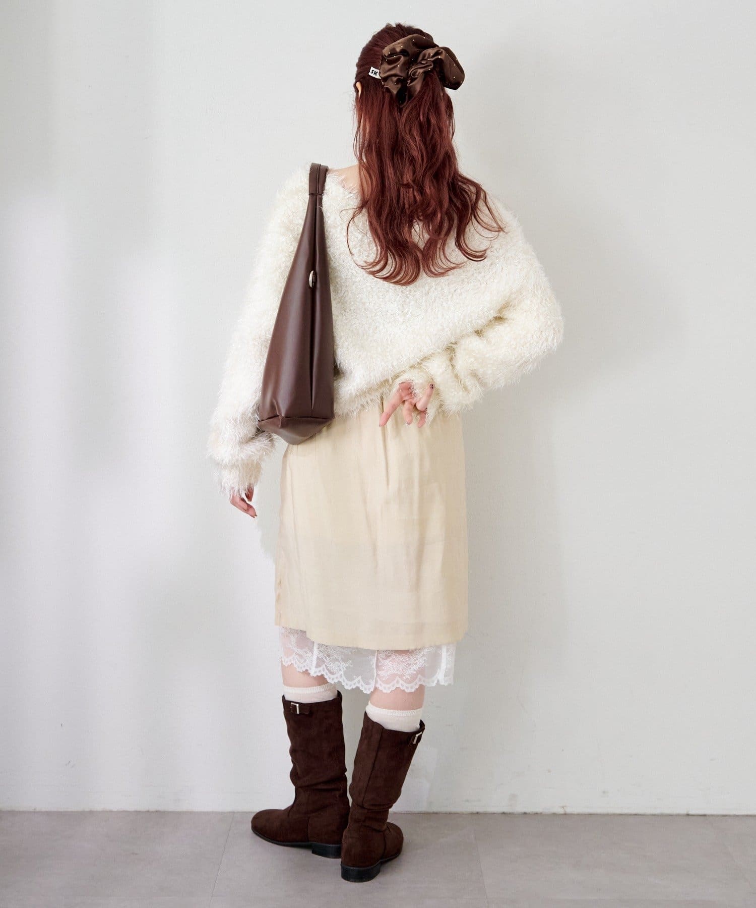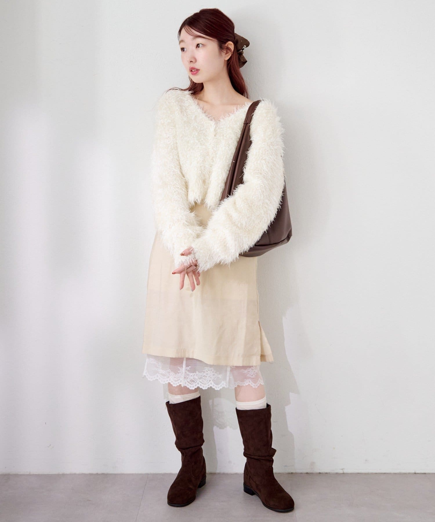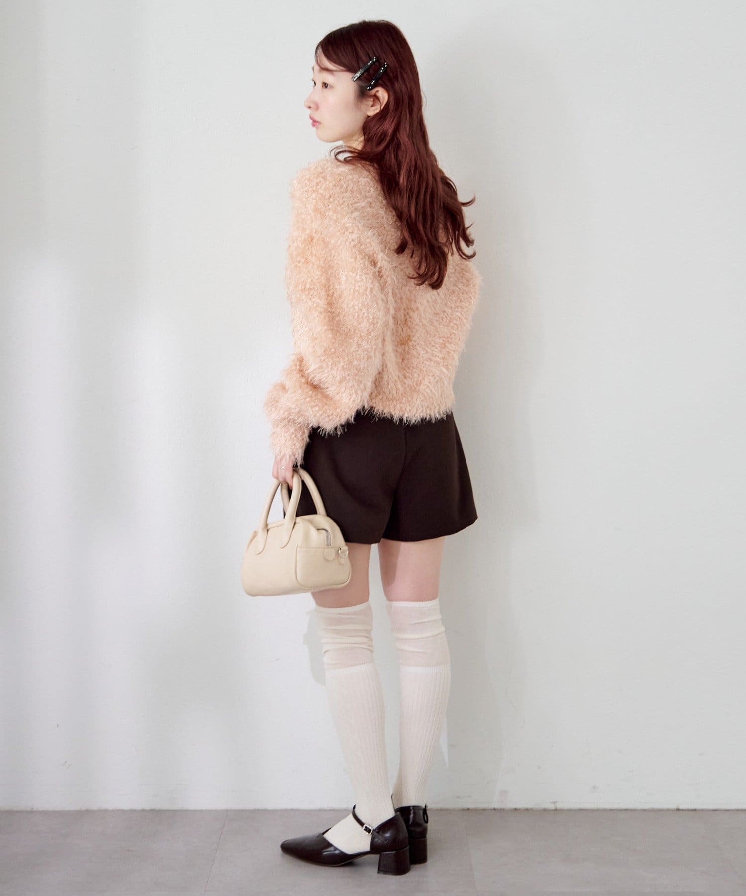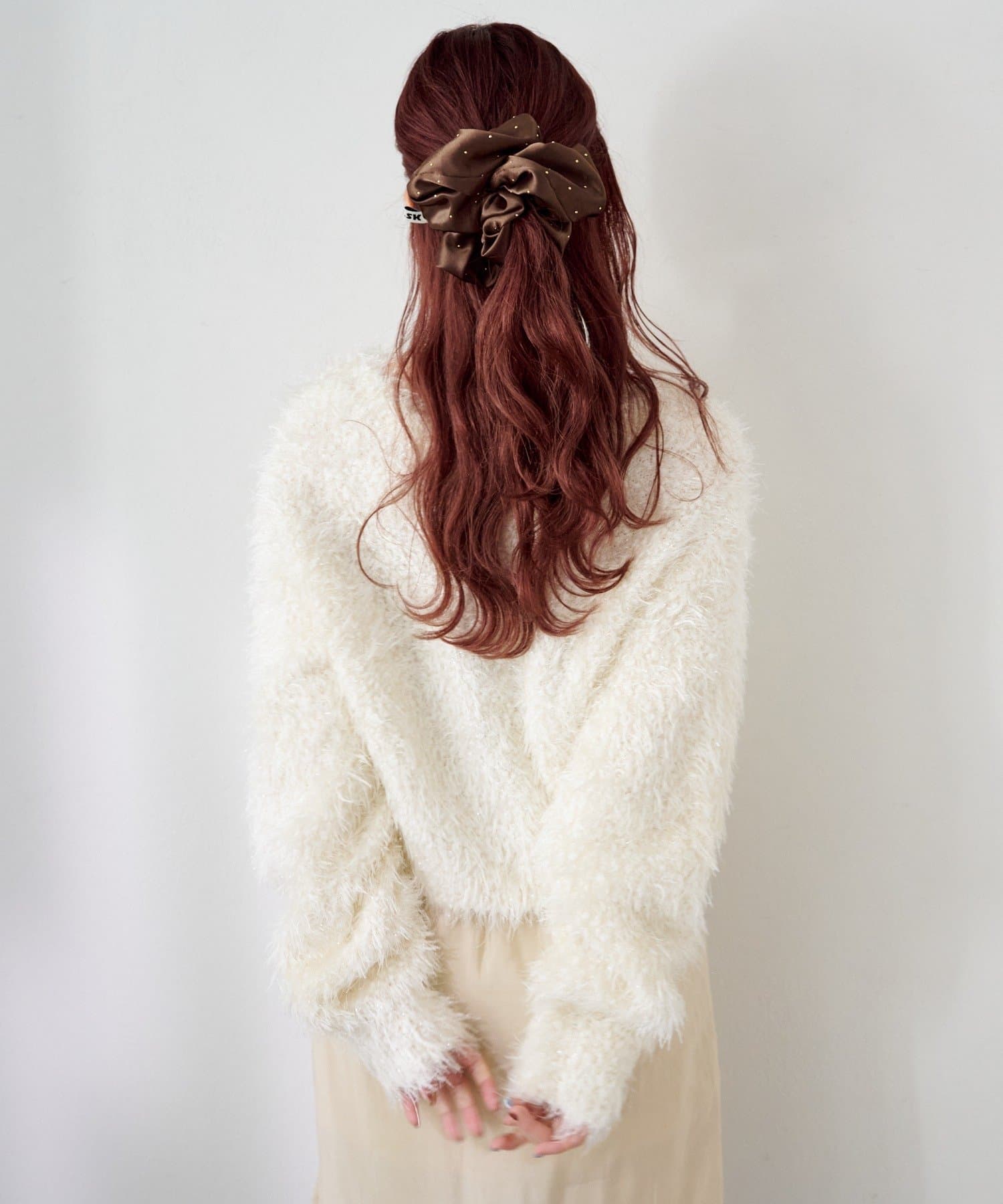 毛足の長いシャギー素材に、ほんのりとした光沢感をプラスしたグロスシャギーニットカーディガン。