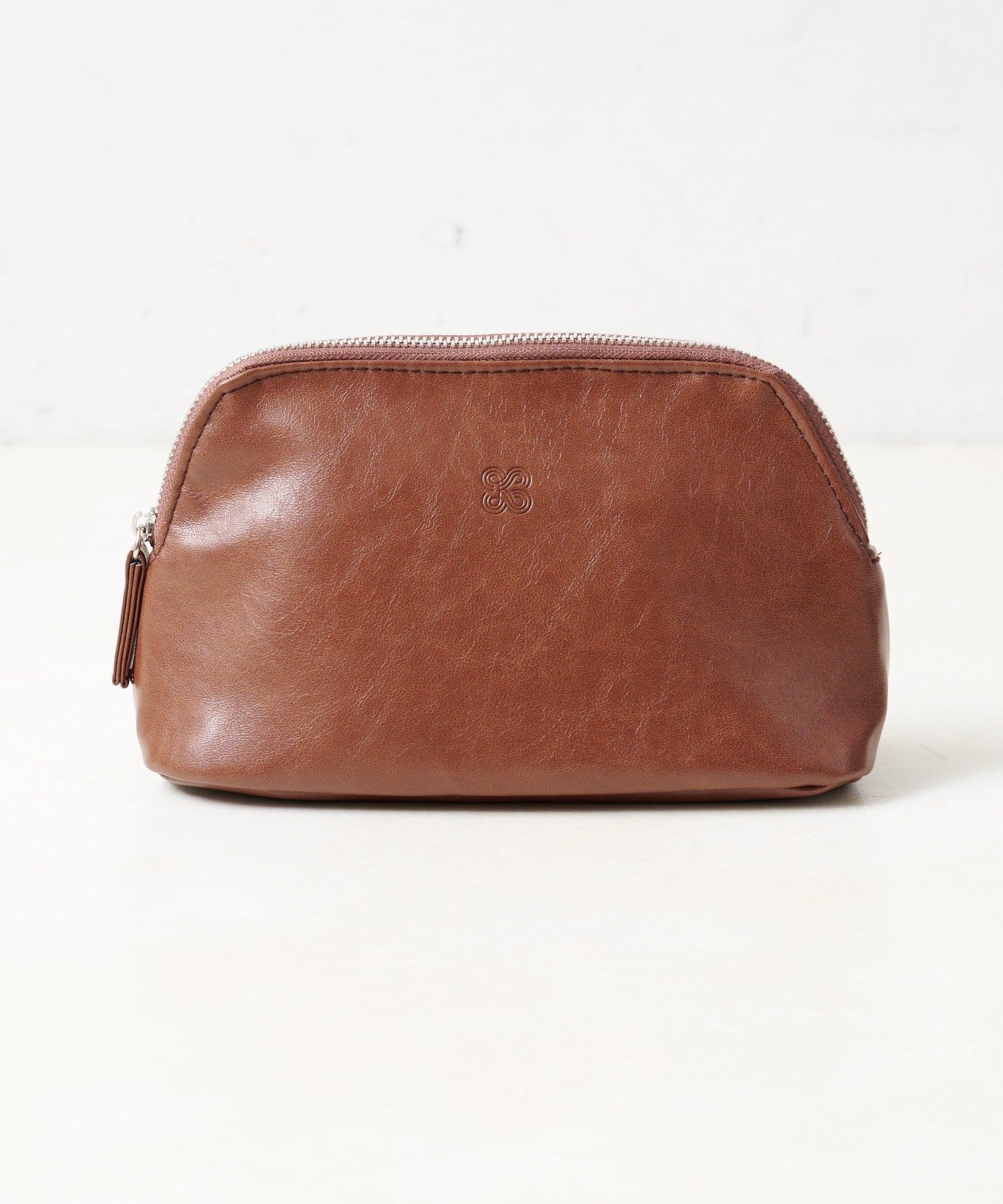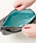 ほどよいツヤ感のあるフェイクレザーを使用した、上品で長く使えるポーチです。