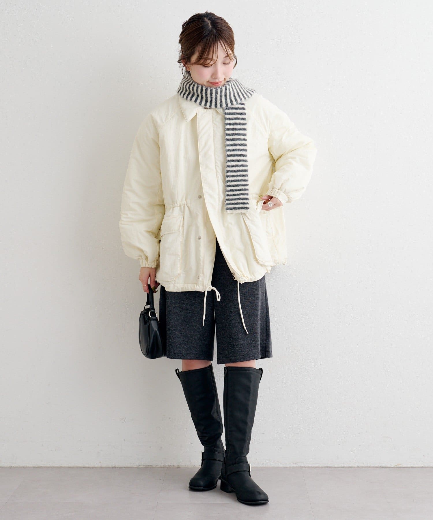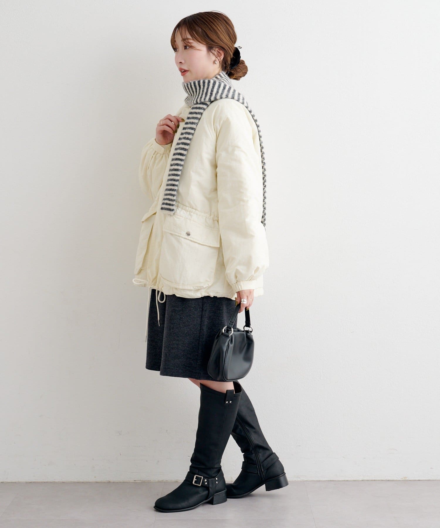 デニムやスウェットパンツを合わせてカジュアルに、スカートやワンピースに羽織って甘辛バランスを楽しむのもおすすめ。