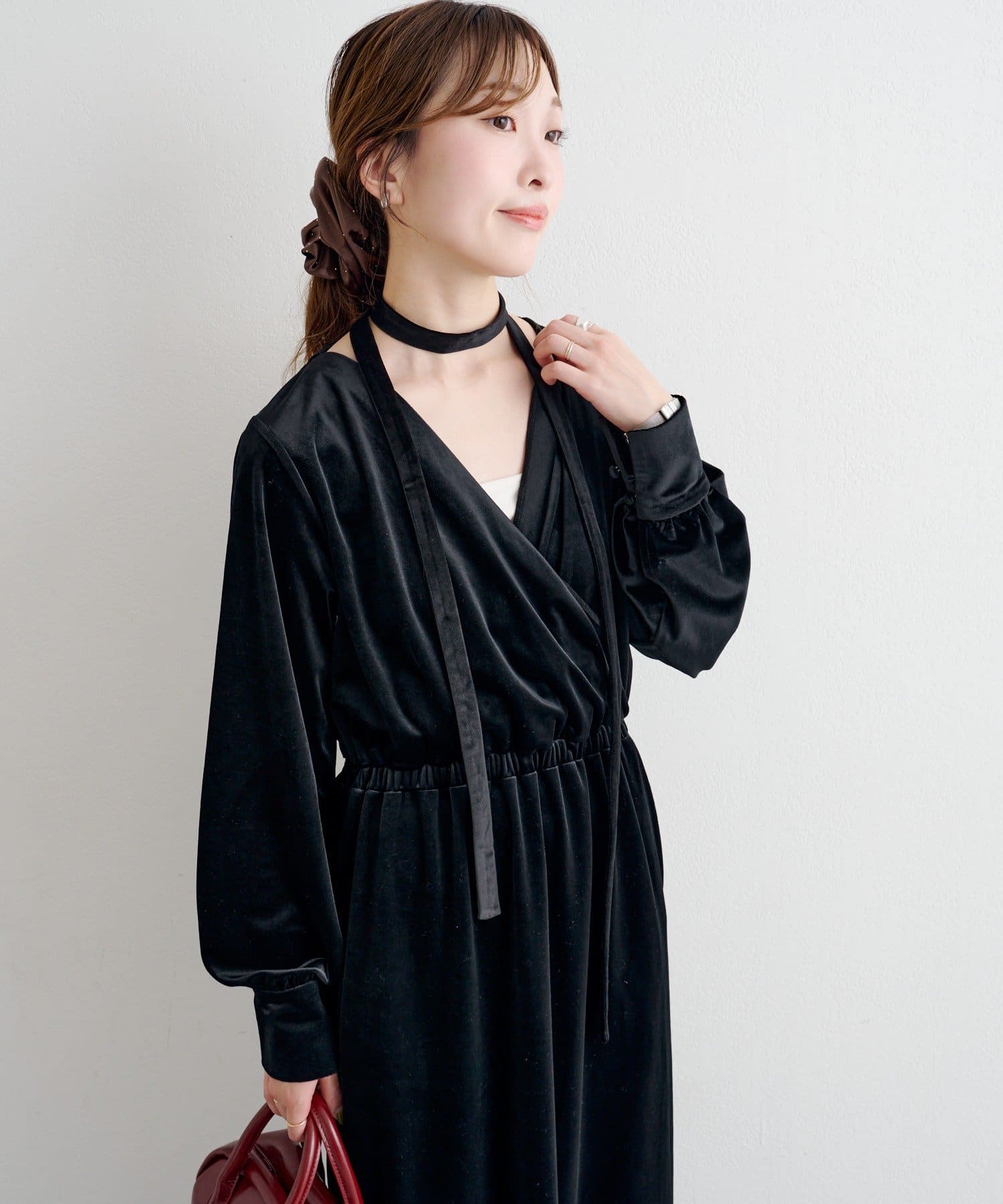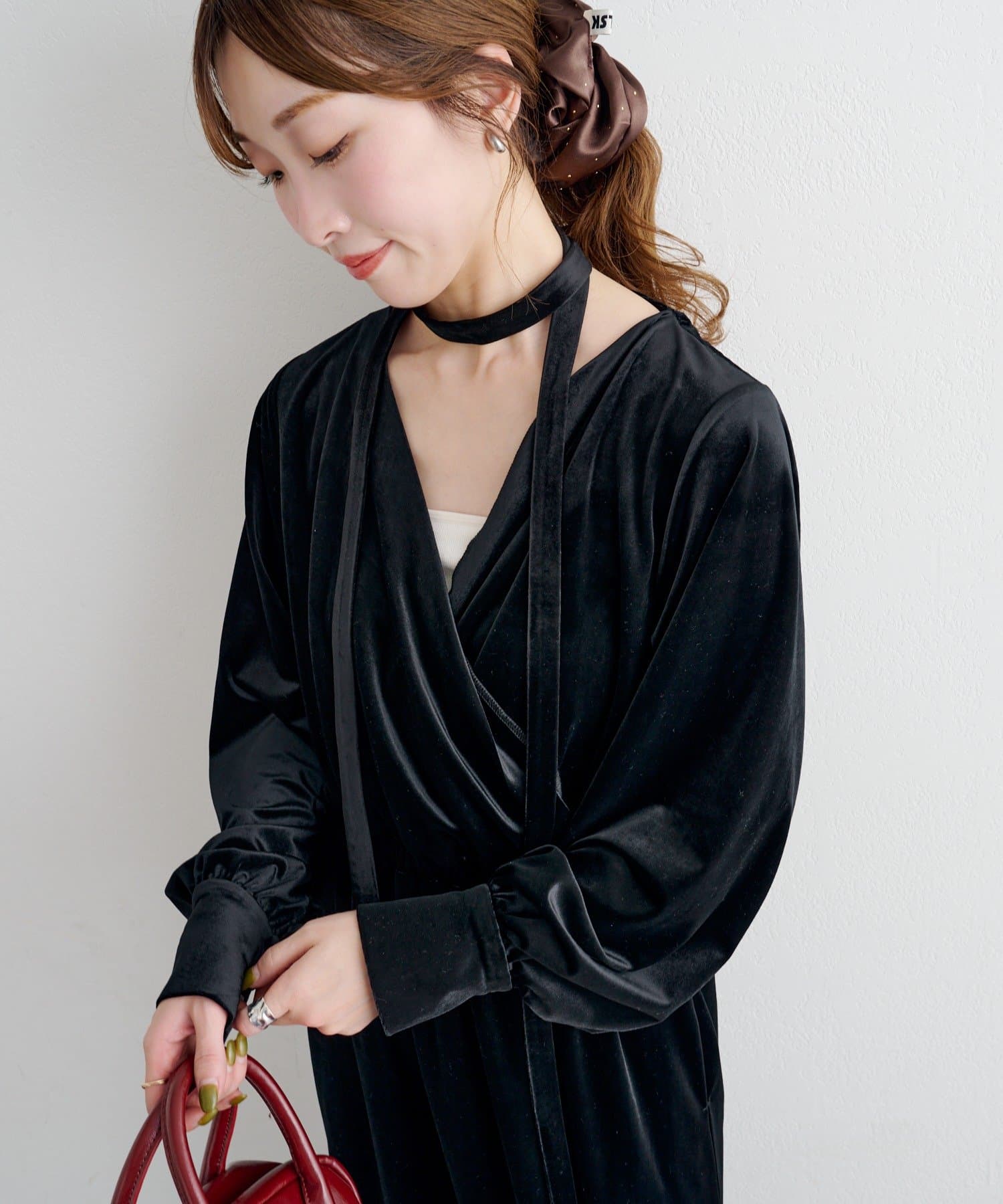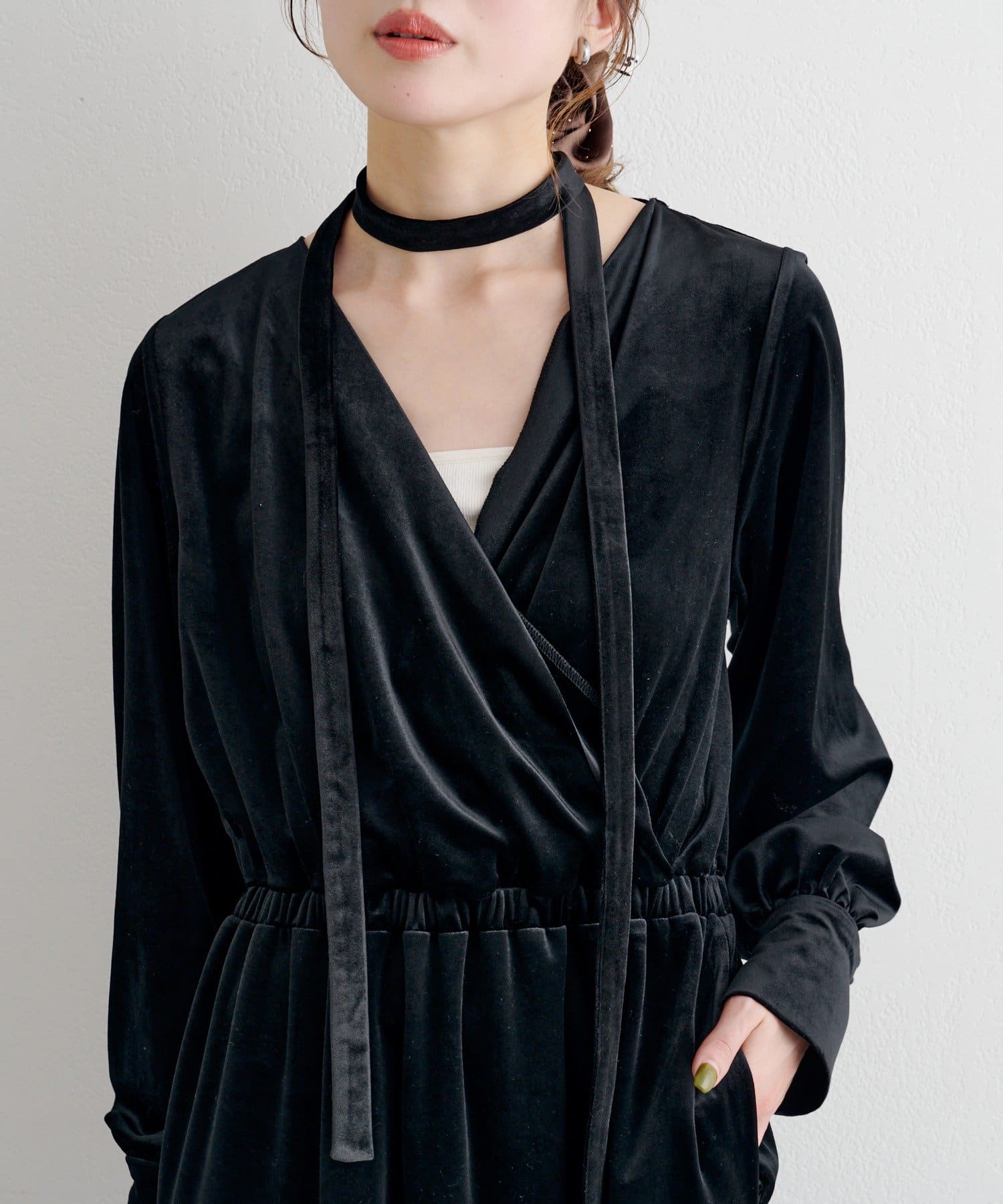 上品な光沢感が魅力のベロア素材を使用した2WAYワンピース